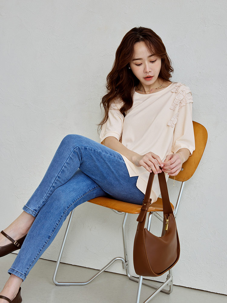 โ—† Elegant one-shoulder design with ruffle sleeves