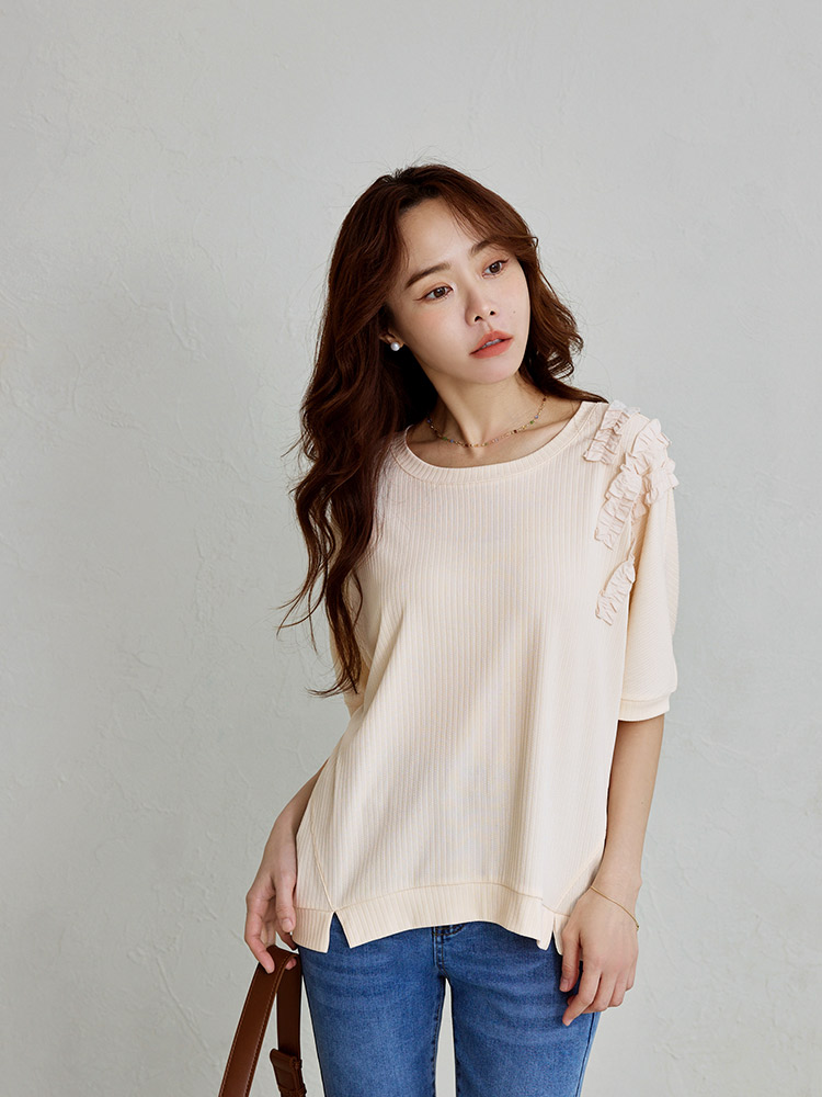 Textured Ruffle Sleeve Top