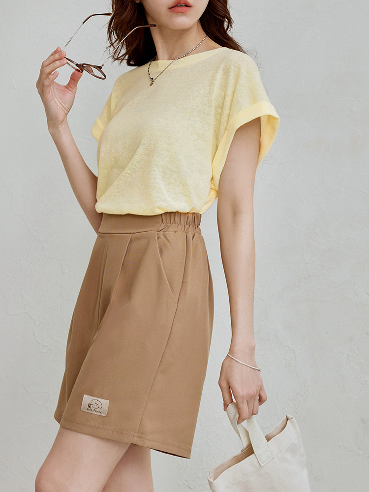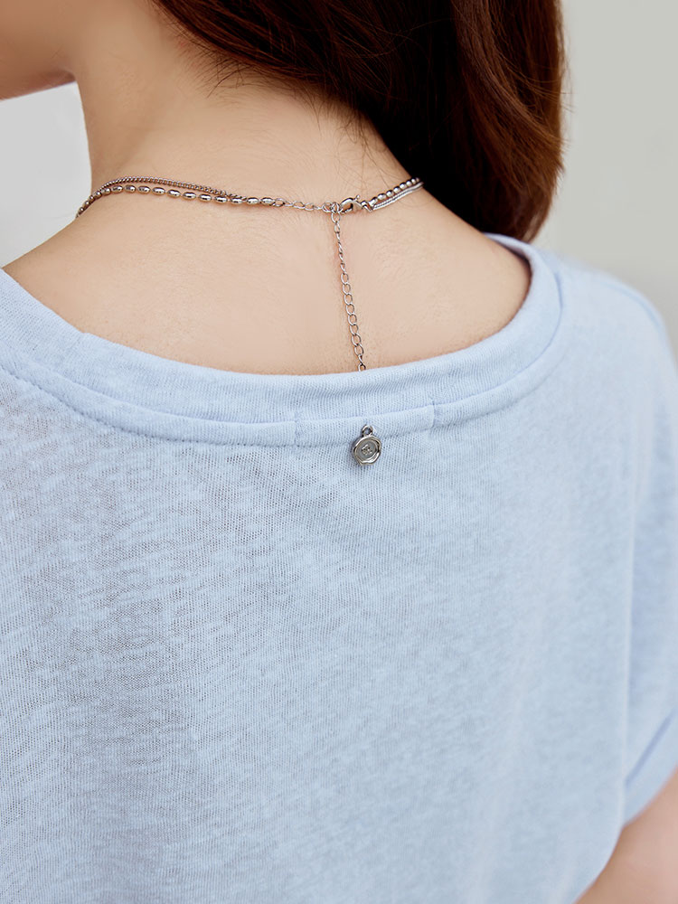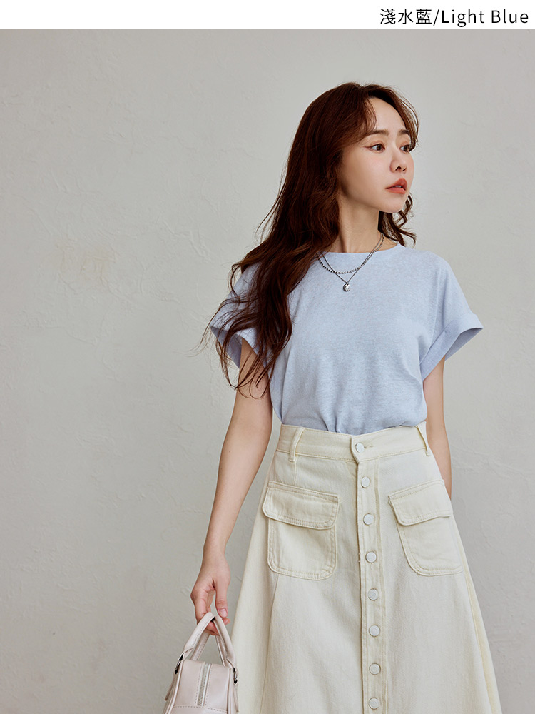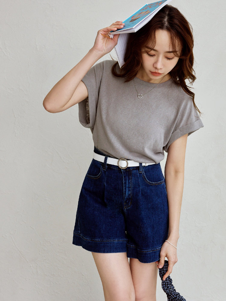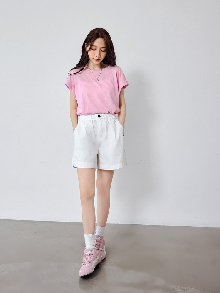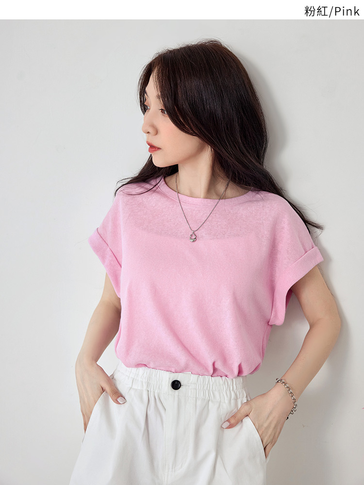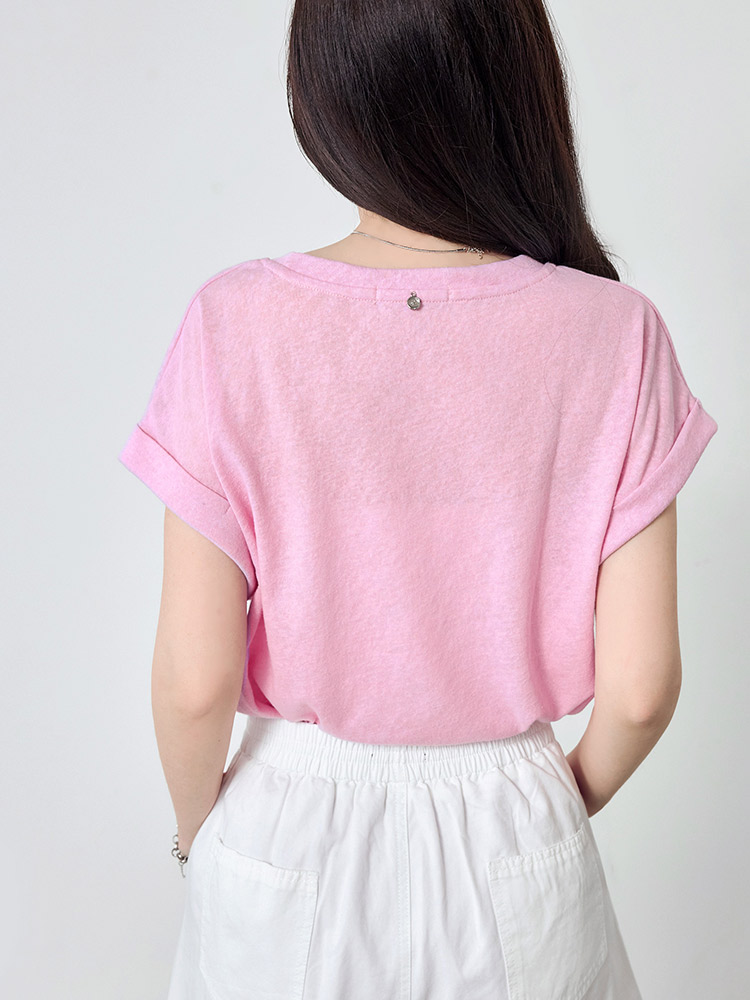Turn-Up Sleeve Cotton-Blend Top