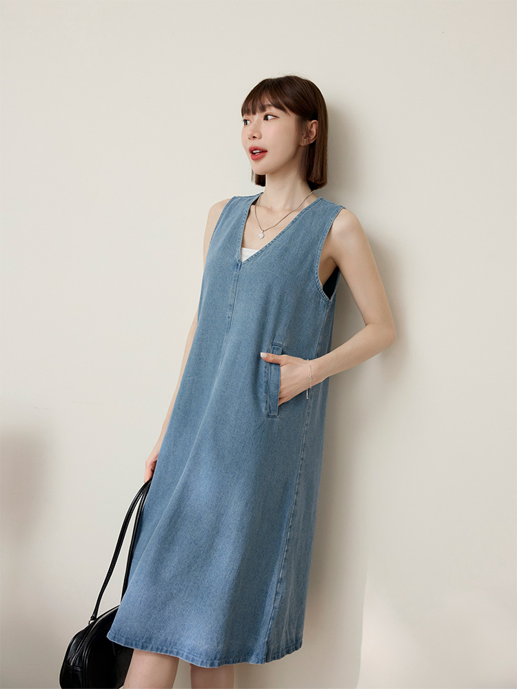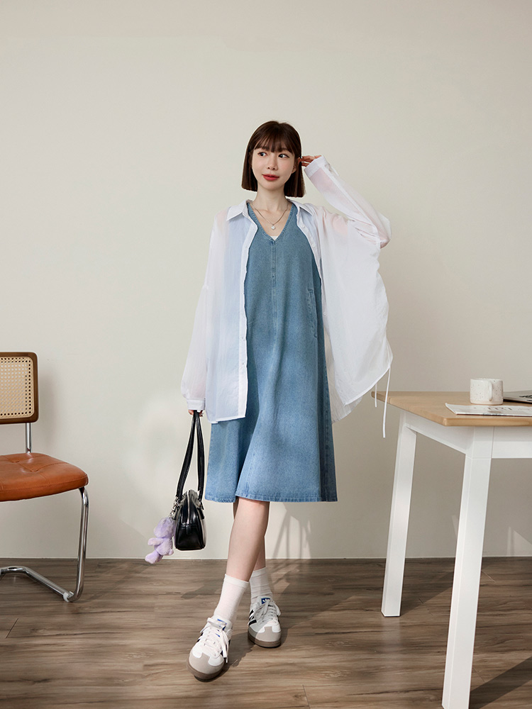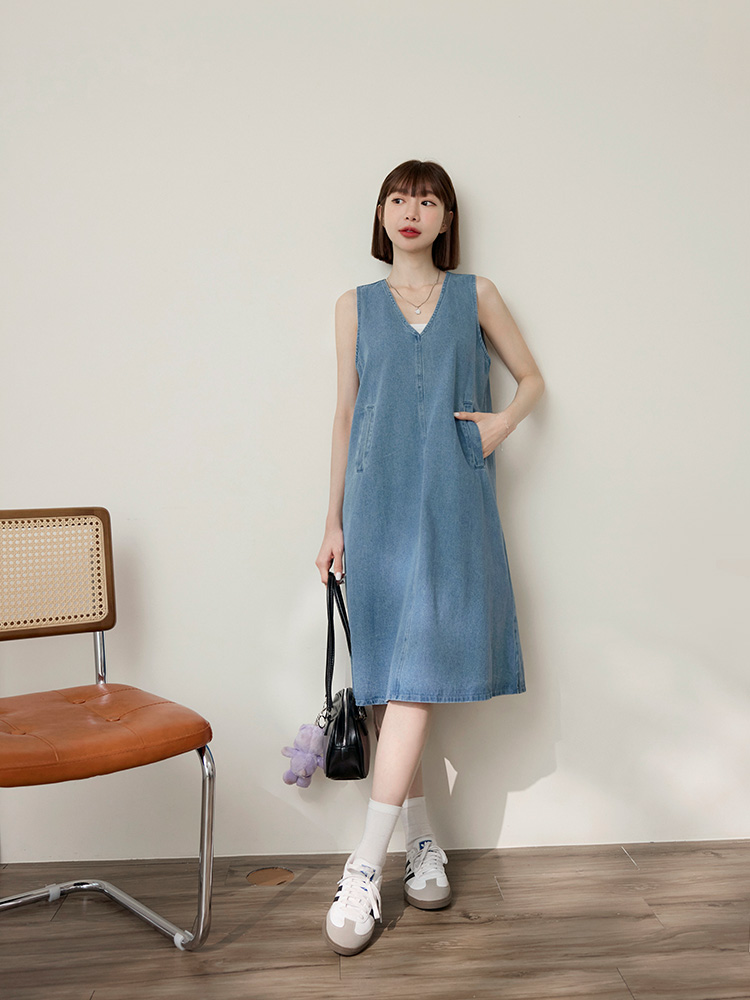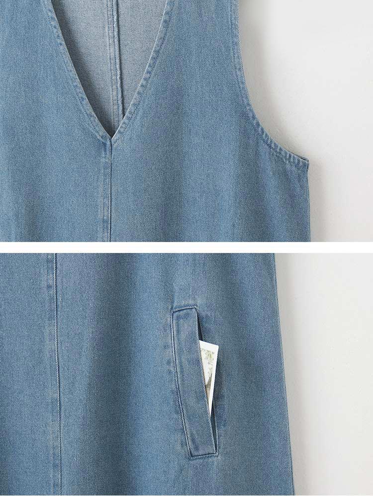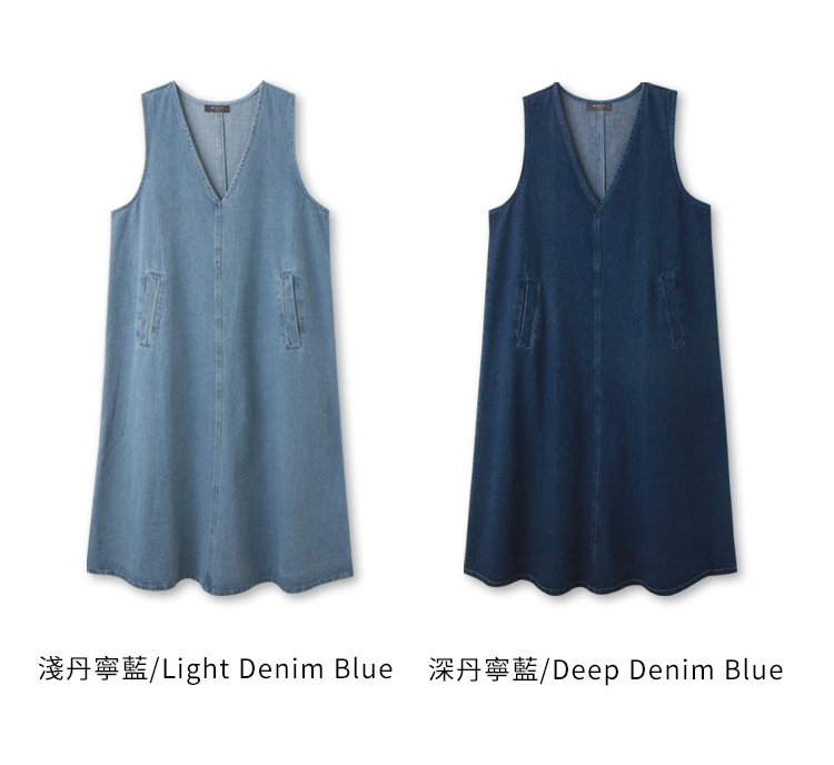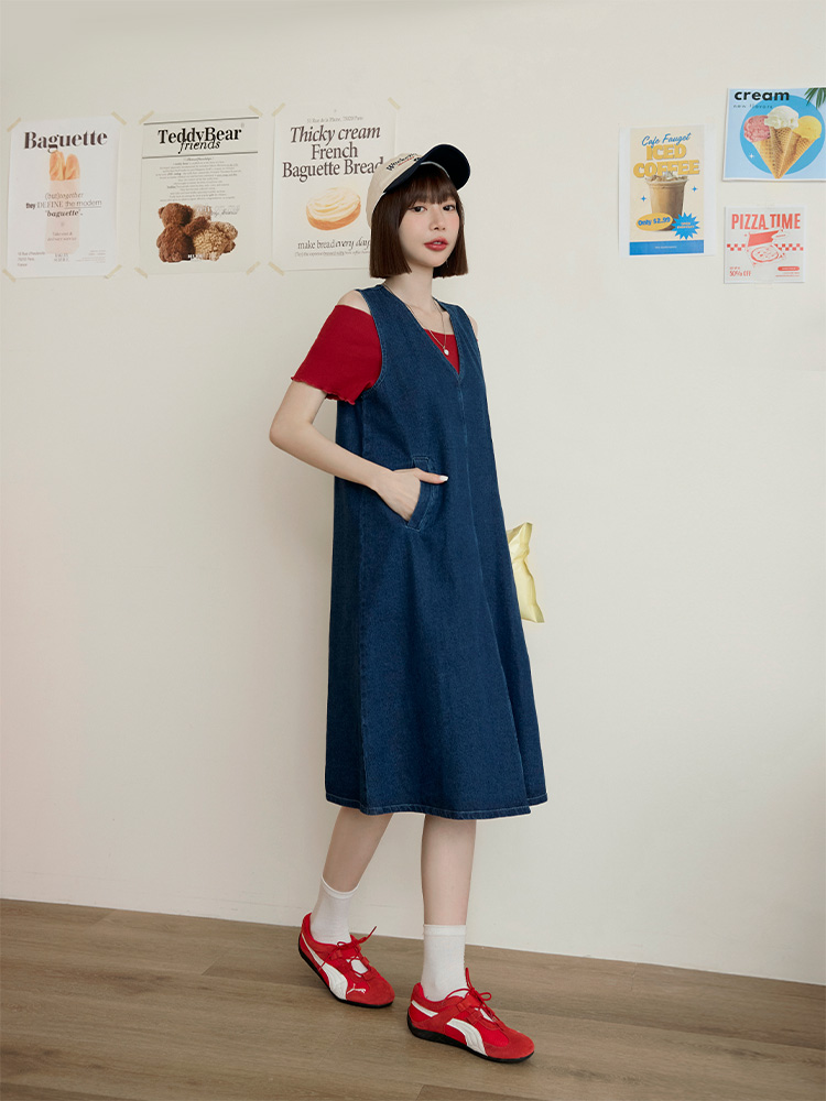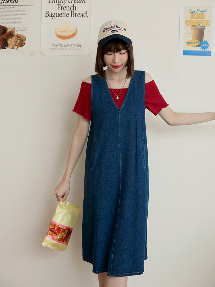 Cotton Denim V-Neck Mini Dress (2XL~3XL)