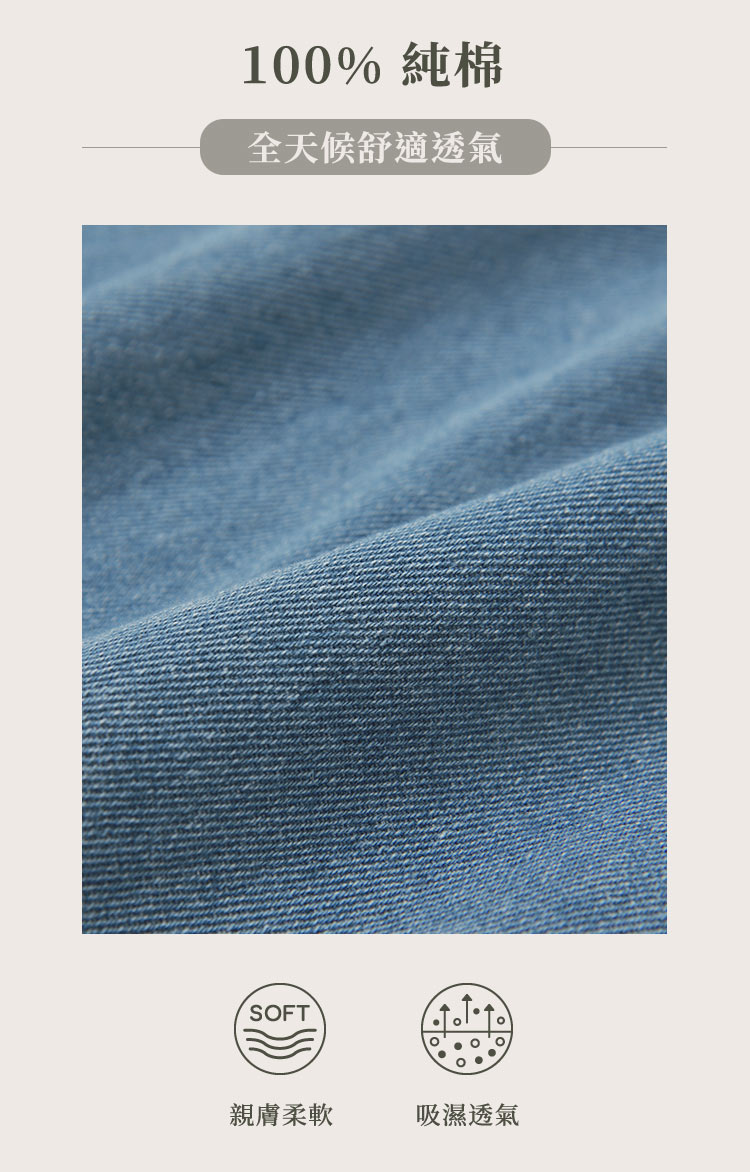 โ—† Crafted from breathable, skin-friendly cotton denim.