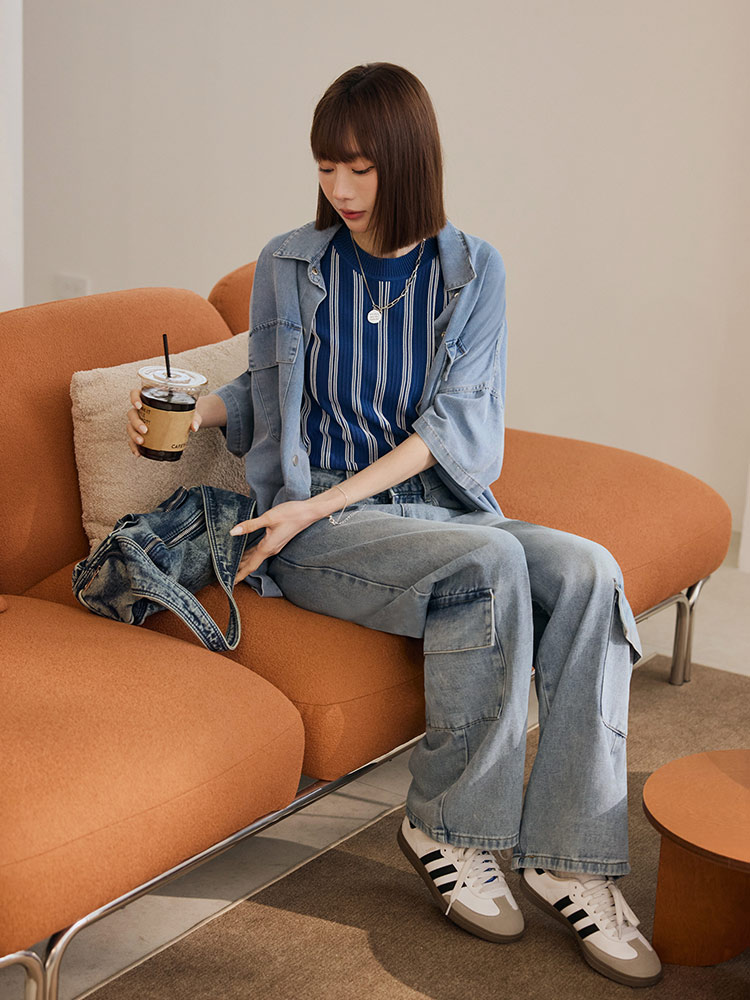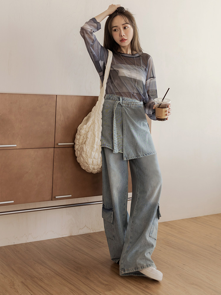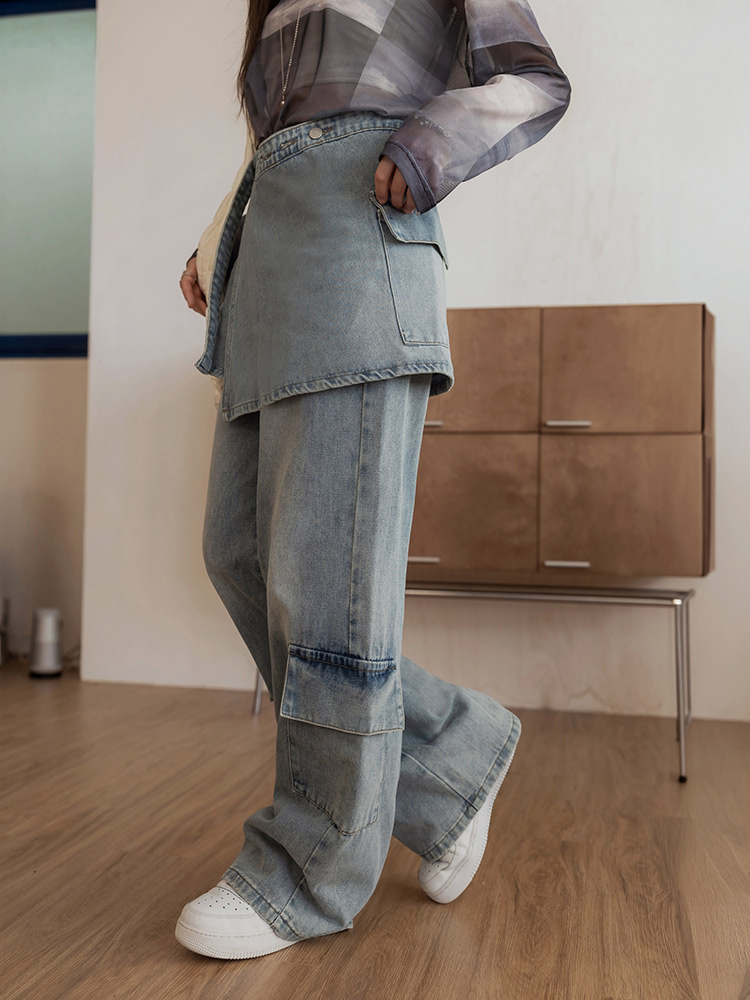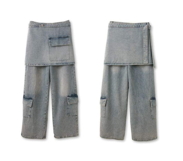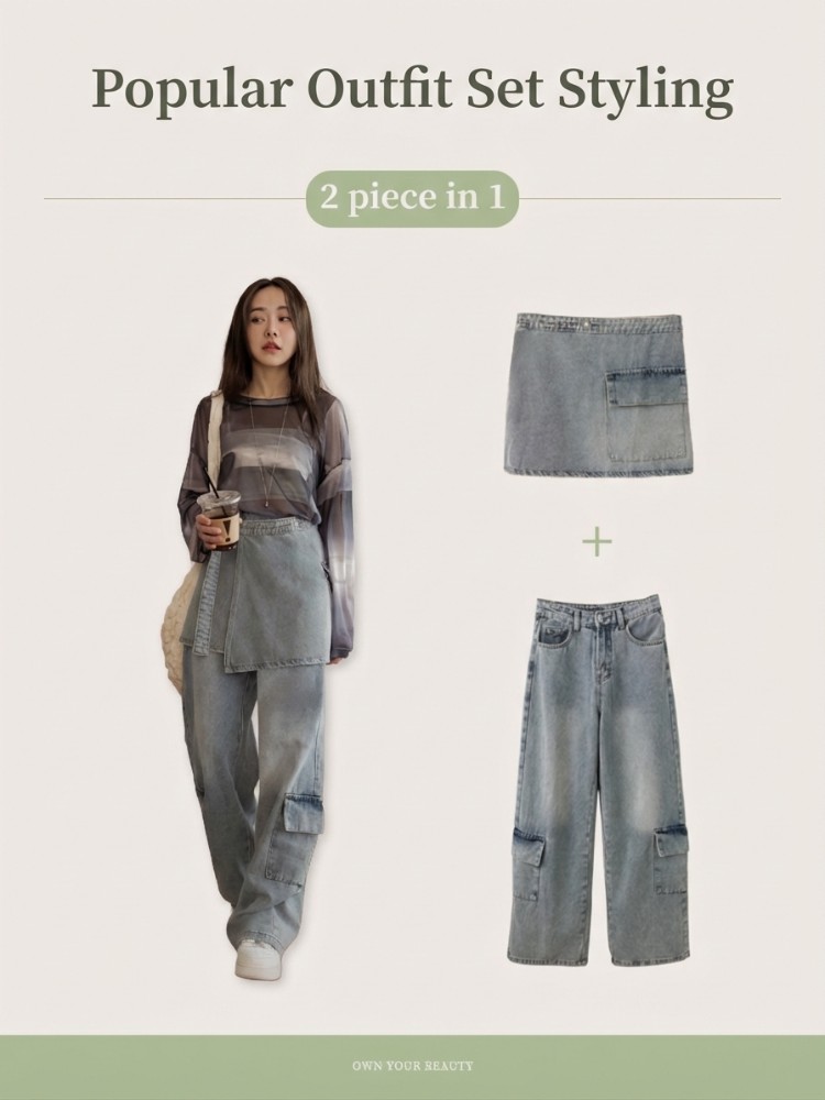 Product Feature: โ Crafted from comfortable pure cotton denim โ Features a unique two-piece design for versatile styling โ Includes fully functional pockets โ Adjustable skirt tie