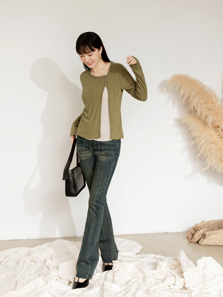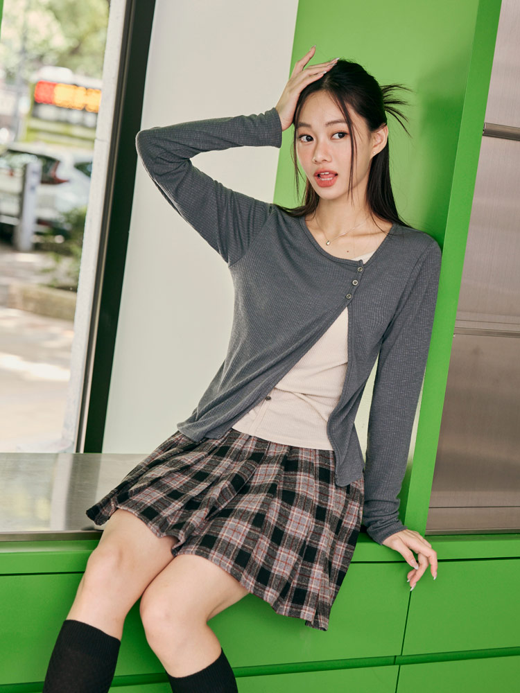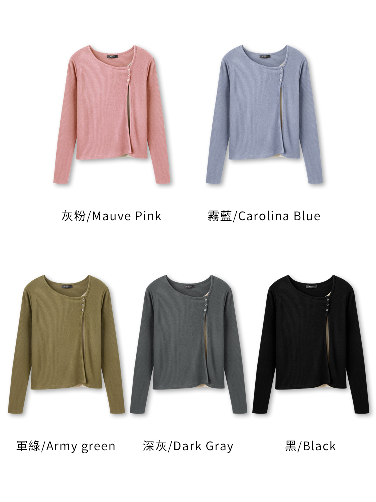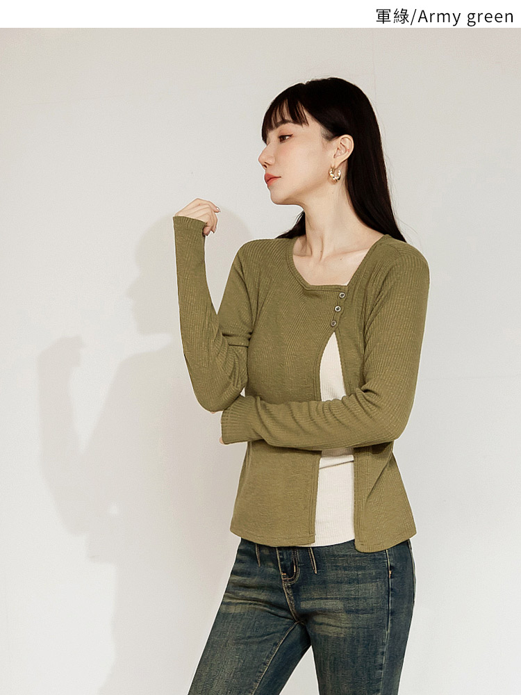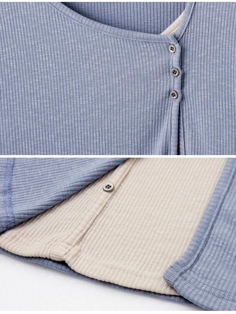 Product Feature: โ Crafted from soft, ribbed knit fabric for ultimate comfort. โ Features a stylish split-hem design with button detailing. โ Offers a flattering silhouette with its layered look. โ Designed with functional buttons for versatile styling.