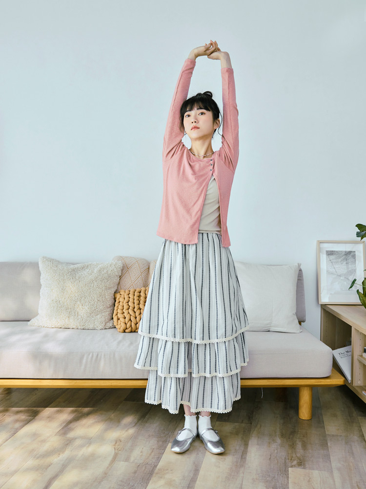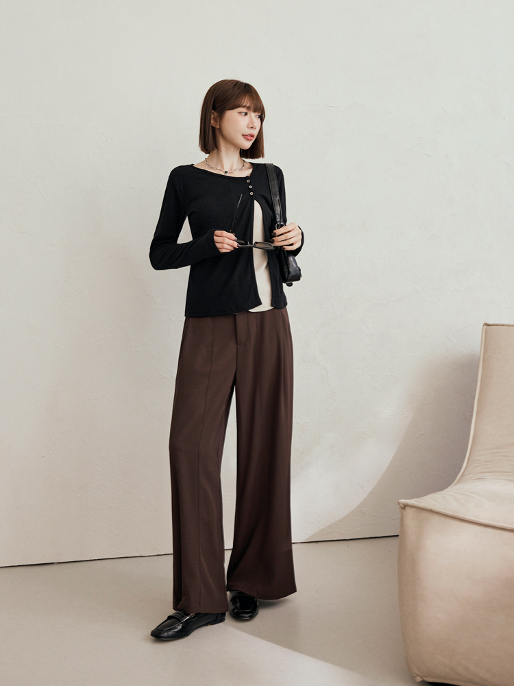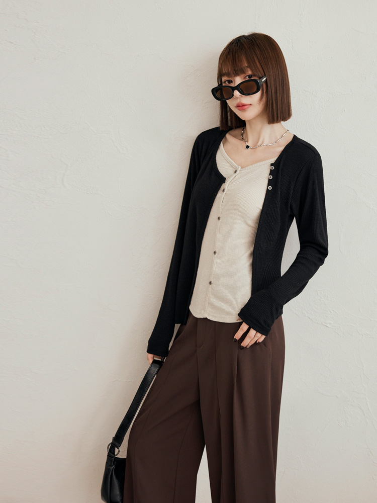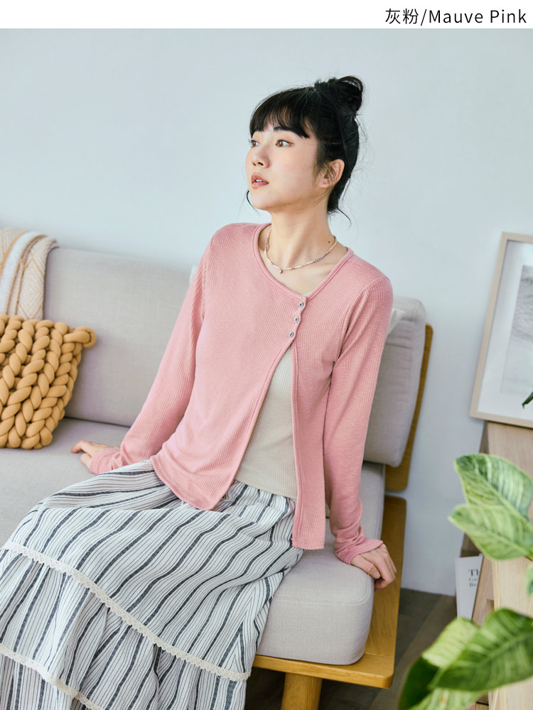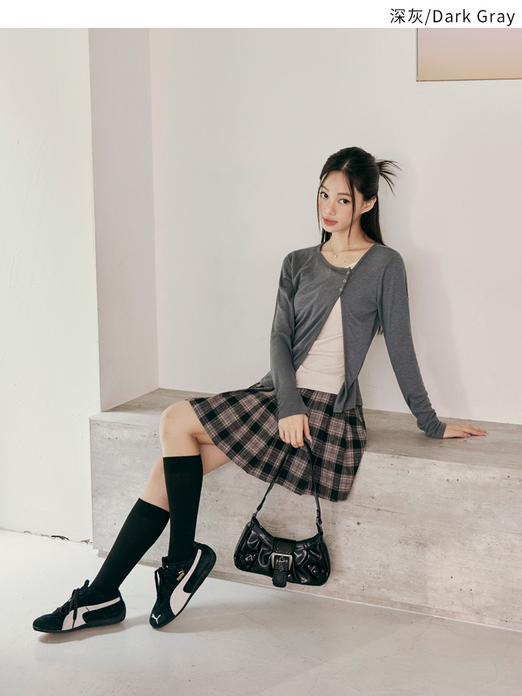 Product Feature: โ Crafted from soft, ribbed knit fabric for ultimate comfort. โ Features a stylish split-hem design with button detailing. โ Offers a flattering silhouette with its layered look. โ Designed with functional buttons for versatile styling.