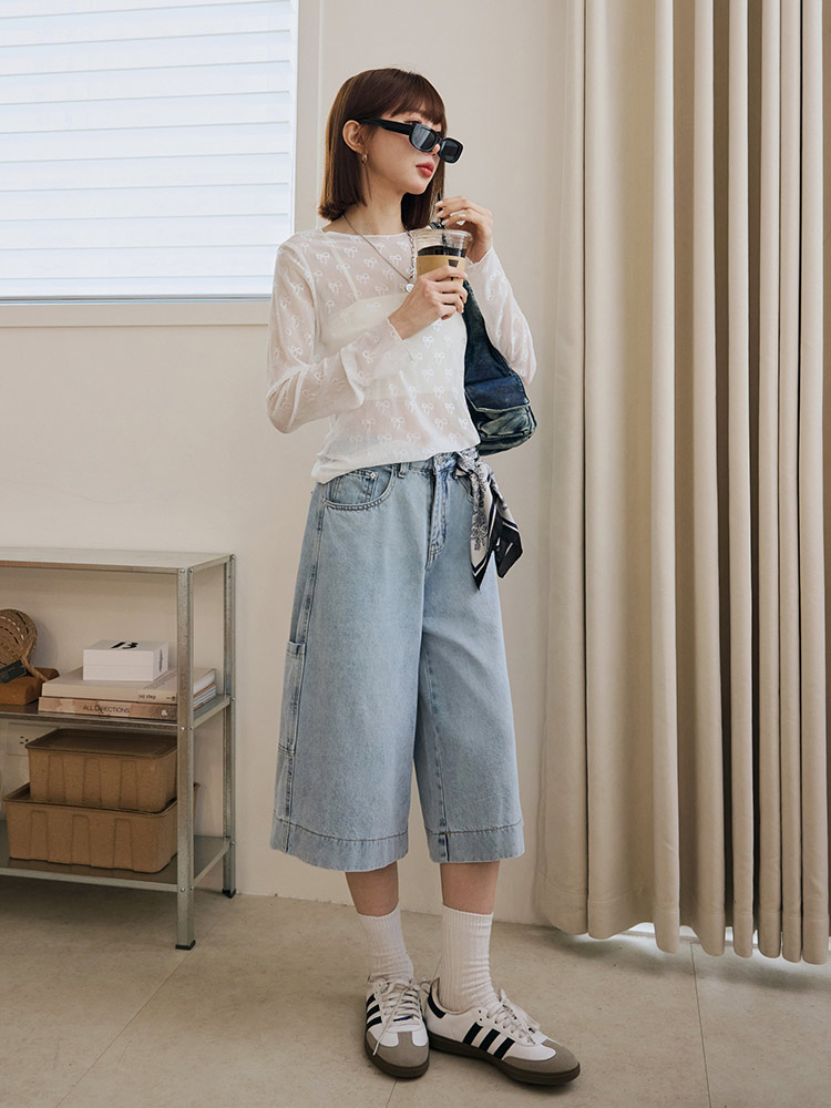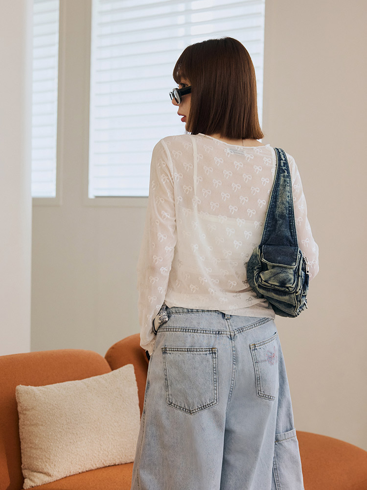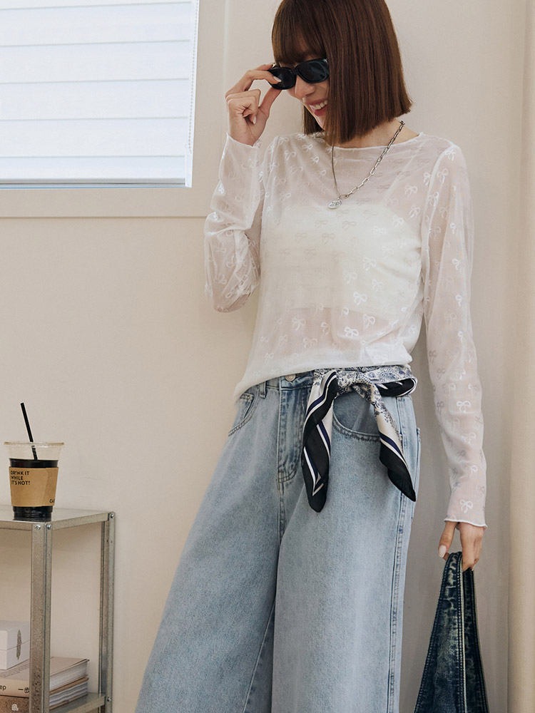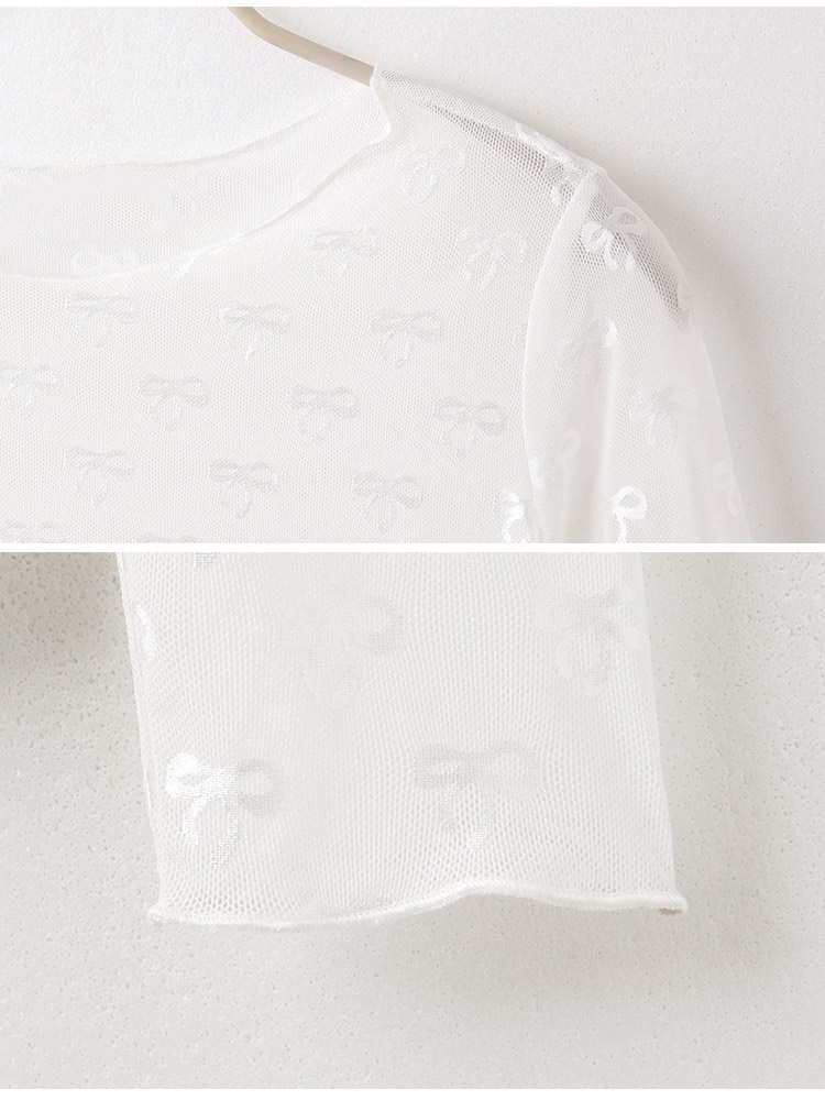 Product Feature: โ Crafted from breathable, lightweight mesh fabric. โ Delicate bow detailing adds a touch of elegance. โ Features a flattering, fitted silhouette. โ Designed with a sheer finish; layering recommended.