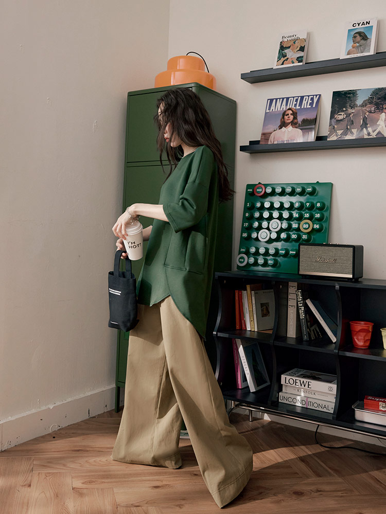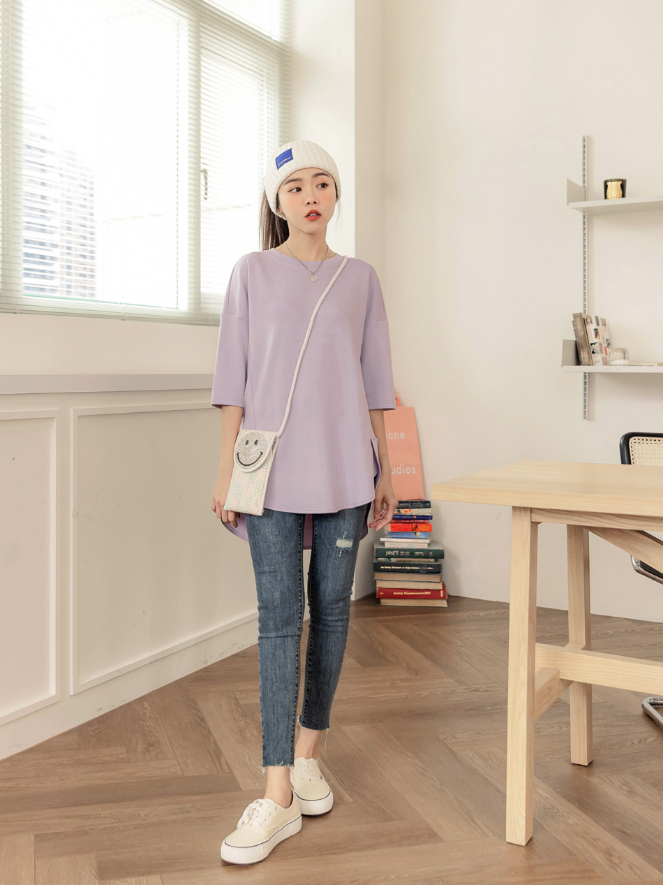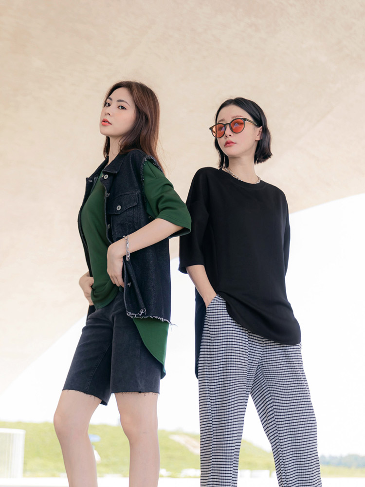 Product Feature: โ Crafted from lightweight, stretchy space cotton blend. โ Features a relaxed, drop-shoulder design. โ Designed with a flattering split-hem. โ Comfortable, loose fit suitable for all figures.