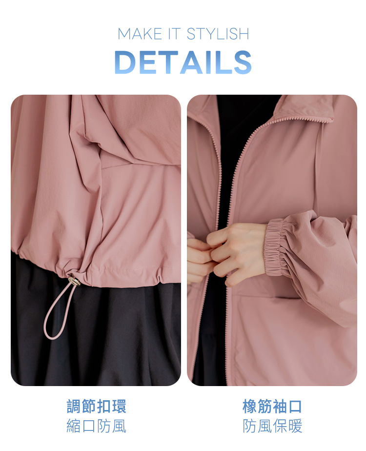 โ—† Adjustable drawstring hood and hem for a custom fit