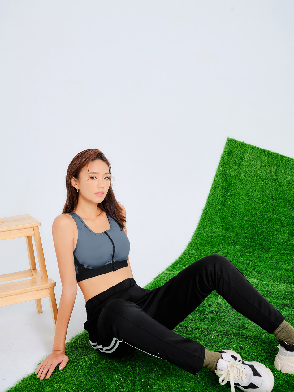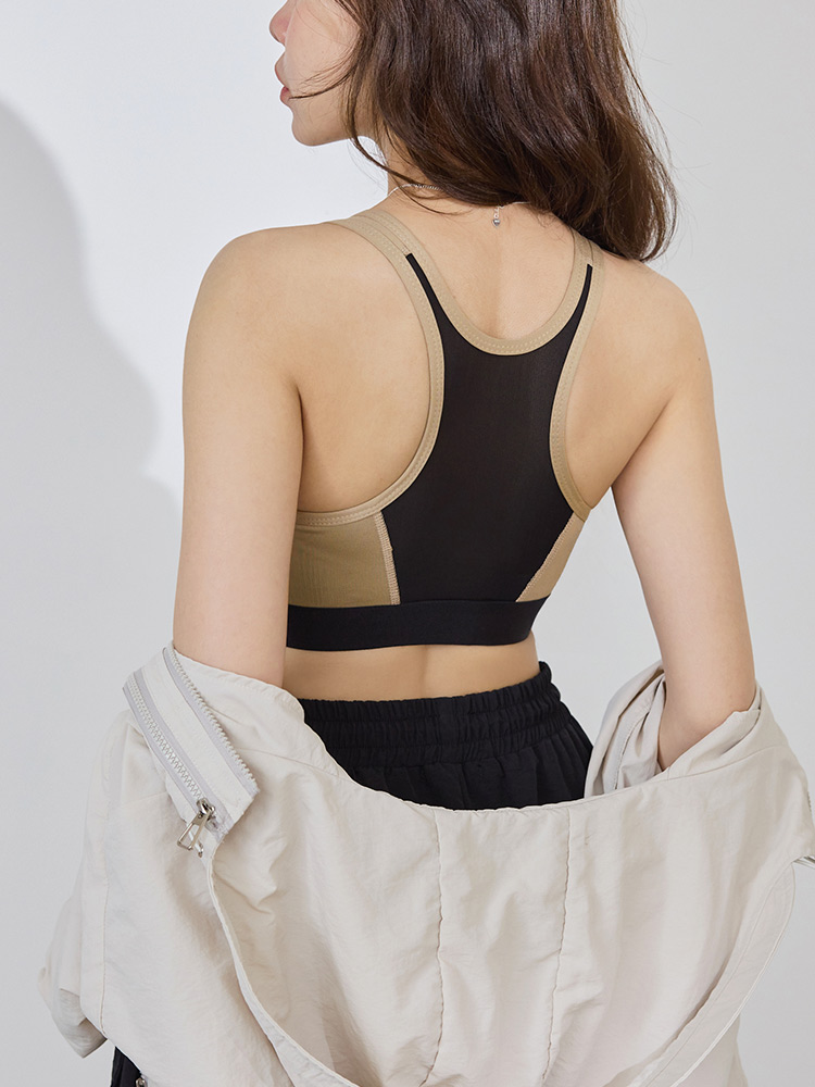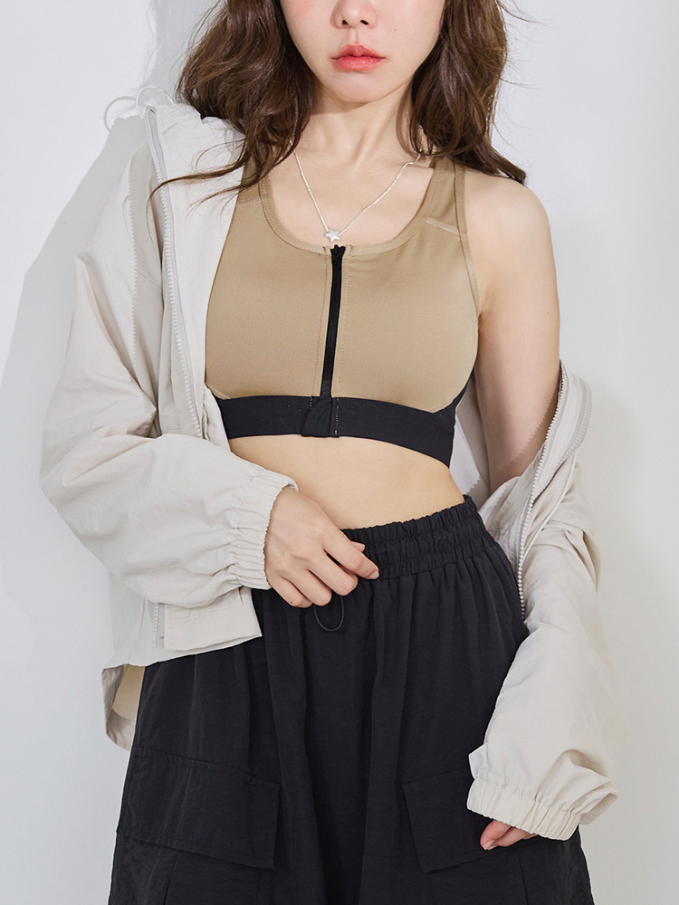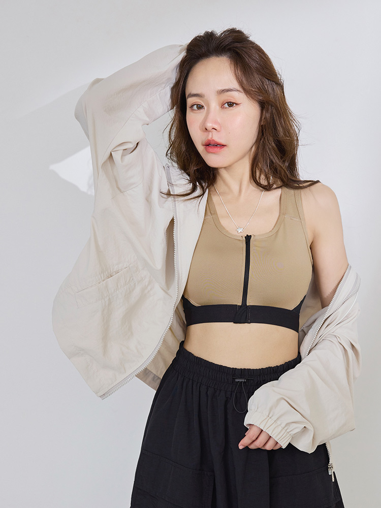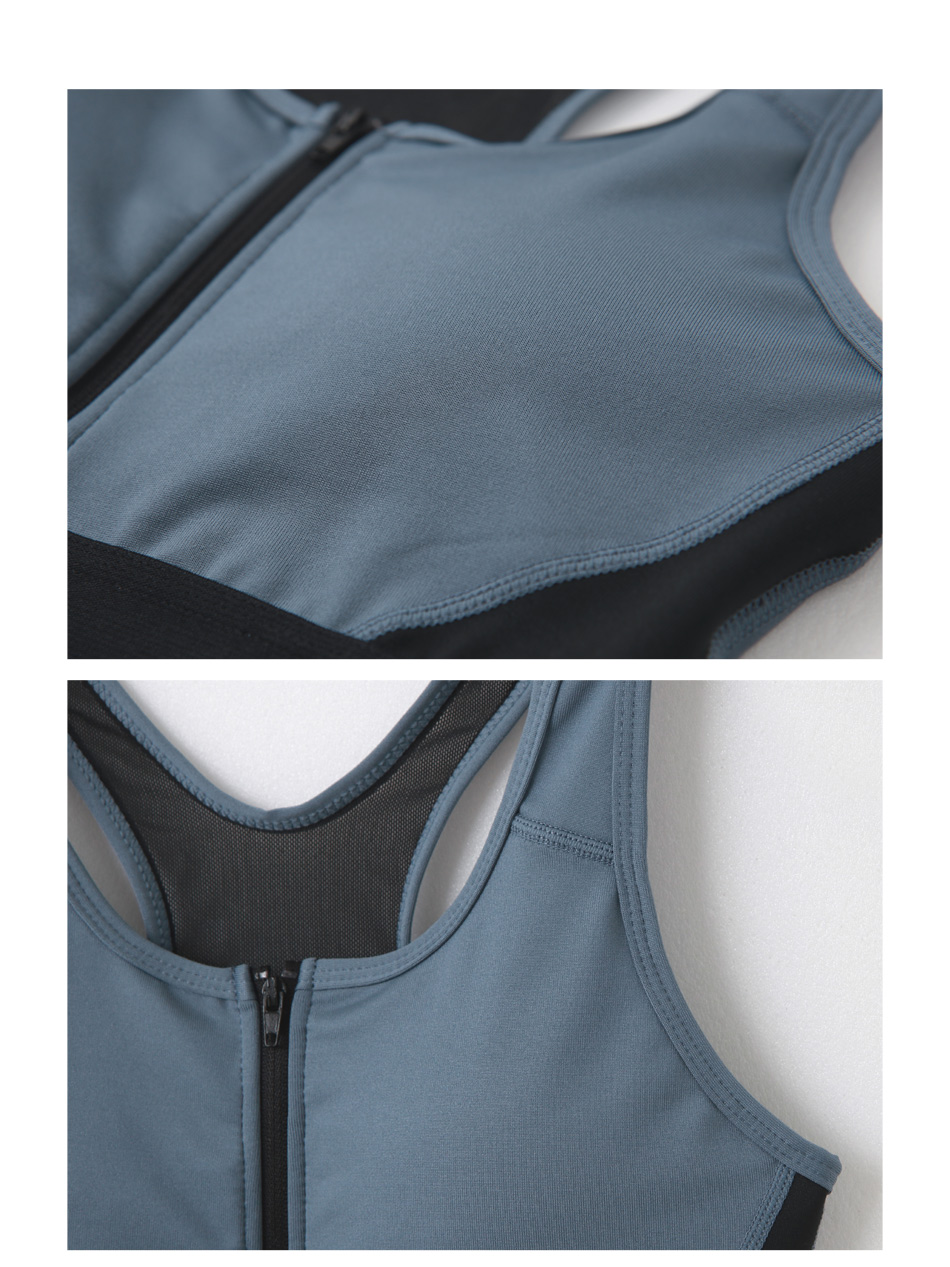 Colour-Block Zip-Up Sports Bra