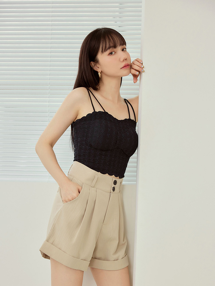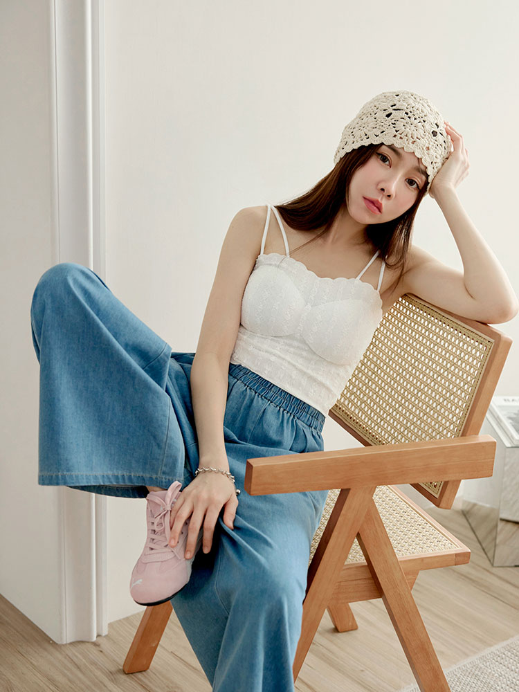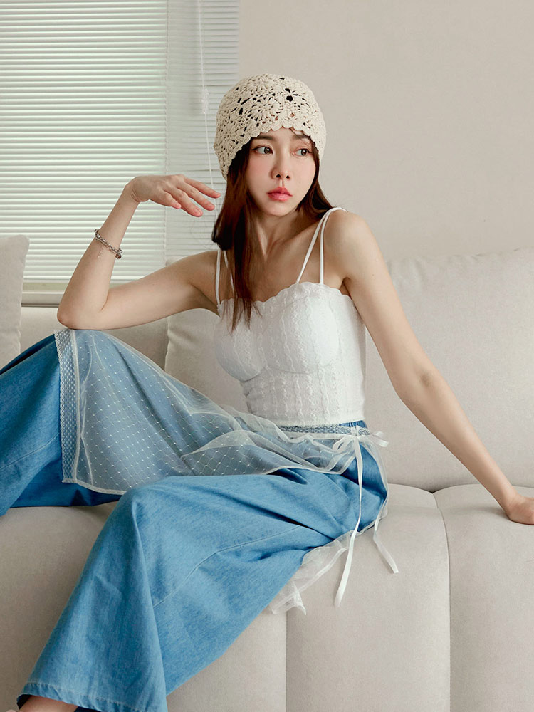 Textured Lace Trimmed Adjustable Strap BRATOP (F)