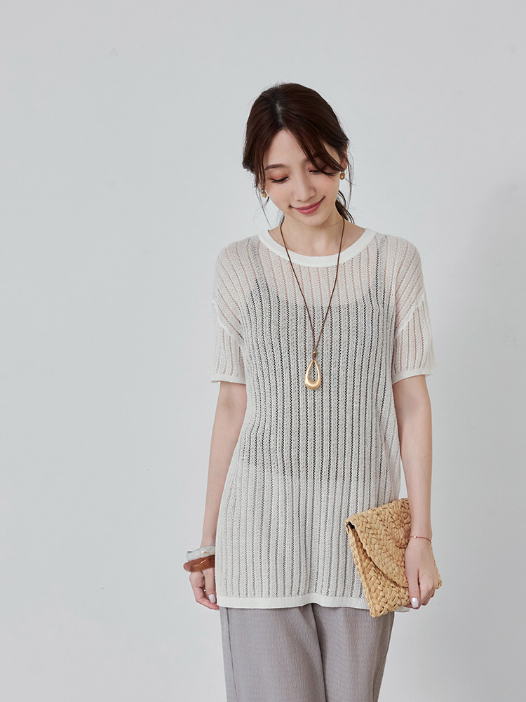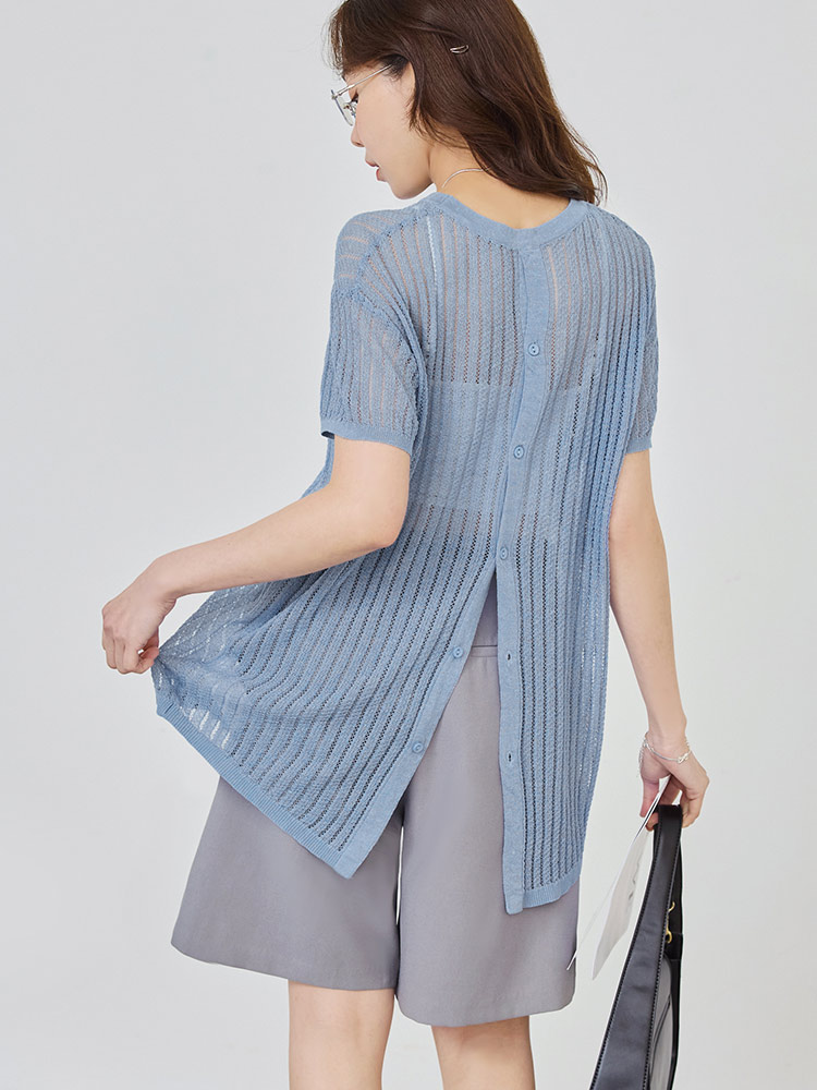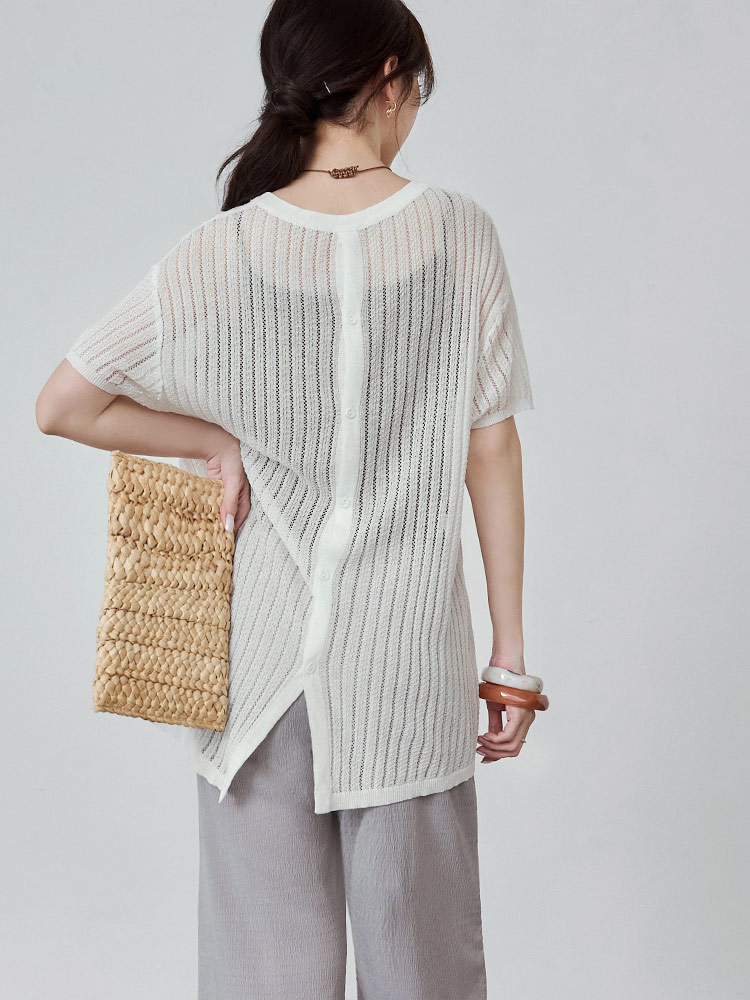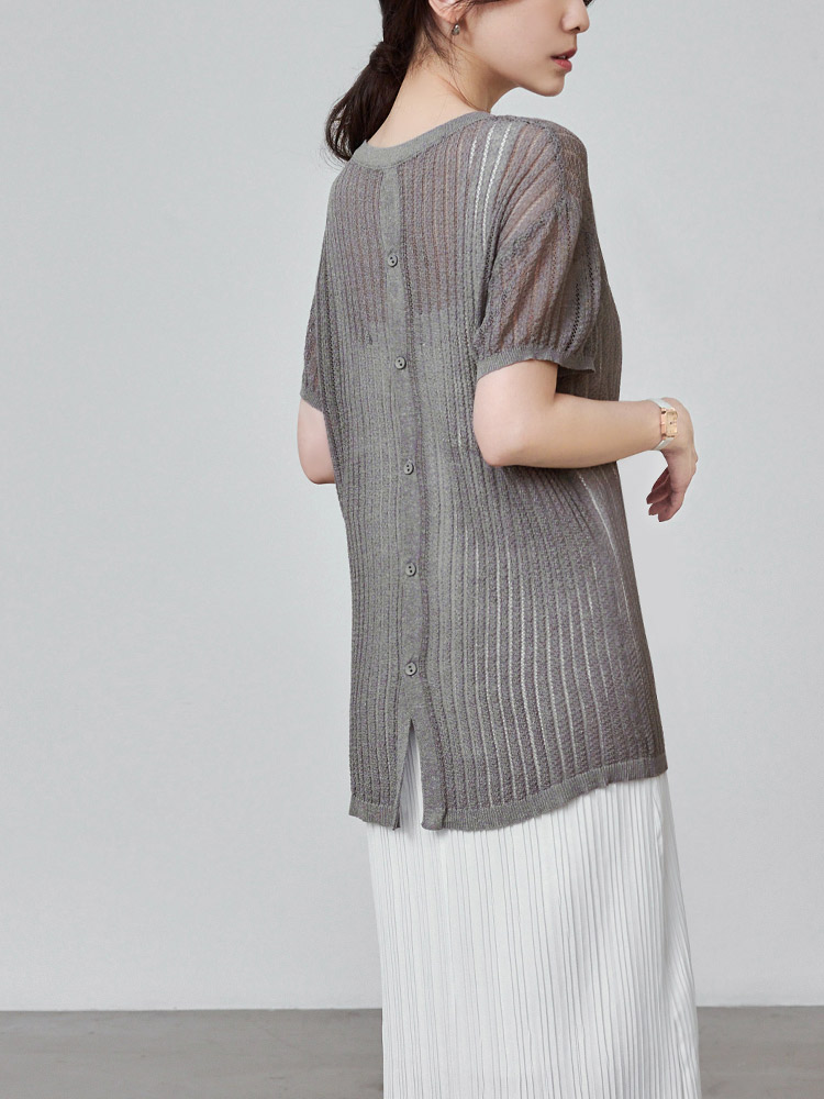Sheer Knit Button-Back Cardigan (2XL~3XL)