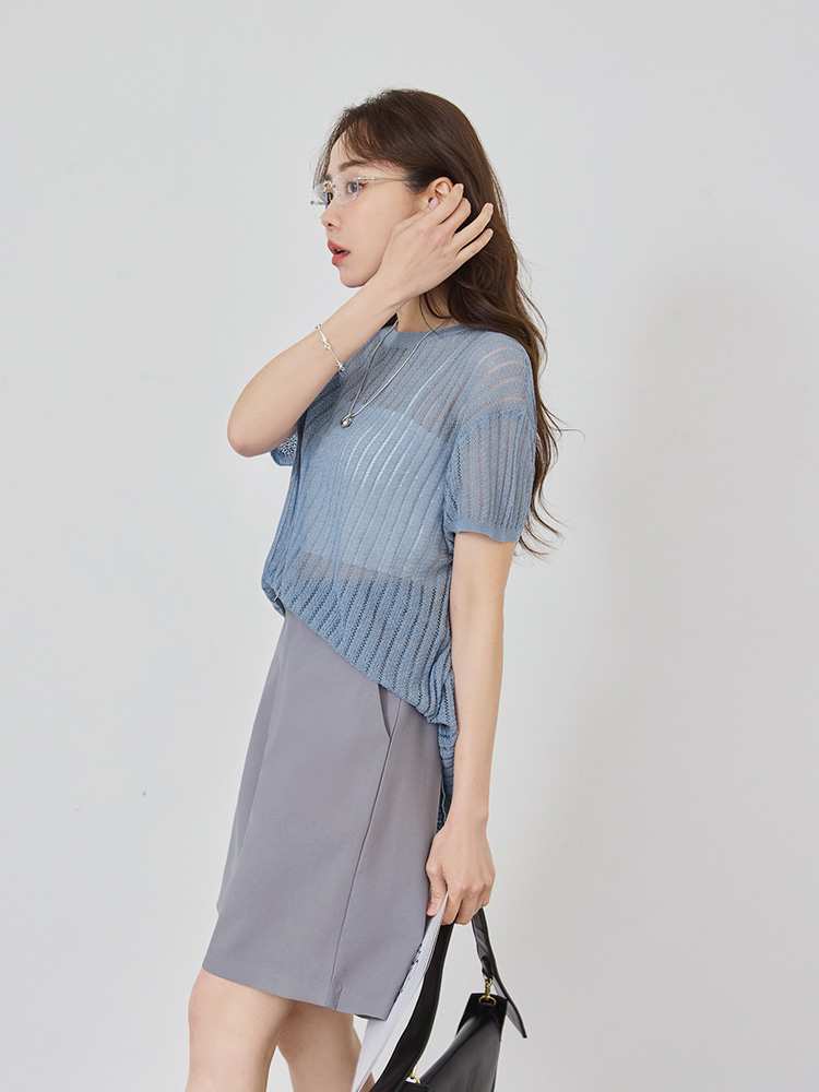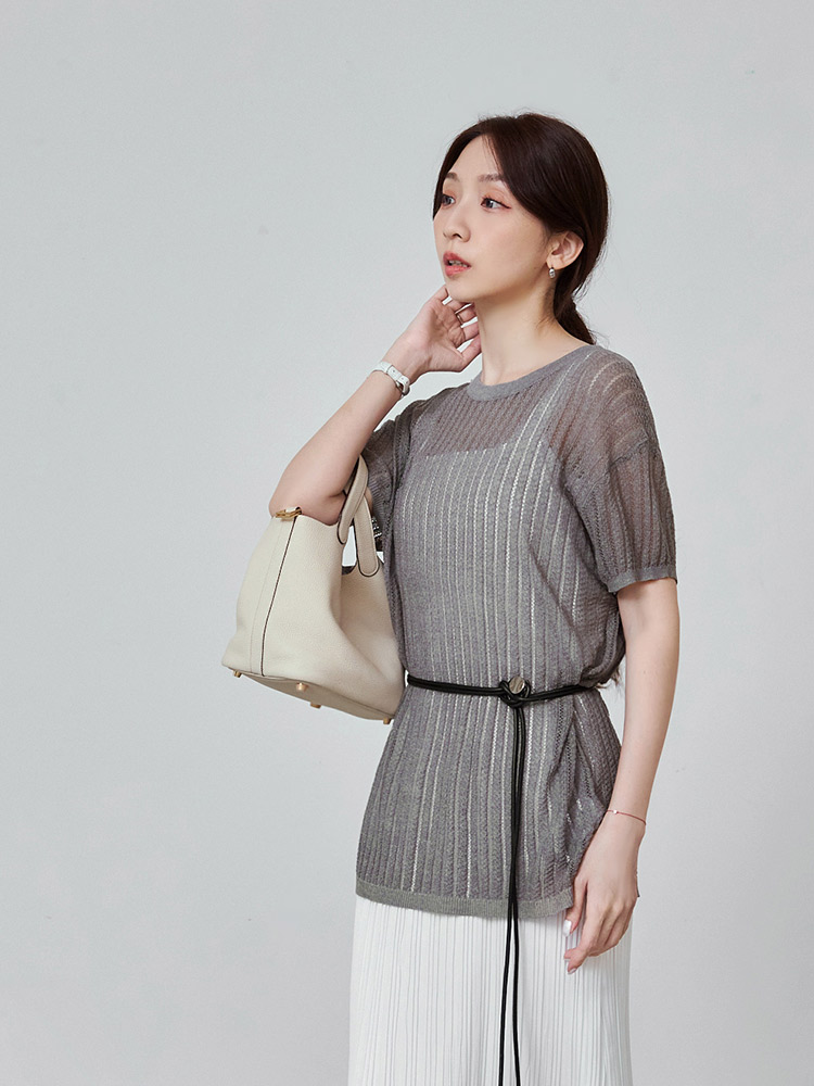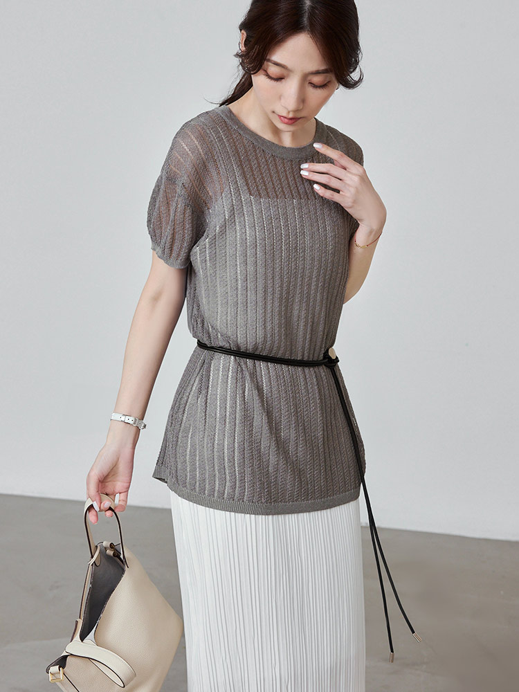 โ Crafted from a sheer, stretchy knit fabric.
