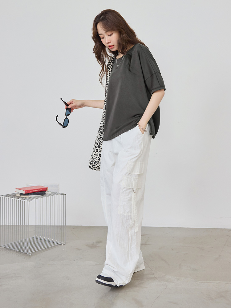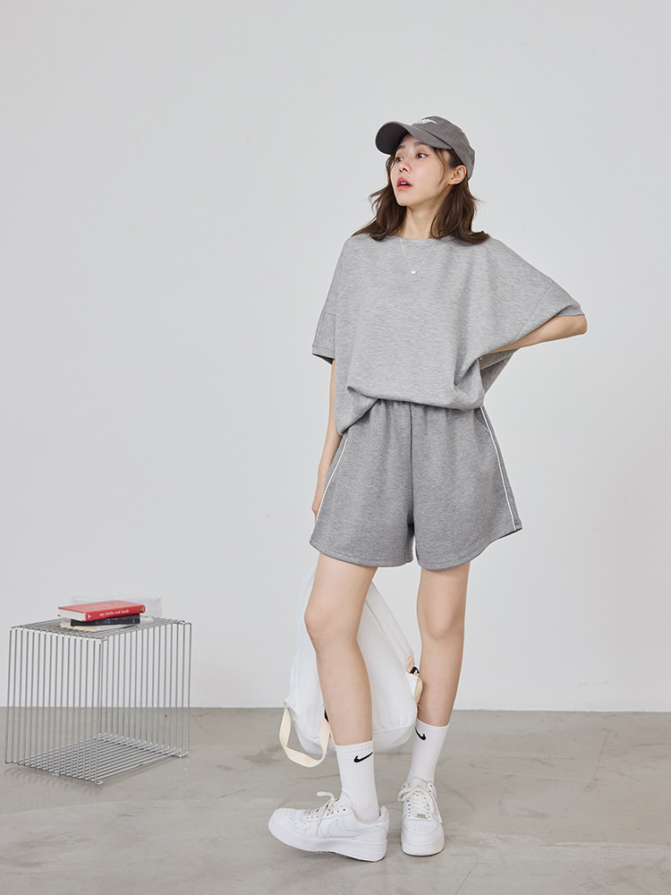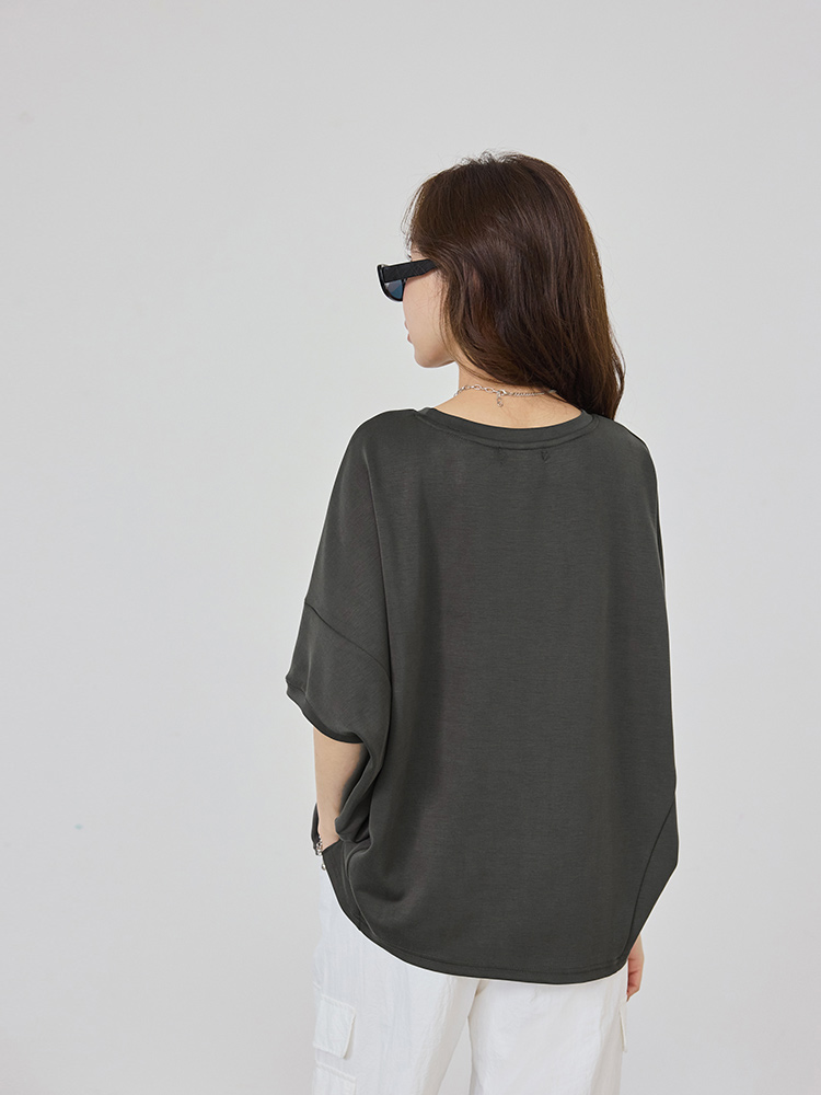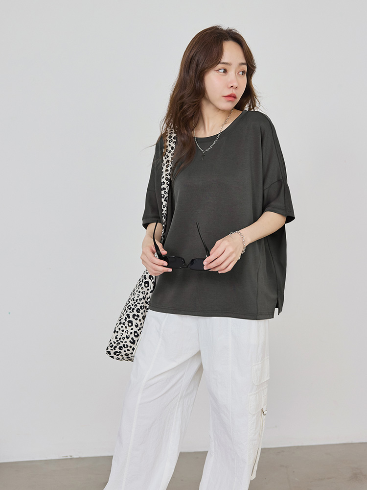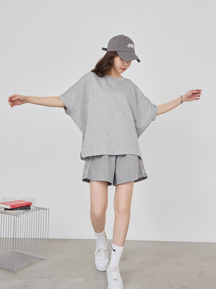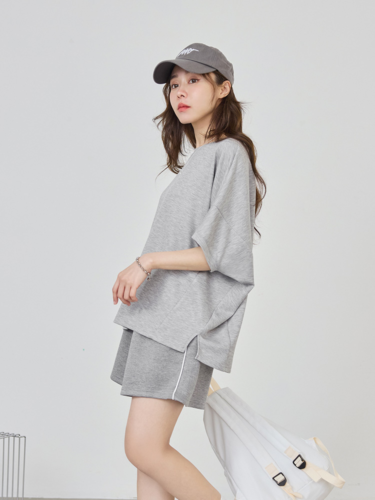 Space Cotton Slit-Hem Drop Shoulder Top