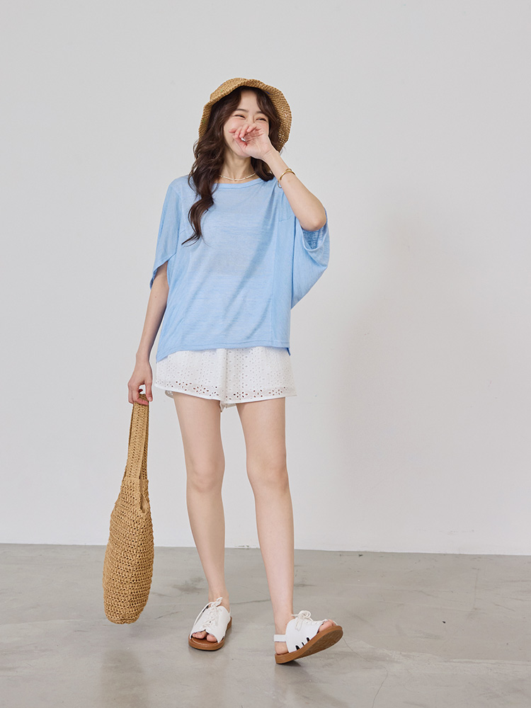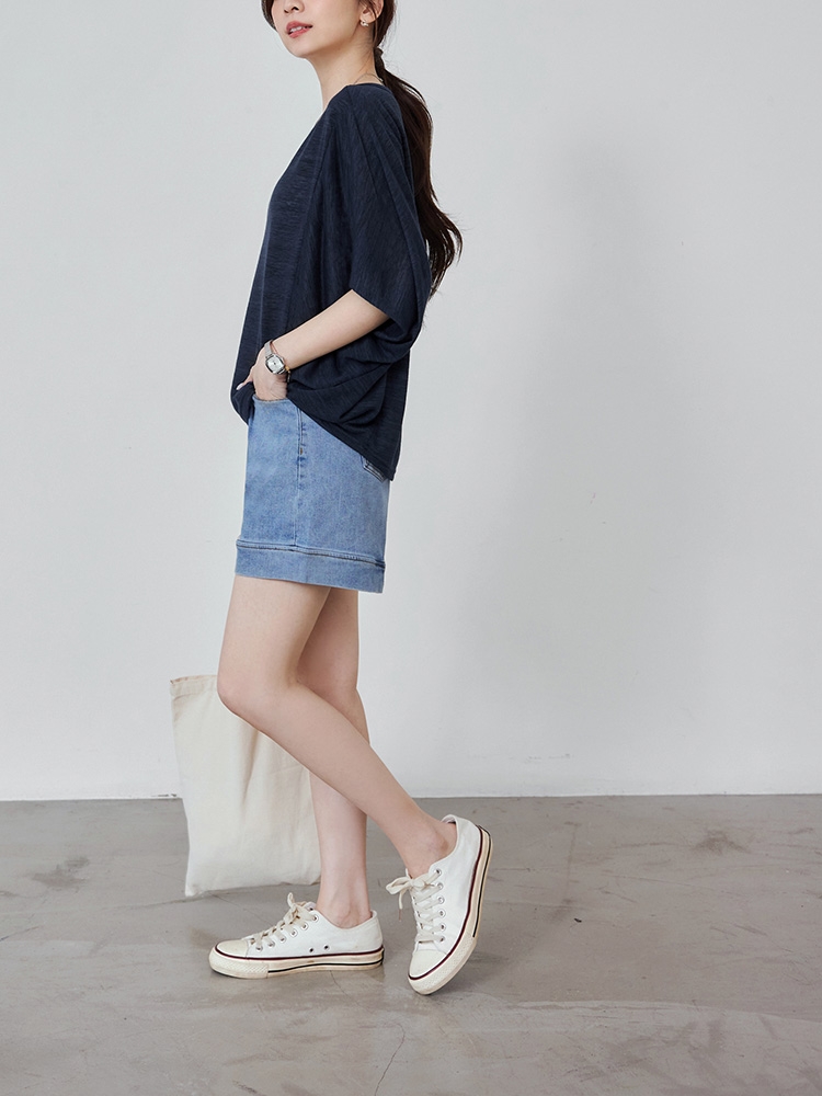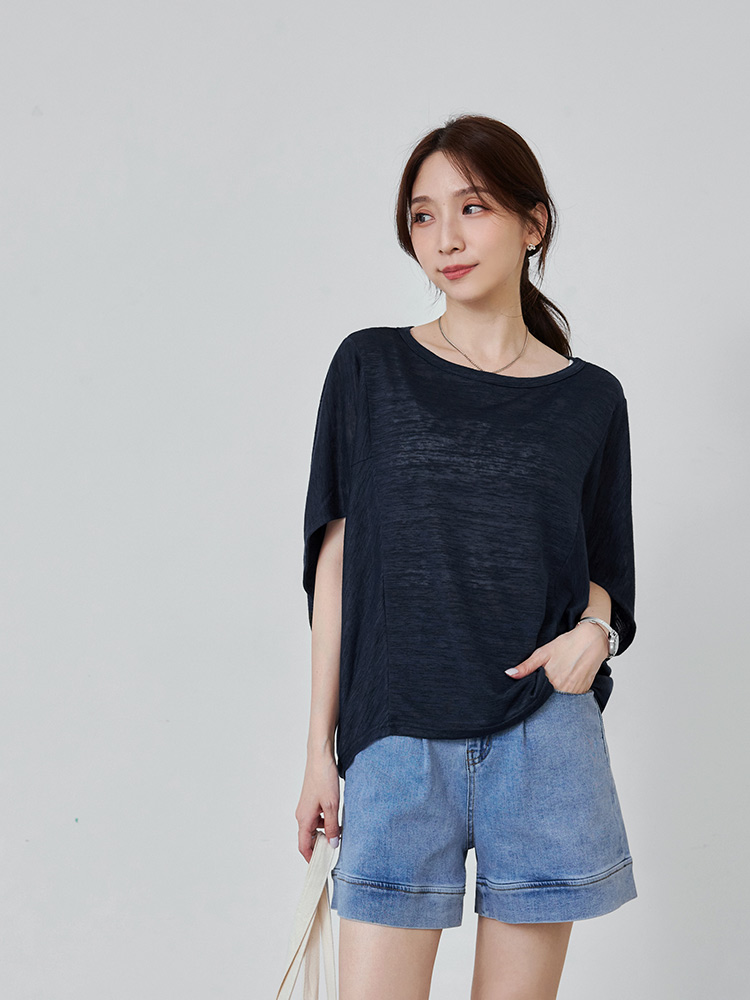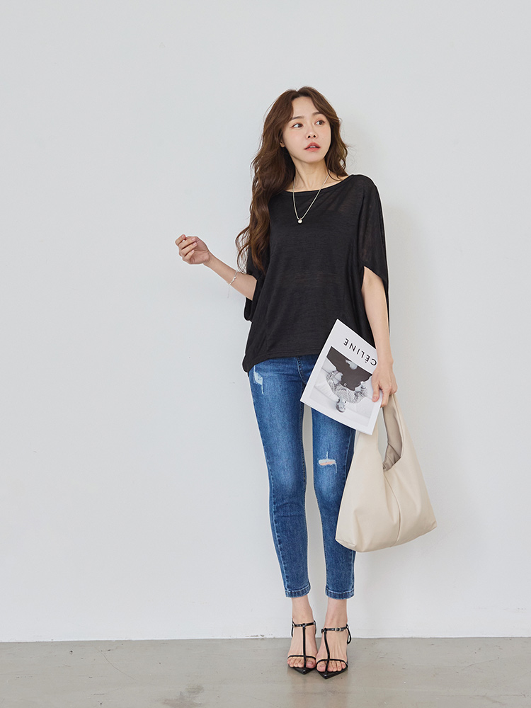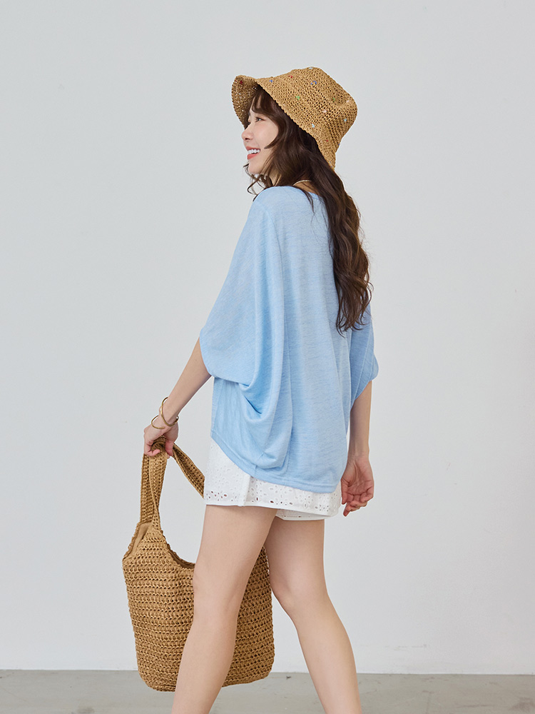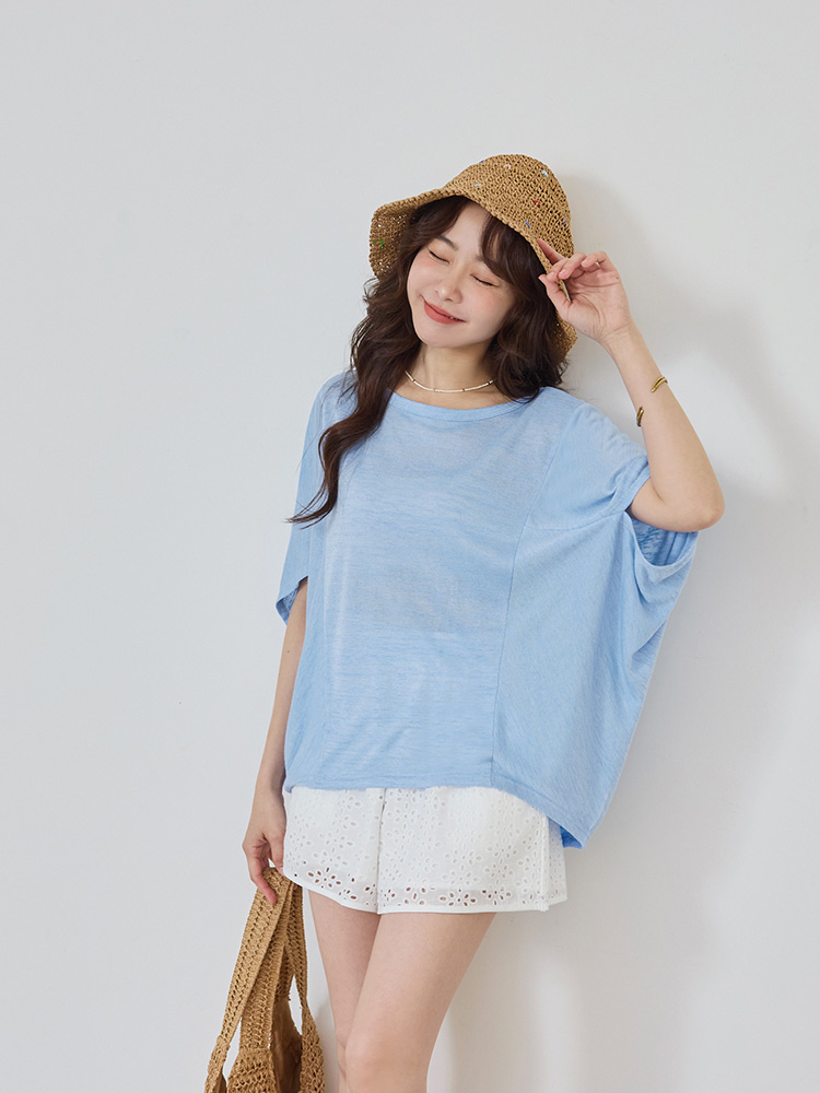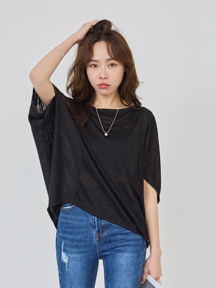 Longline Bamboo-Blend Top with Batwing Sleeves (2XL~3XL)