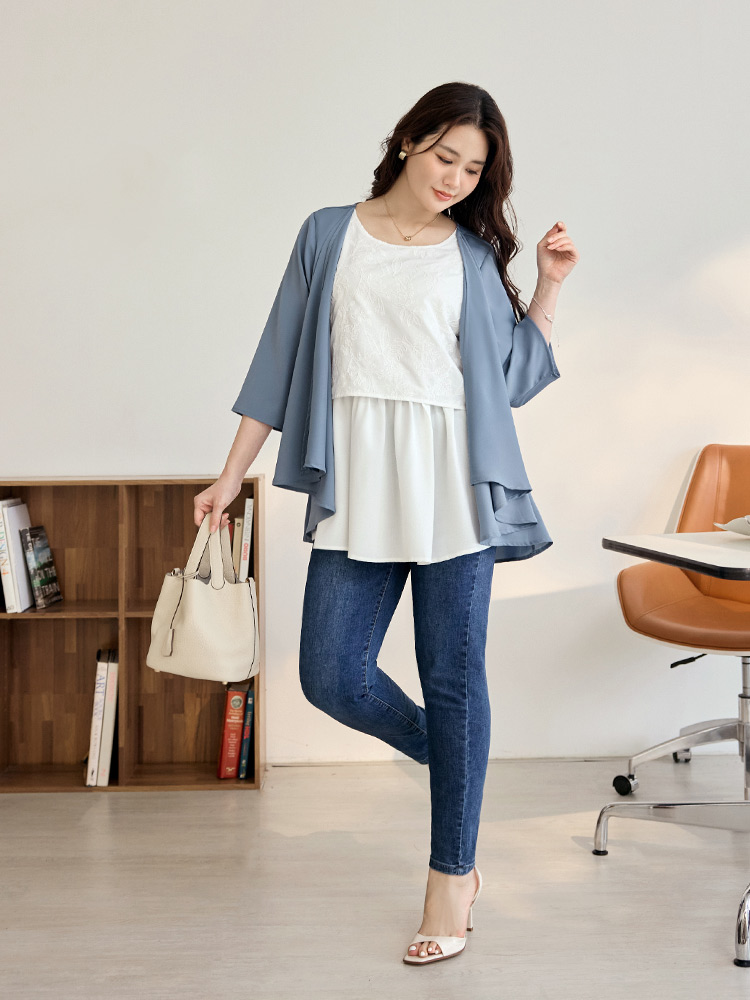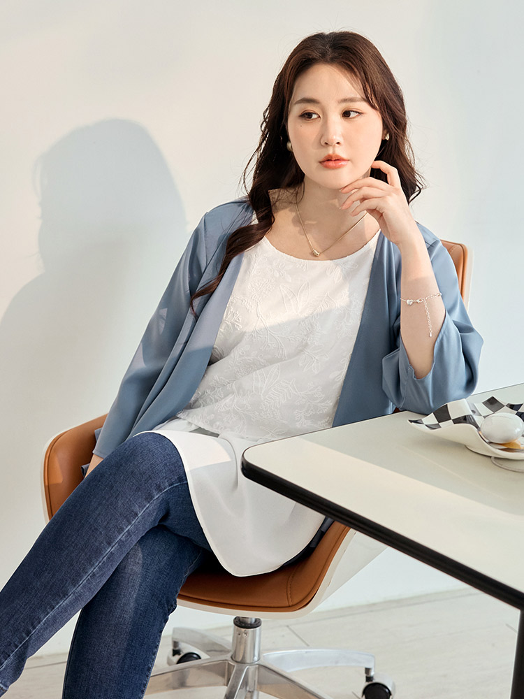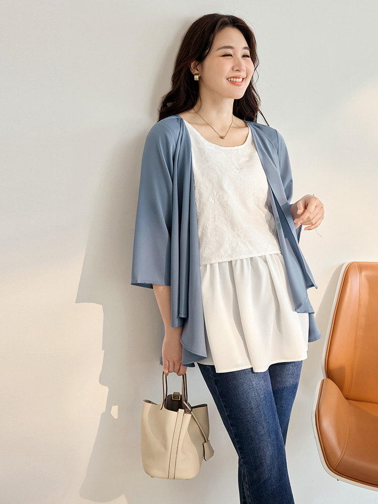Embroidered Layered-Look Umbrella Top (XL~4XL)