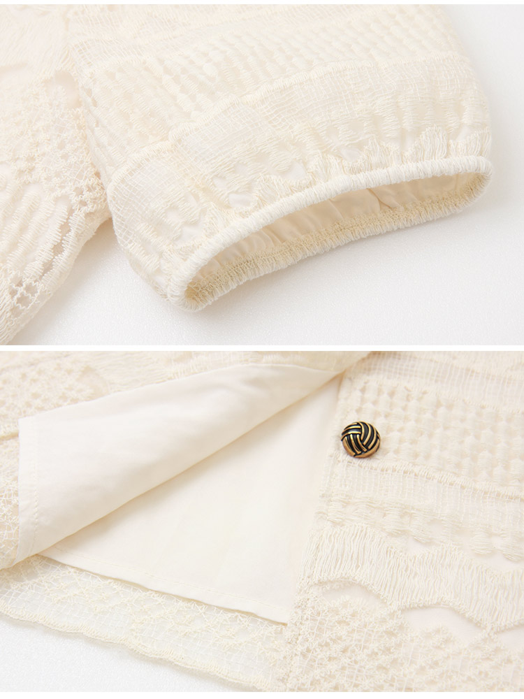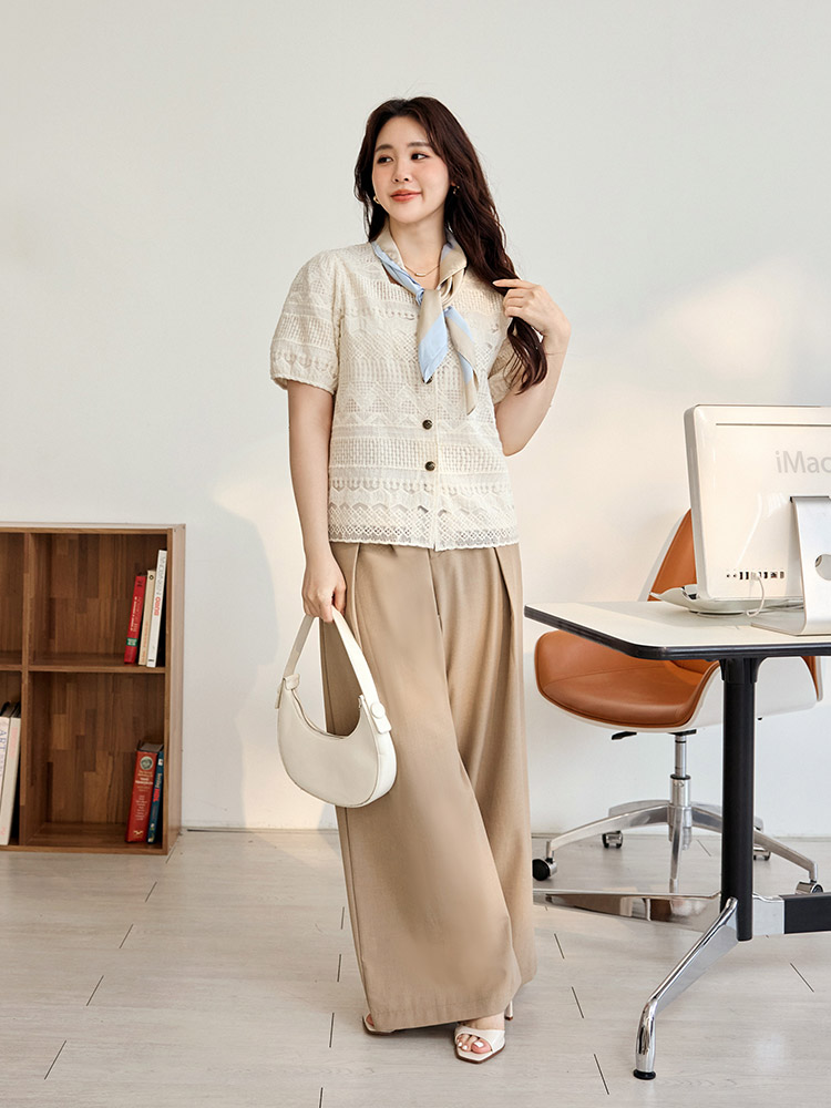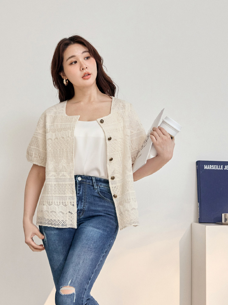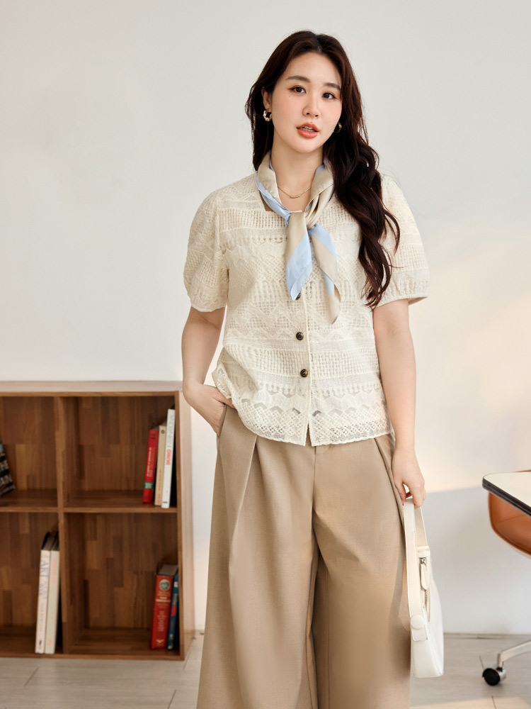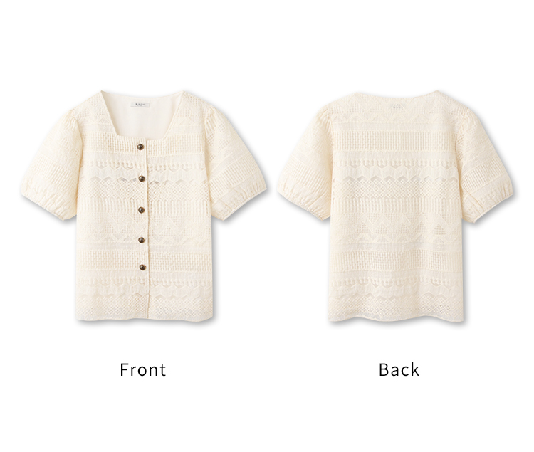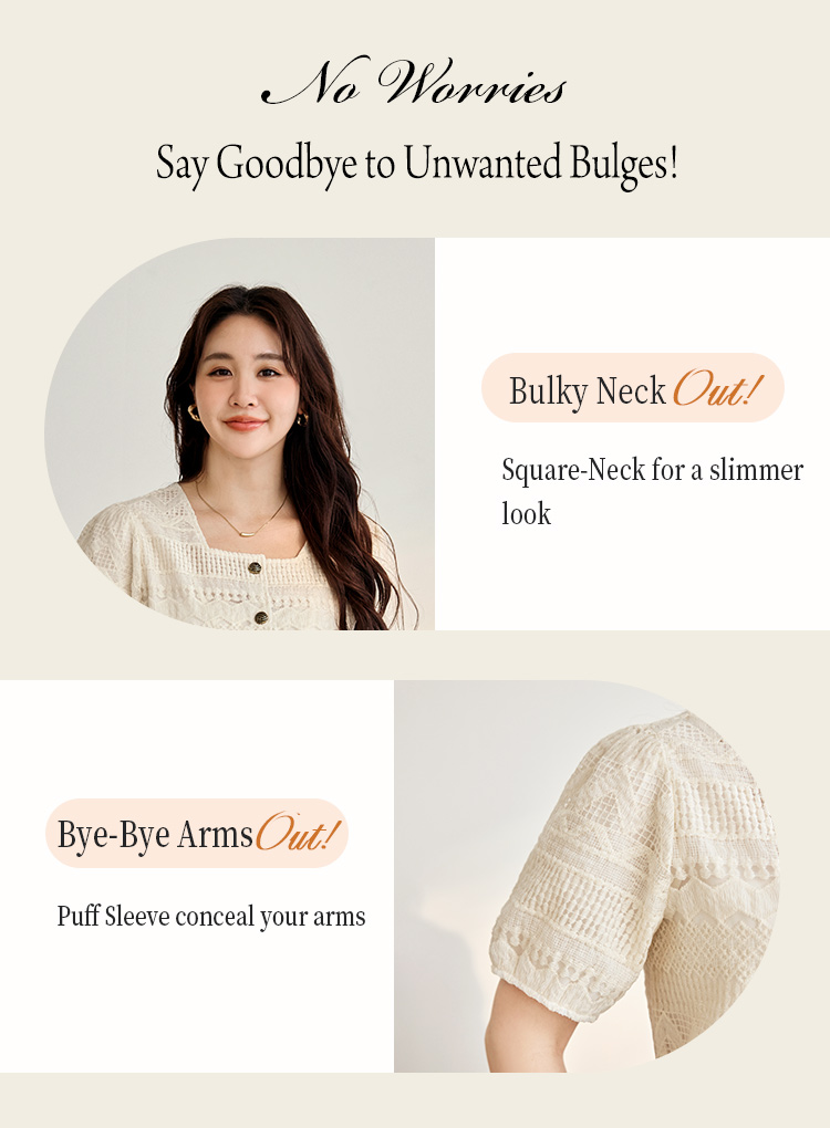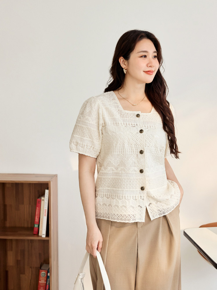 Square Neck Lace Puff Sleeve Blouse (XL~4XL)