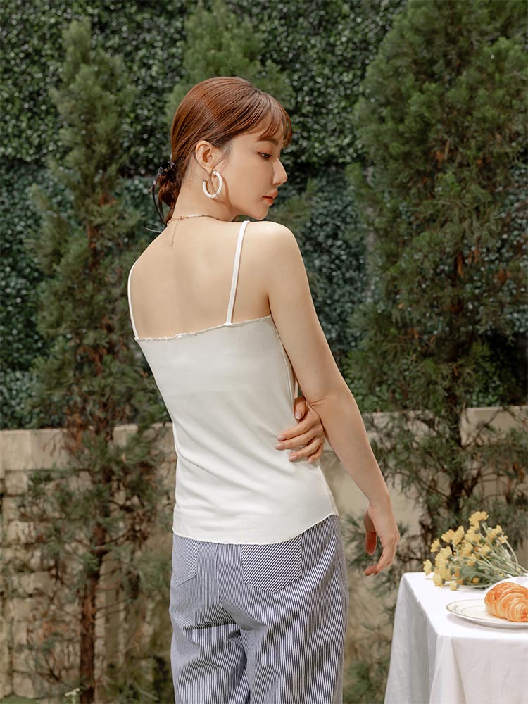Ruffled-Trim Knitted Cami Top