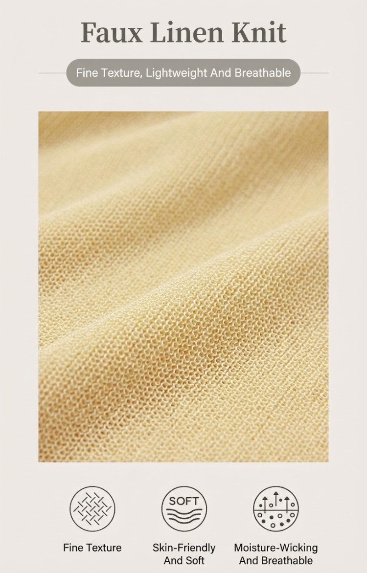 โ Crafted from a breathable linen-look knit that drapes beautifully.