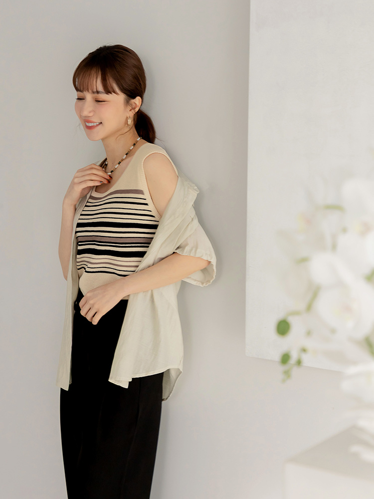 Layered V-neck Ruffle Trim Open-Front Knit Top