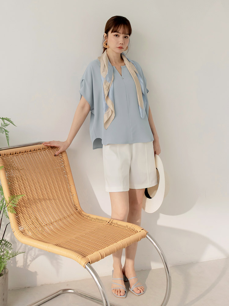 Pleated Sleeve V-Neck Blouse