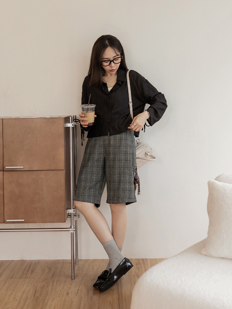 โ Crafted from soft, breathable checked fabric