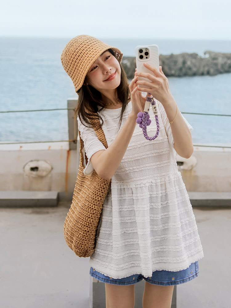 Cloud Girl 2-Way Textured Puff Sleeve Top