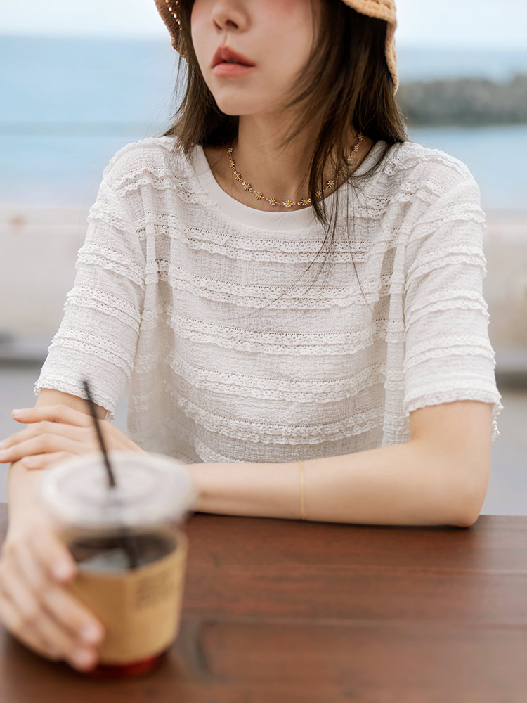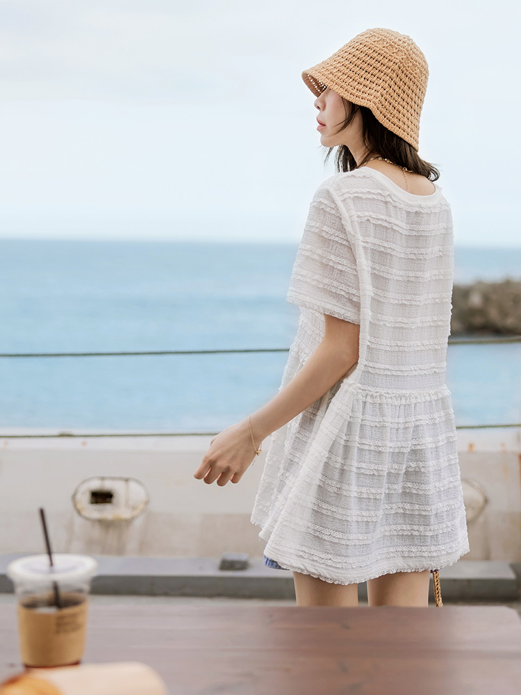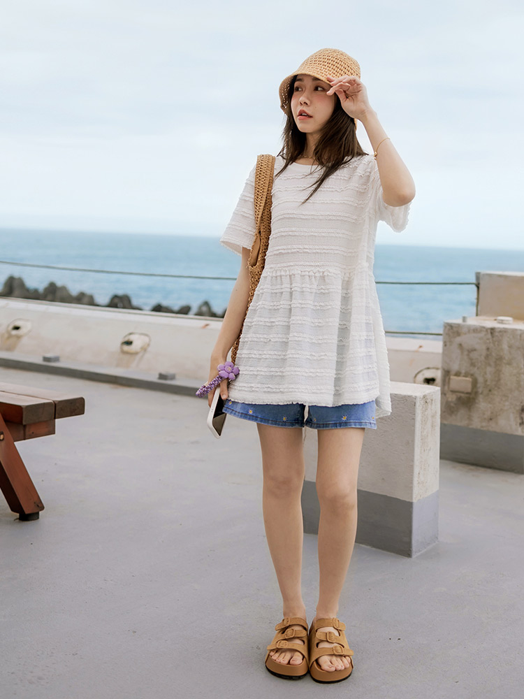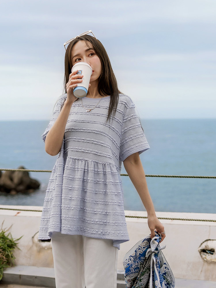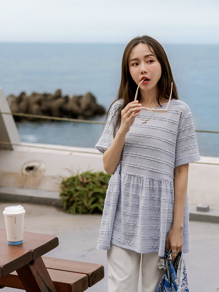 Burnout-Effect Layered Hem Top (2XL~3XL)