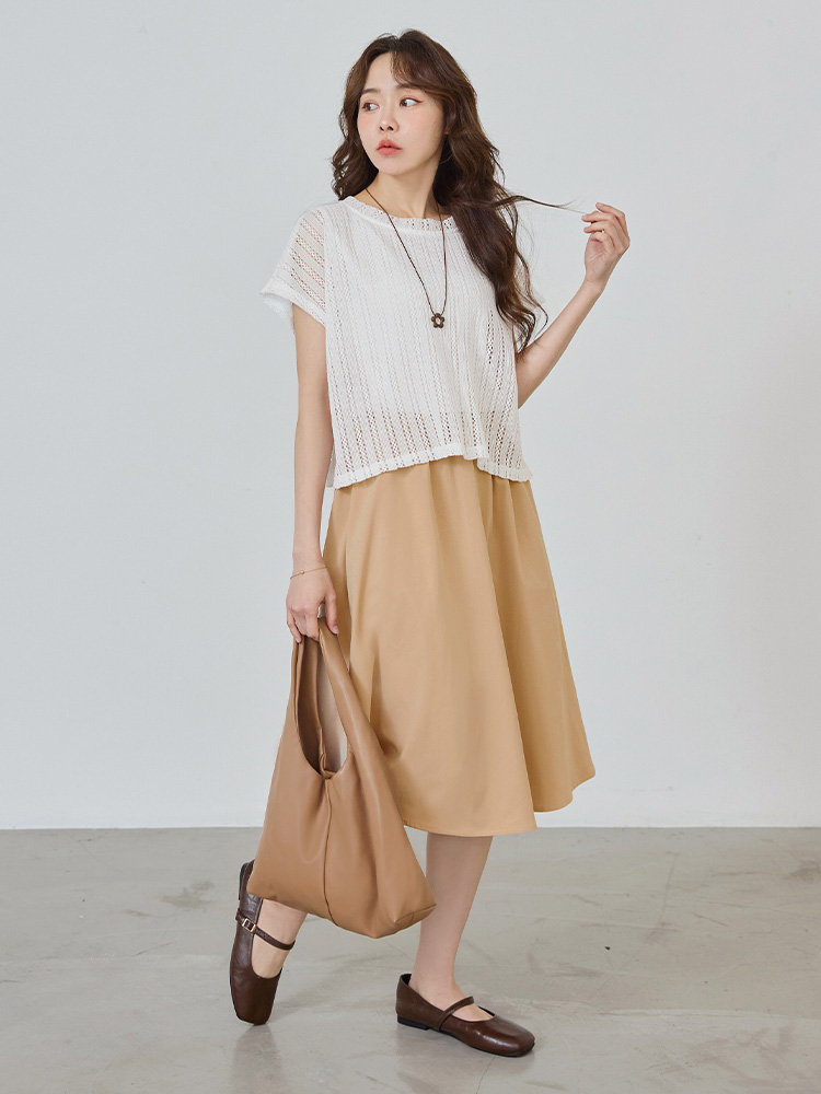 Two-Piece Hollow-Out Midi Dress (2XL~3XL)