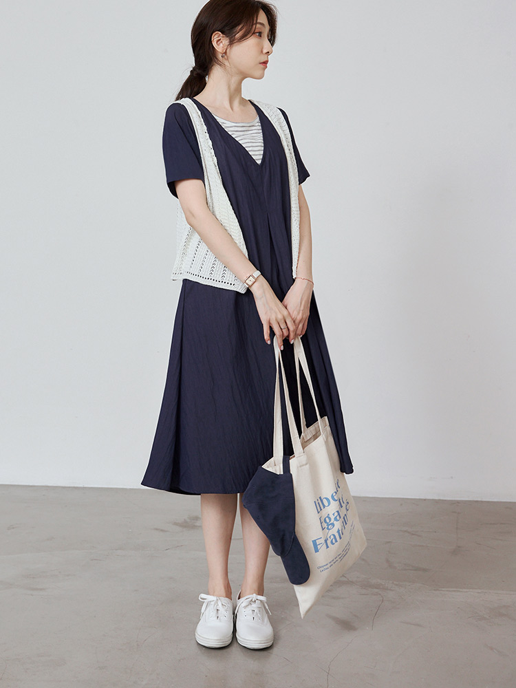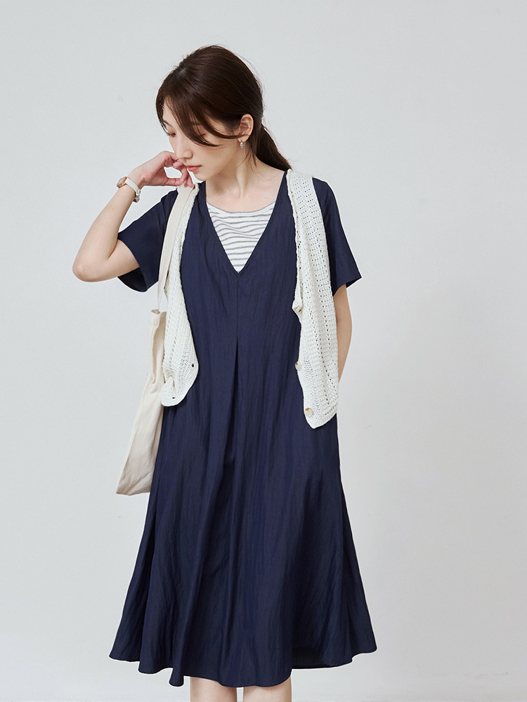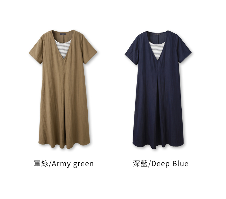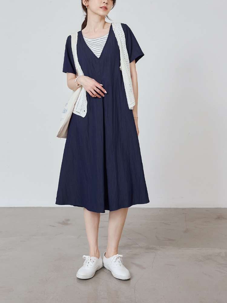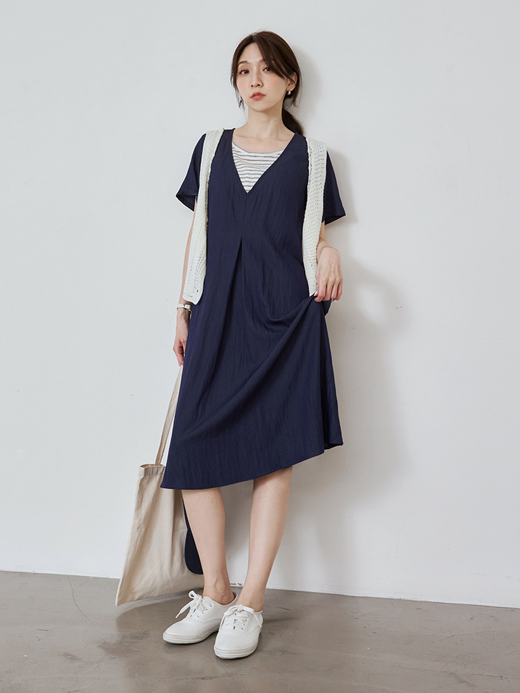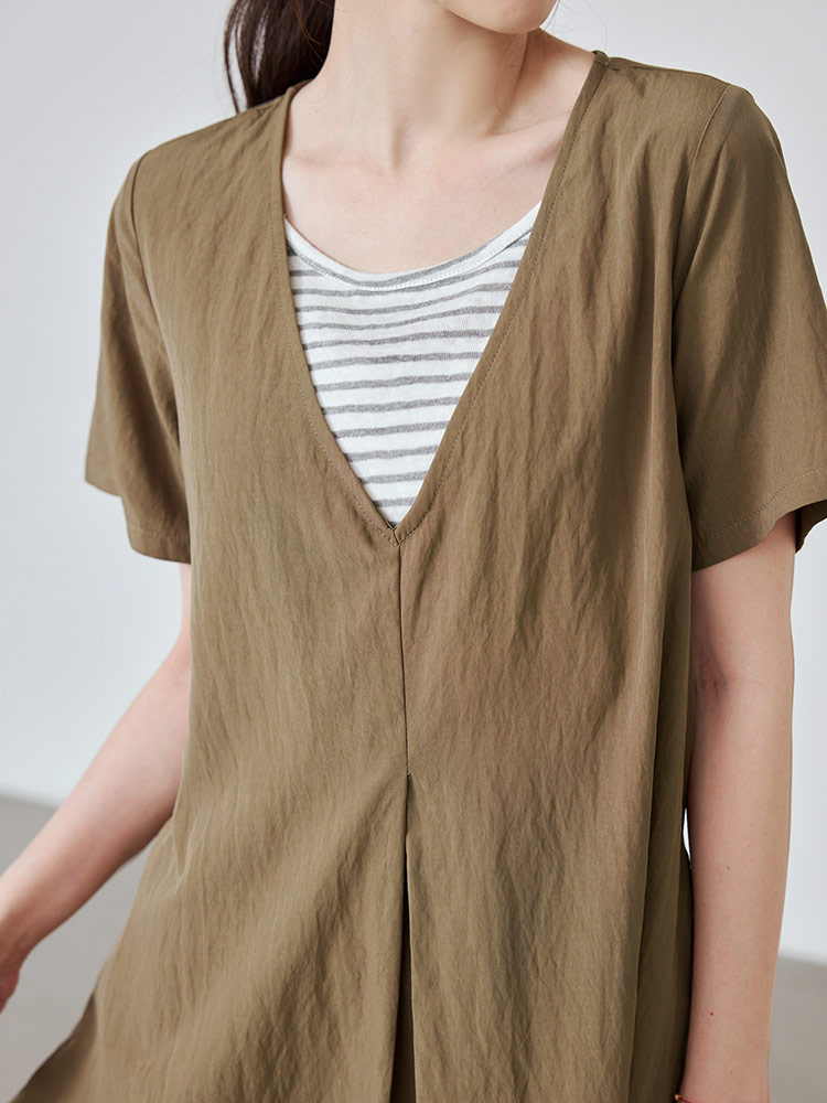 Striped Two-Piece Effect V-Neck Dress (2XL~4XL)