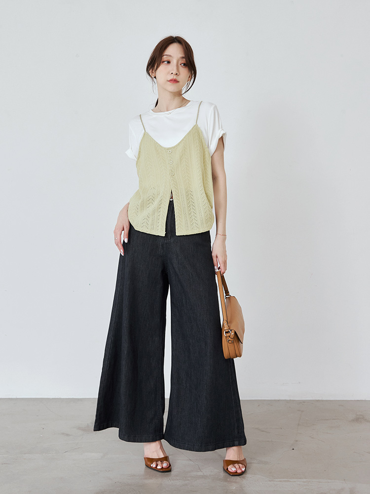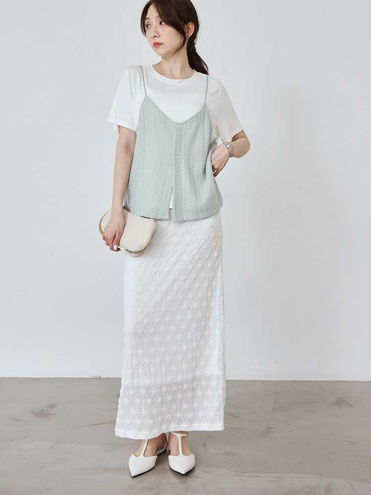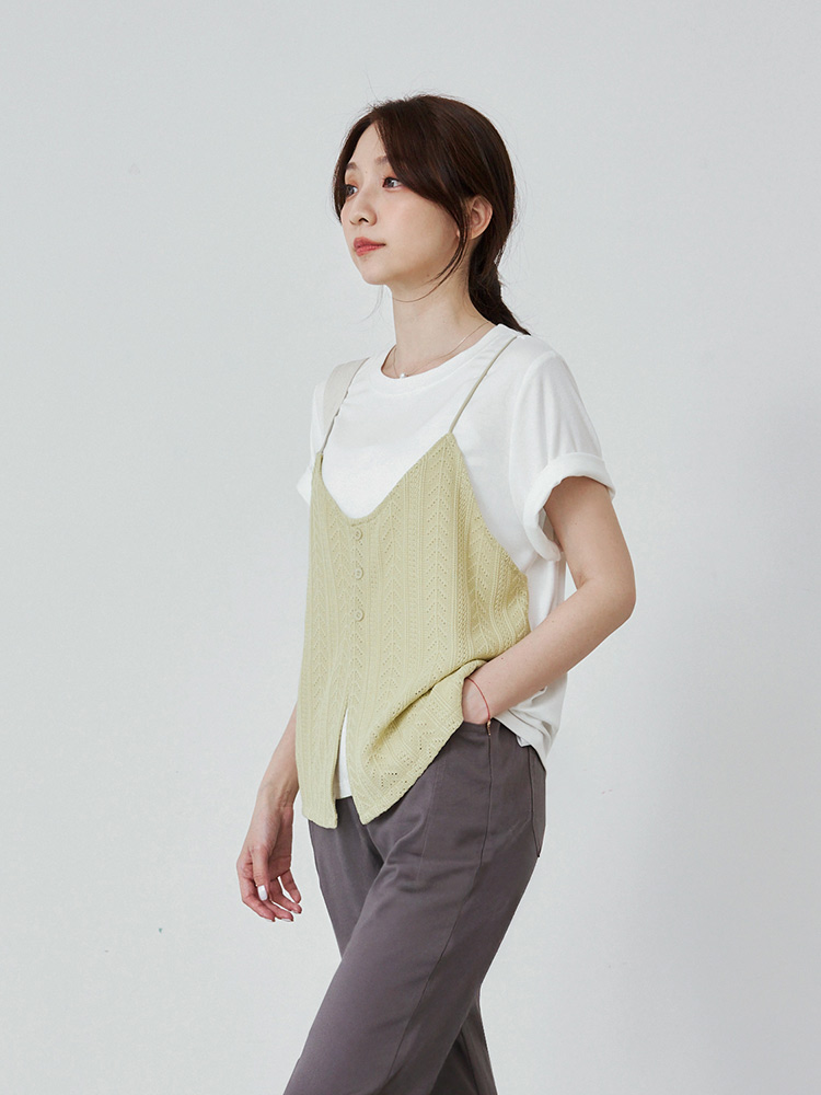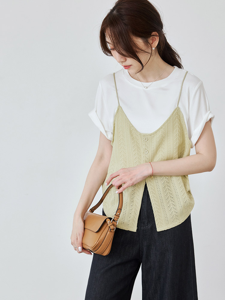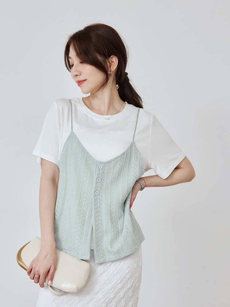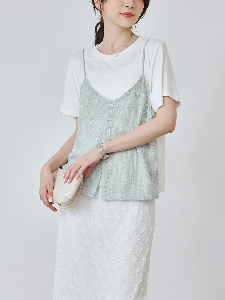 Two-Piece Textured V-Neck Cami Top (2XL~4XL)