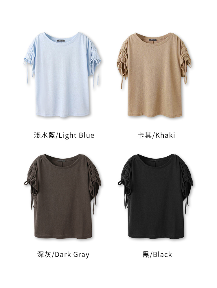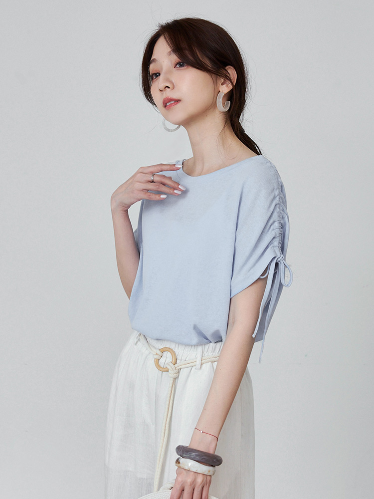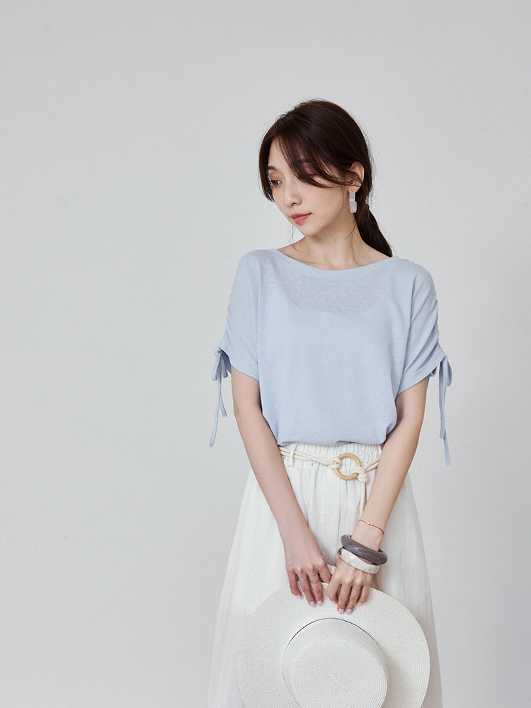 Plain Drawstring Cotton-Blend Top (2XL~4XL)