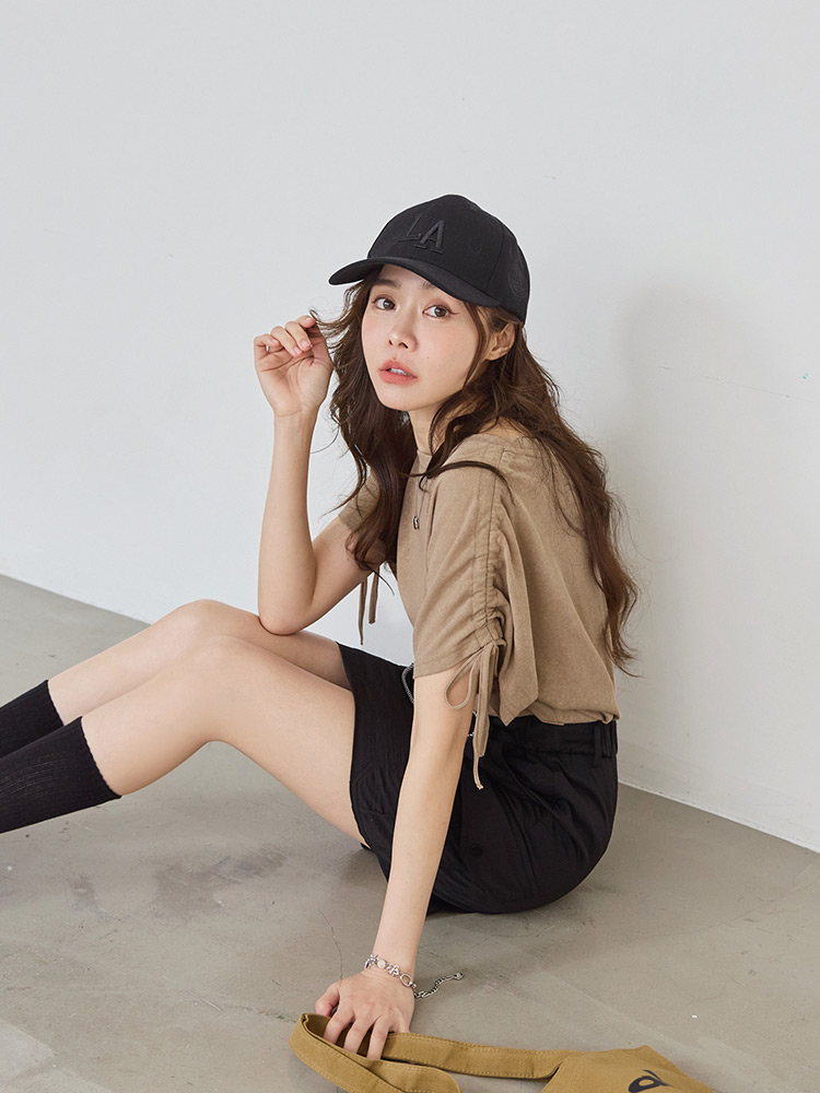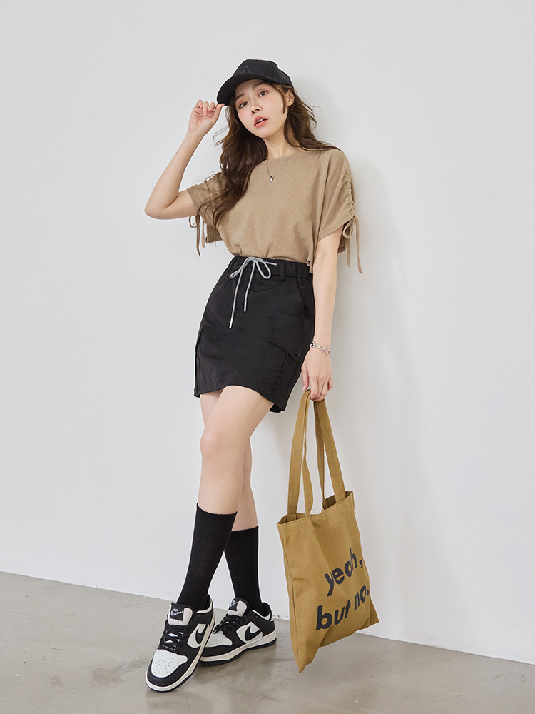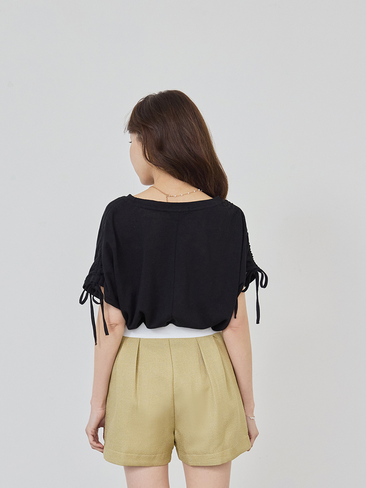 โ Features adjustable drawstring detail at the shoulders.