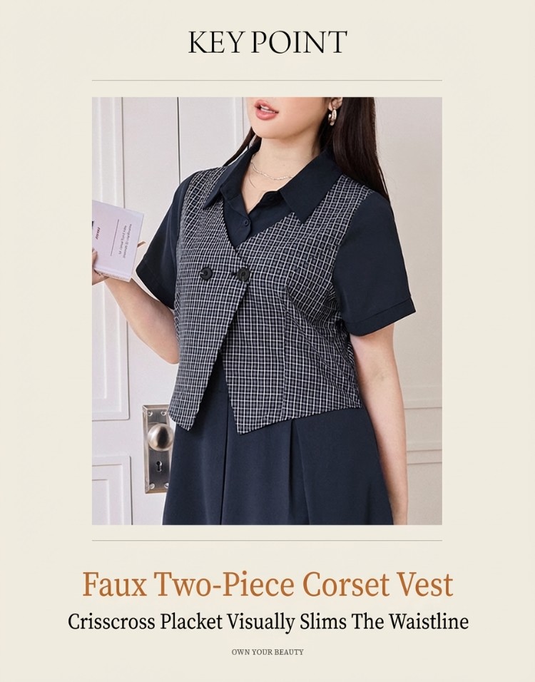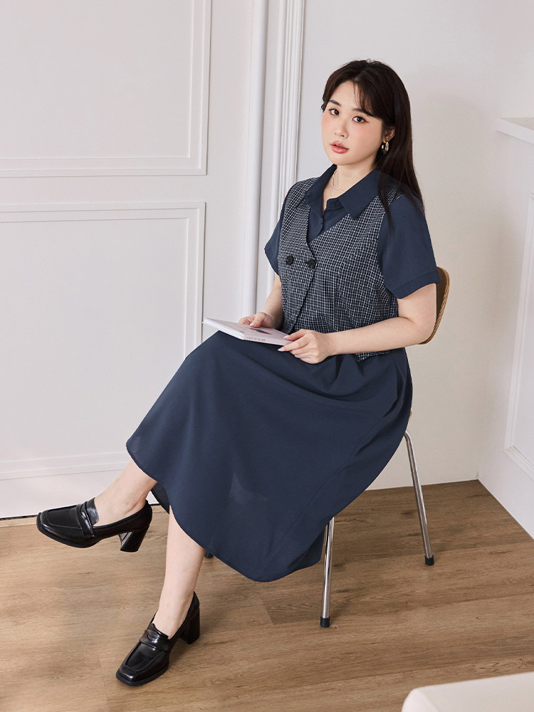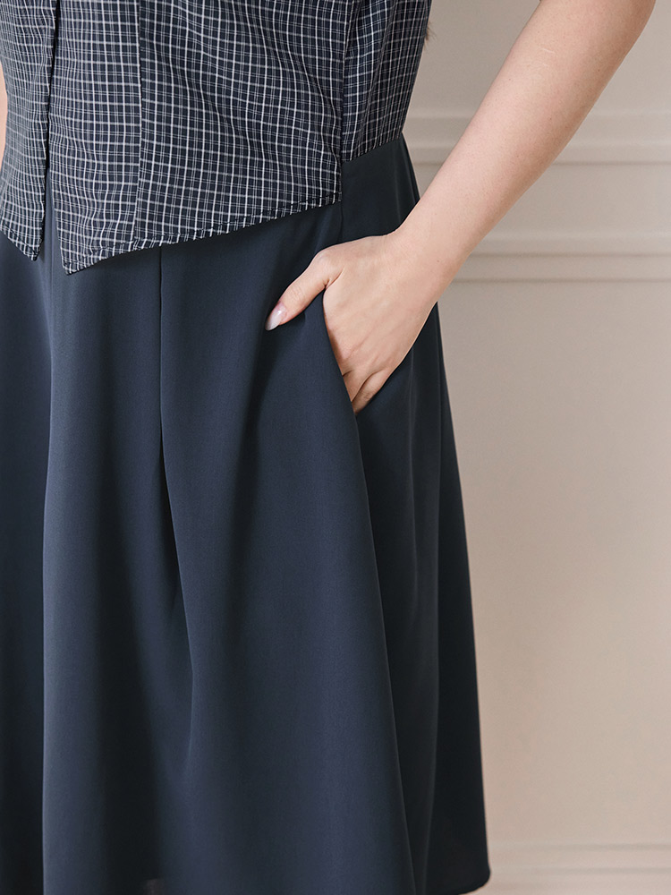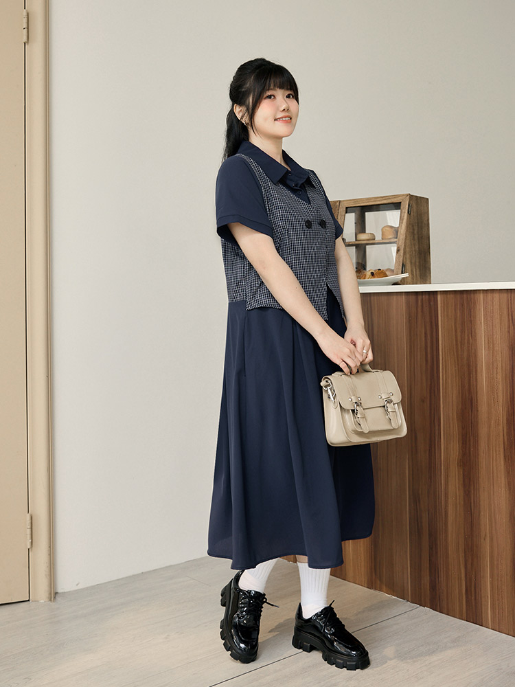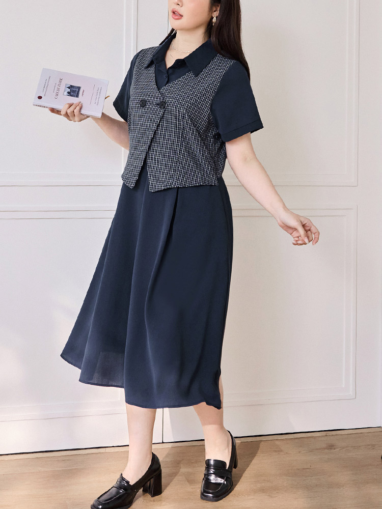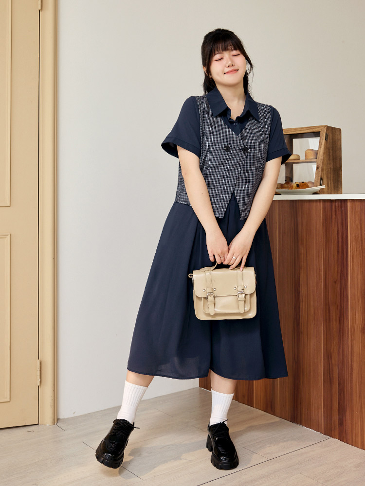 Product Feature: โ Designed with a two-piece aesthetic featuring a checkered vest and dress. โ Crafted from soft, skin-friendly fabric for all-day comfort. โ Flattering A-line skirt to enhance your silhouette. โ Featuring functional pockets for added convenience.