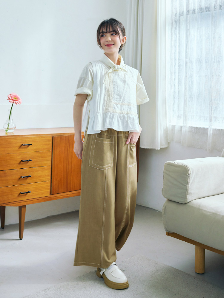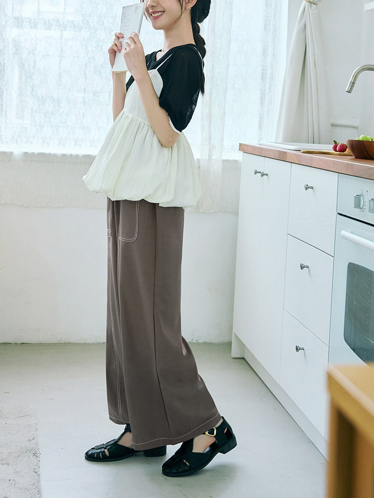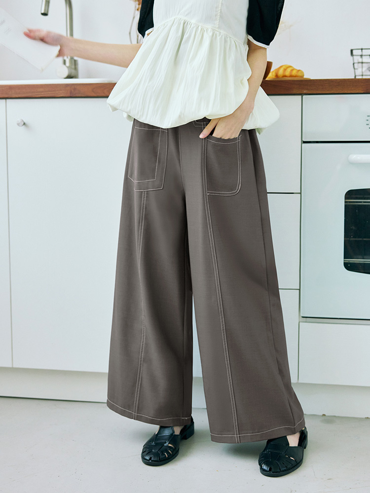 Colour-Block Stitching Wide-Leg Trousers (2XL~3XL)