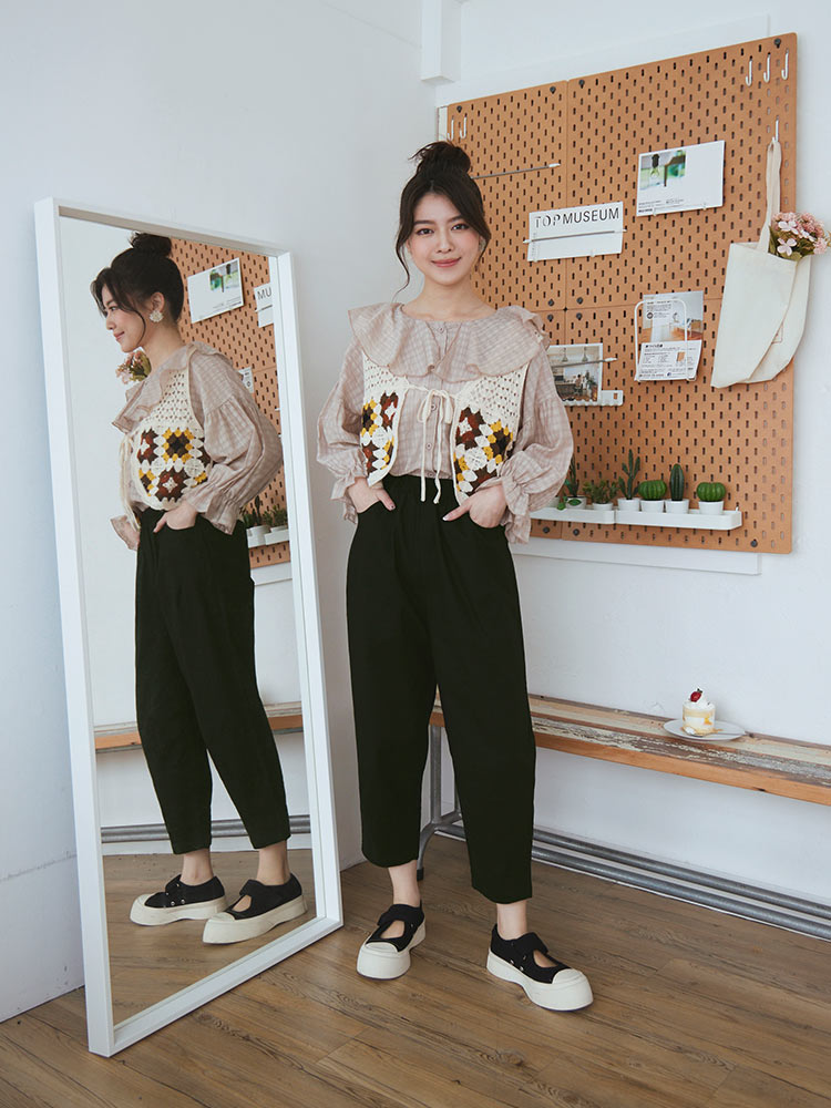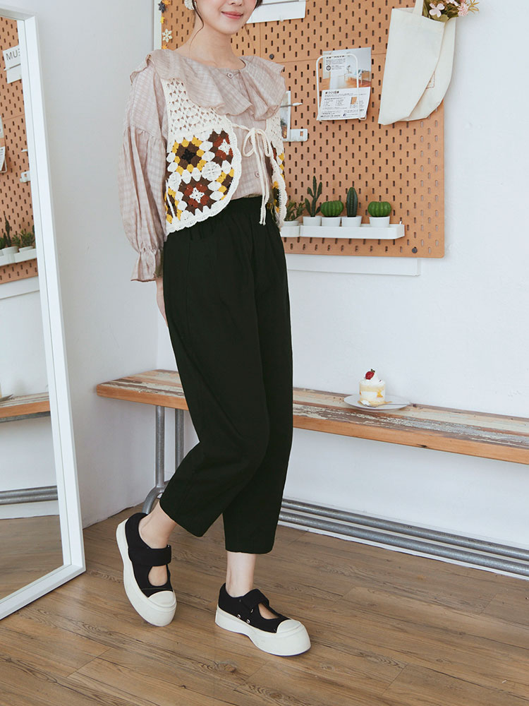 Product Feature: โ Crafted from soft, pure cotton for ultimate comfort. โ Featuring a button-detail design with functional pockets. โ Designed with a relaxed fit to flatter your figure. โ Elasticated waist for a comfortable, secure fit. โ Cropped length and tailored seams create a leg-lengthening effect.