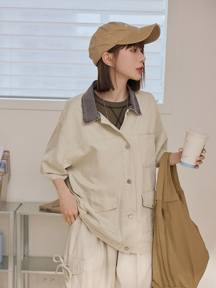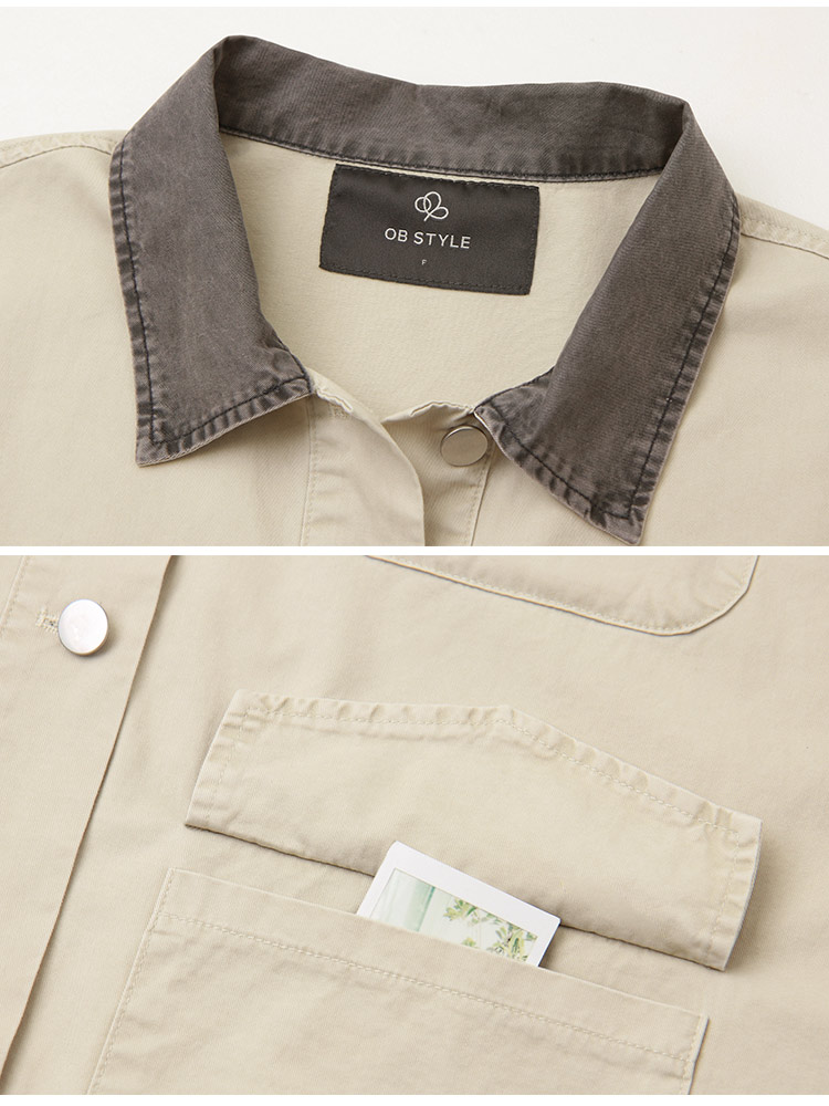 Retro Colour-Block Cotton Twill Jacket (2XL~3XL)