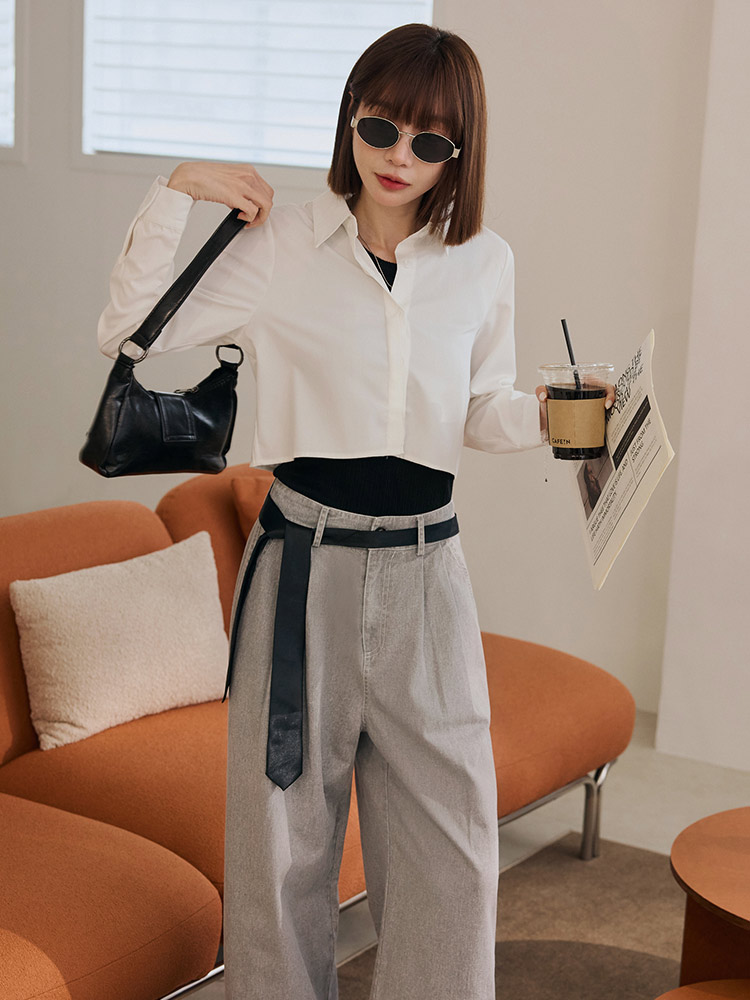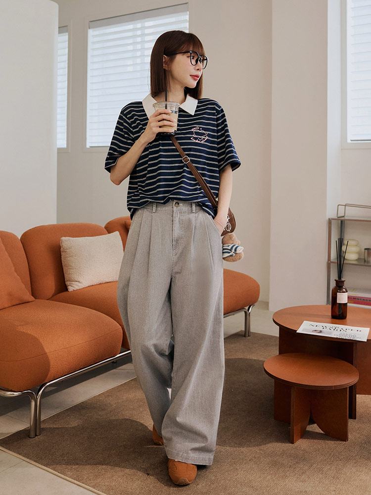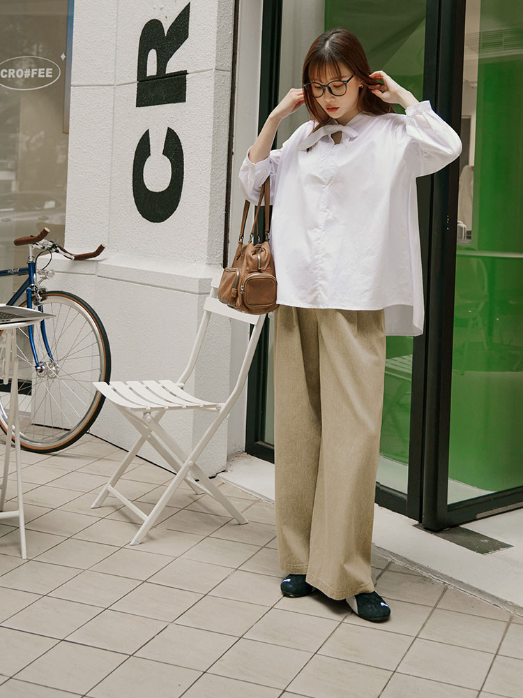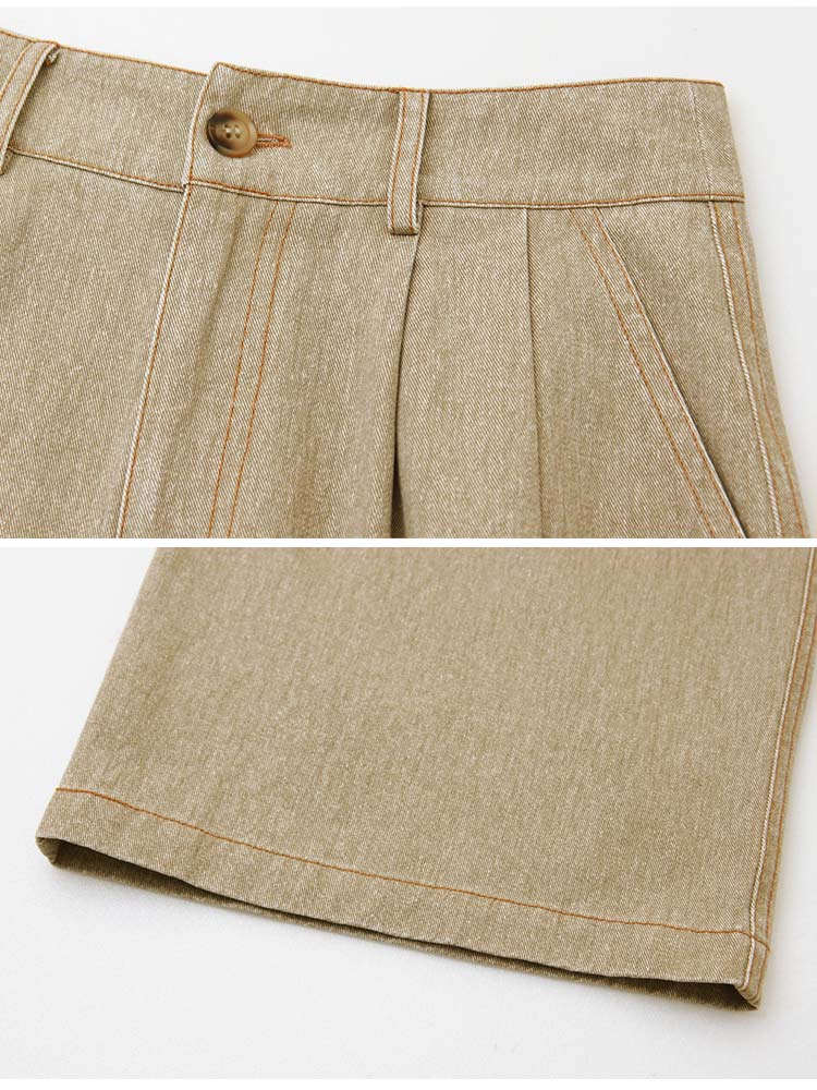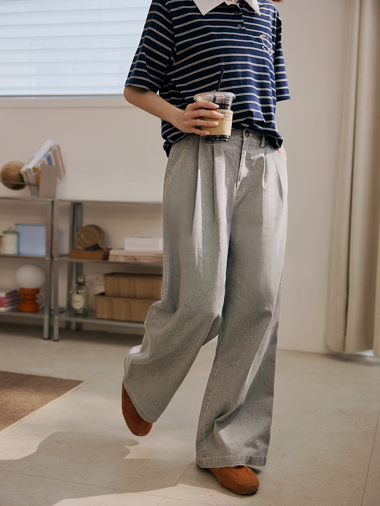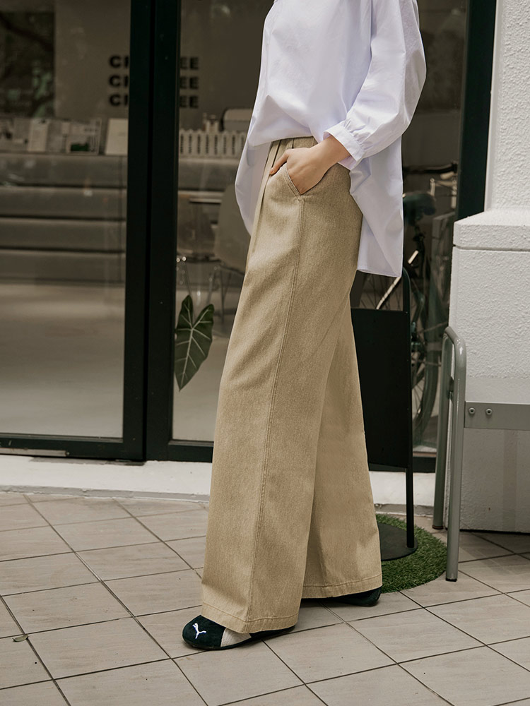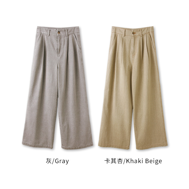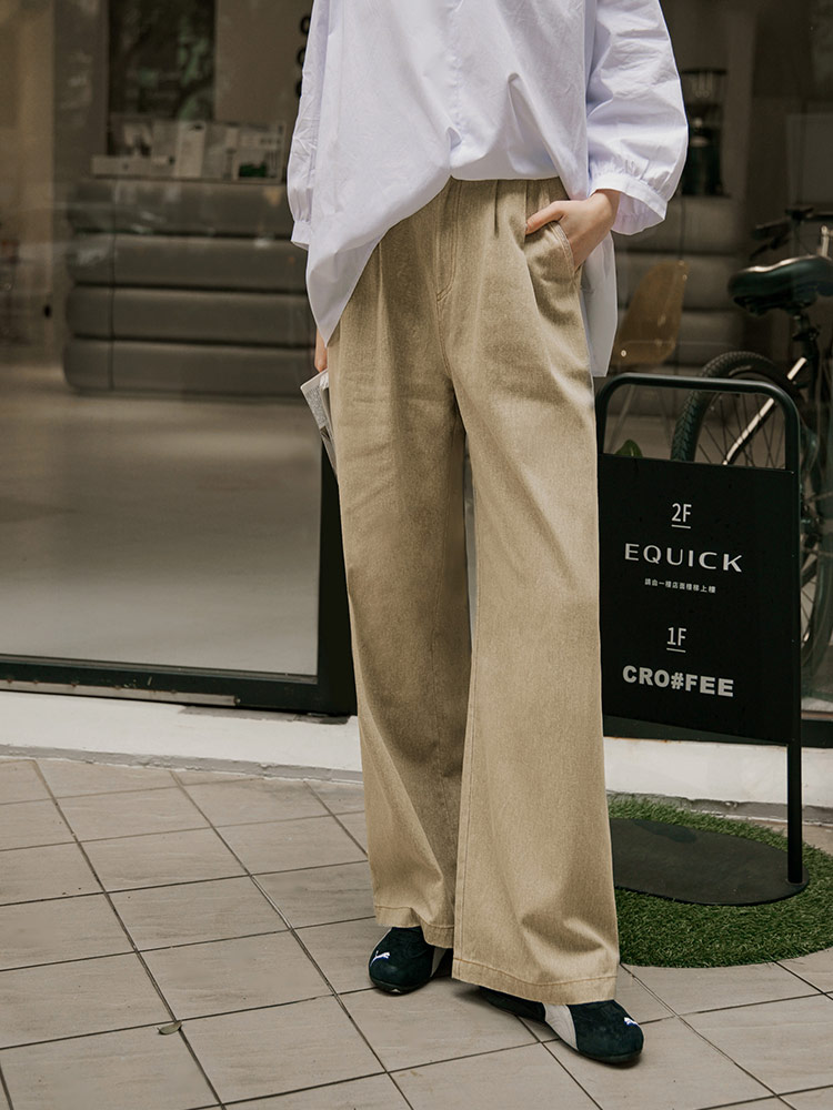 Washed Cotton Pleated Wide Trousers (2XL~4XL)
