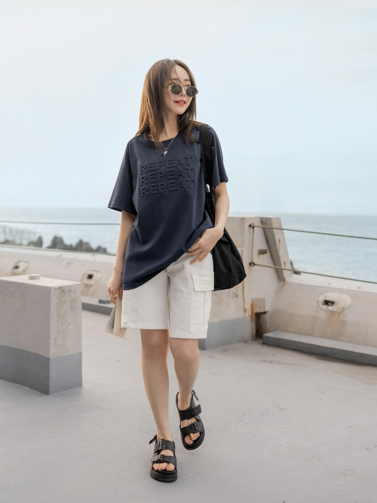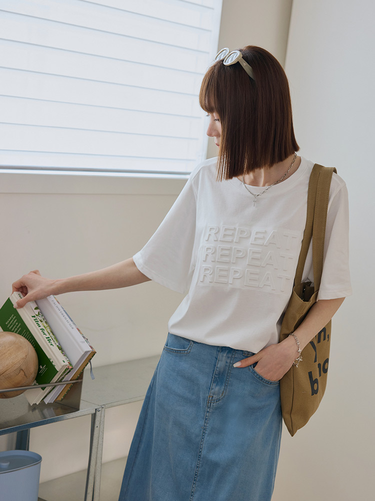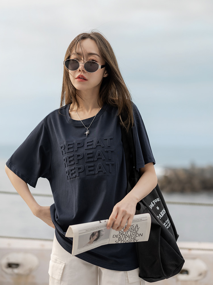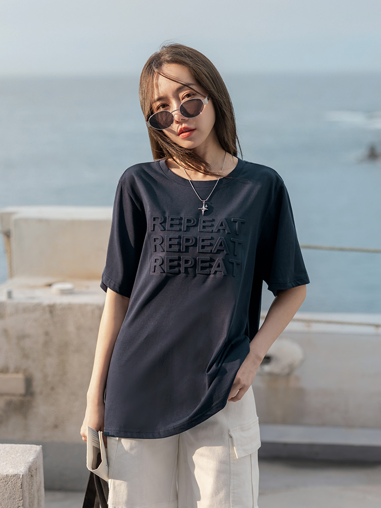 Textured Letter Print Cotton T-Shirt