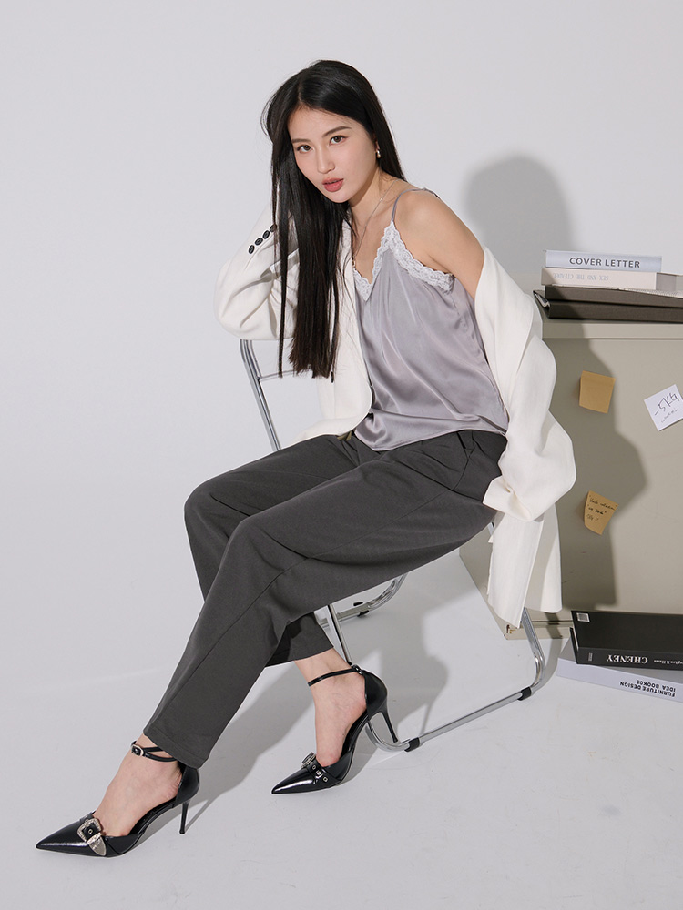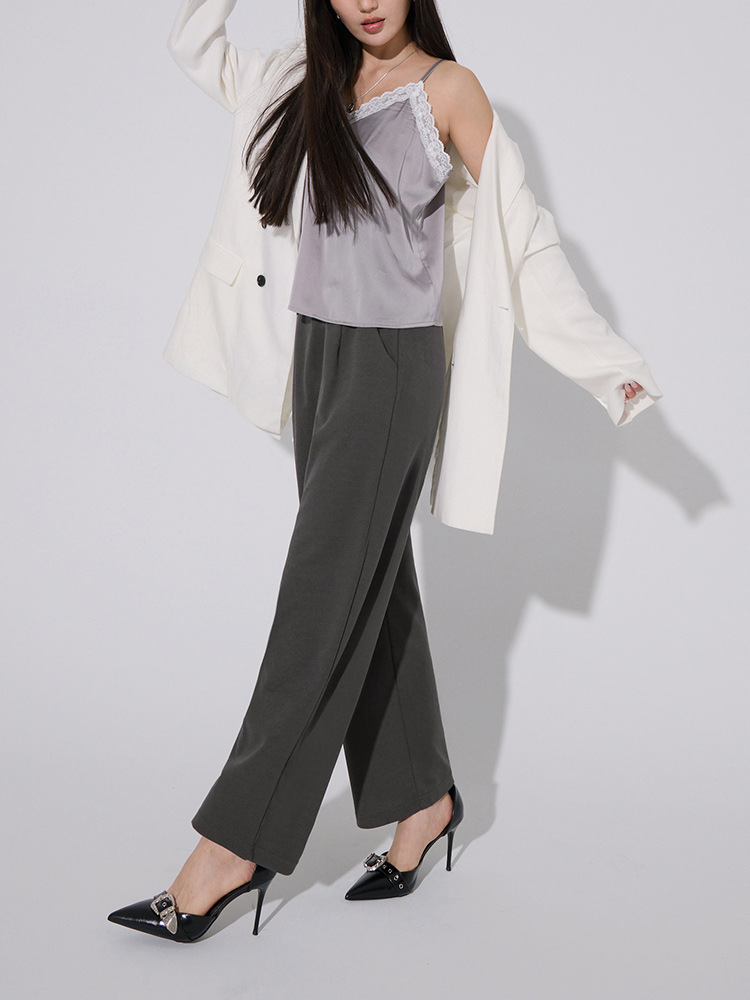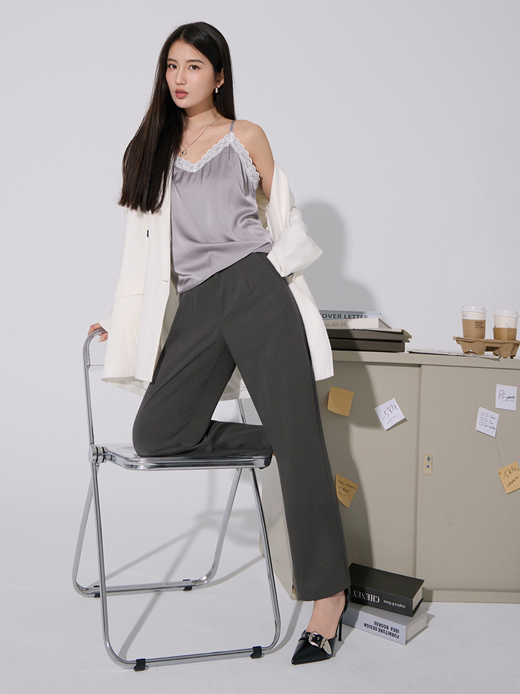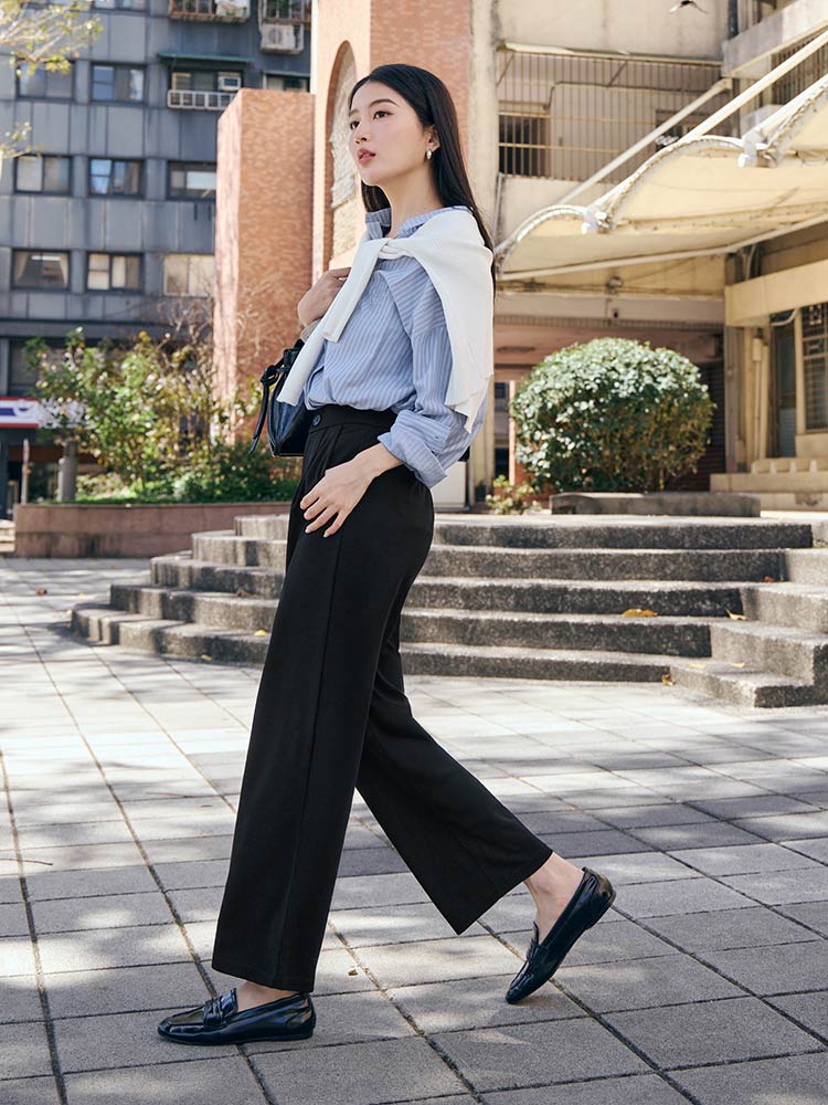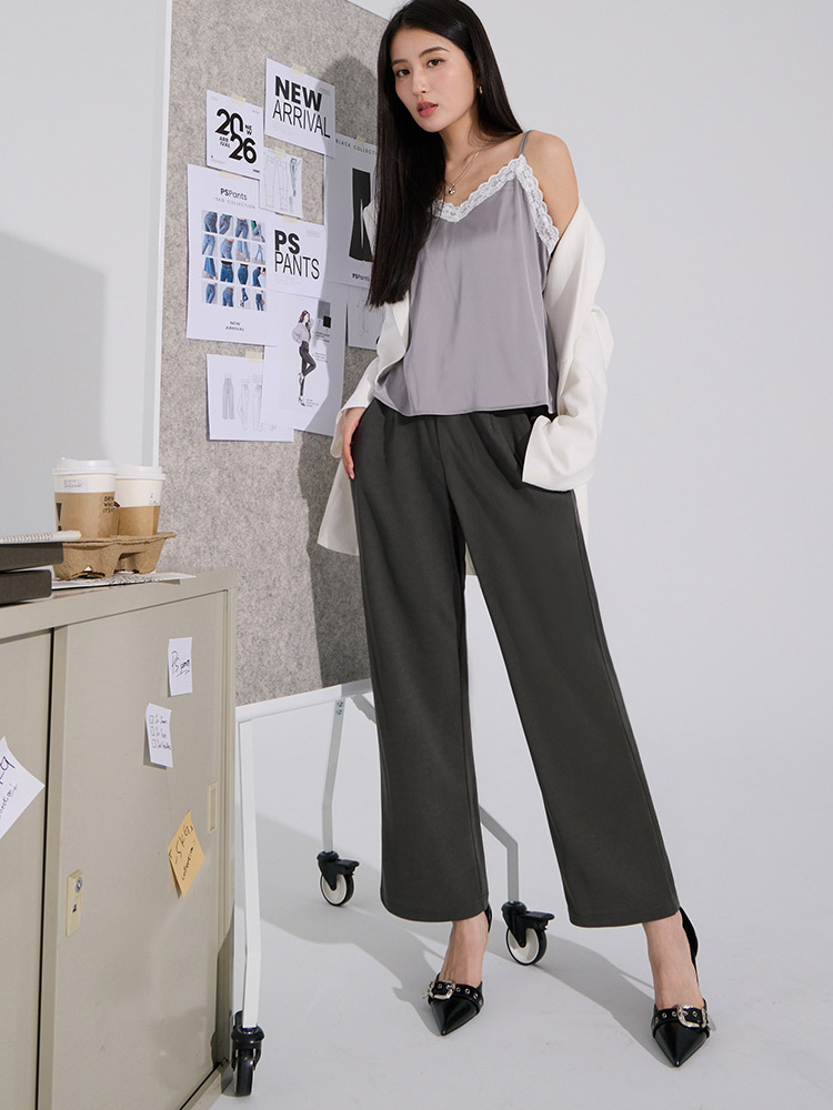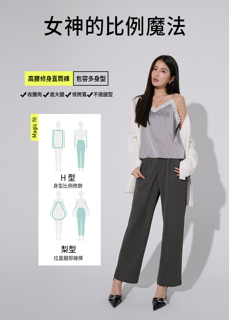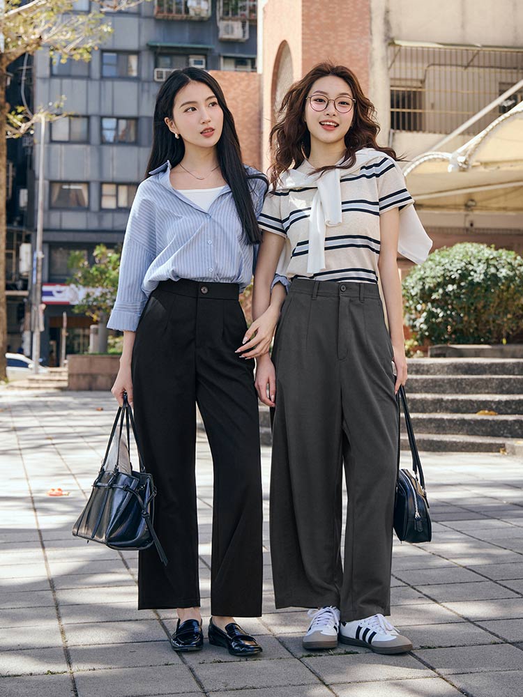 Product Feature: โ High-waist design with a comfortable, elasticated waistband โ Made from a lightweight, airy fabric that resists creasing โ Features a flattering pleated structure to smooth the tummy โ Relaxed straight-leg cut for a comfortable fit