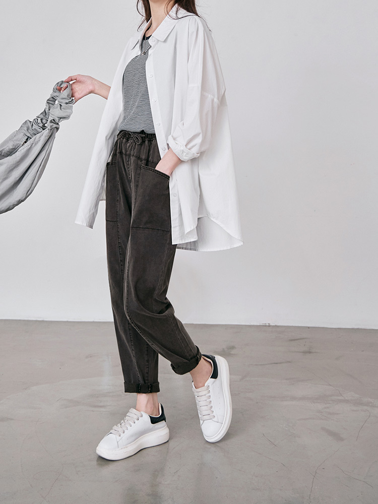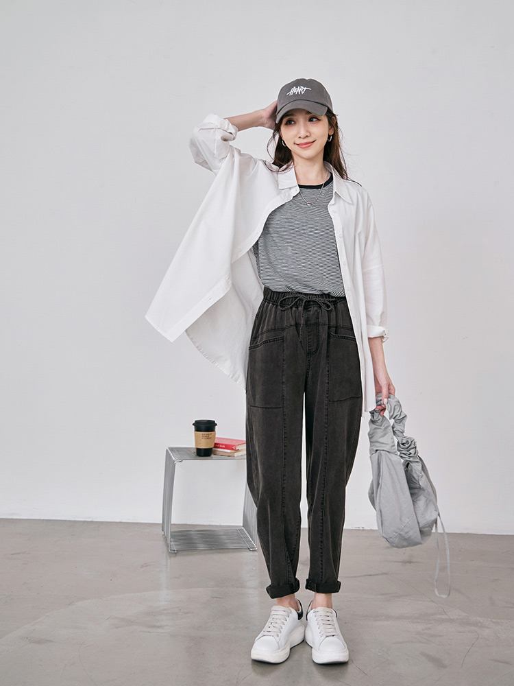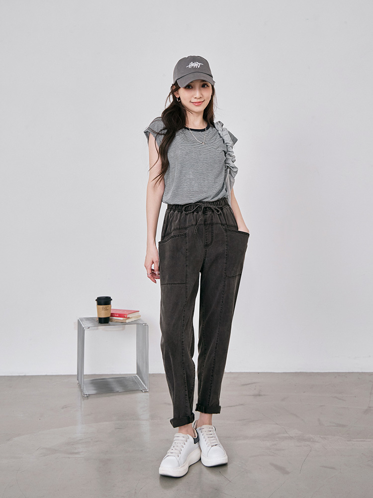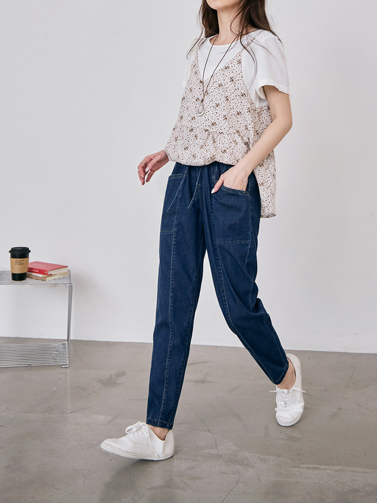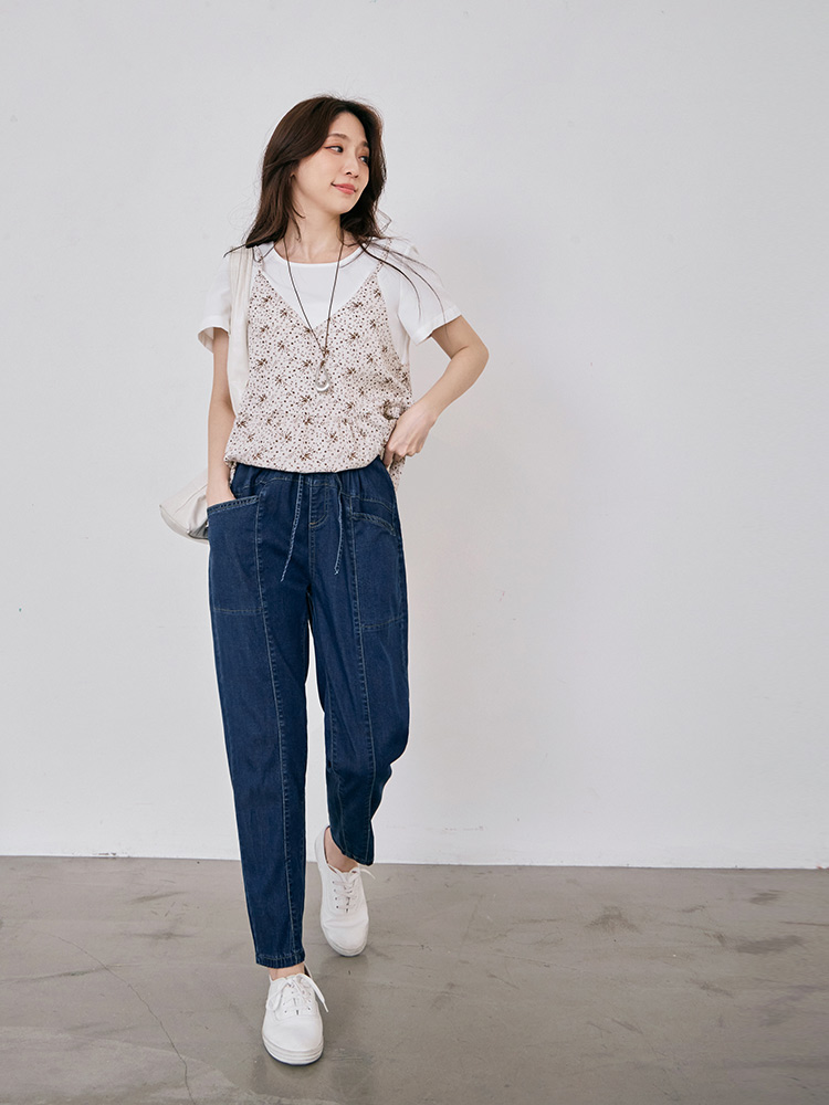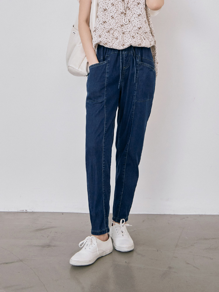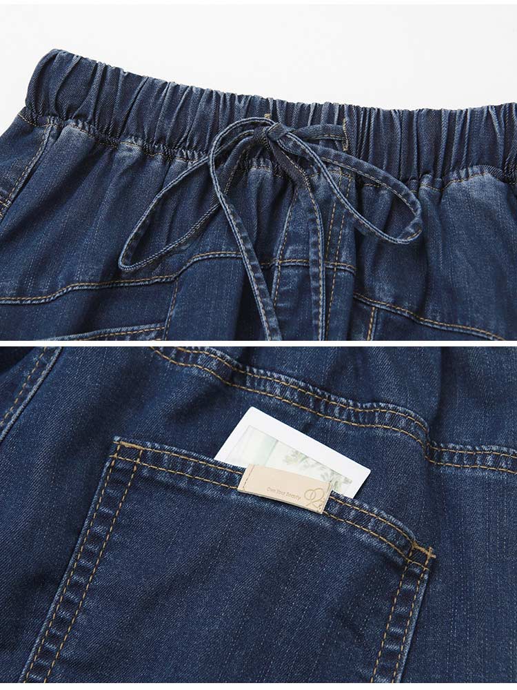 Product Feature: โ Crafted from cool and comfortable denim fabric. โ Features a full elasticated waistband with an adjustable drawstring for a customised fit. โ Practical design includes functional front and back pockets. โ The relaxed boyfriend fit is engineered to visually flatter the hips.