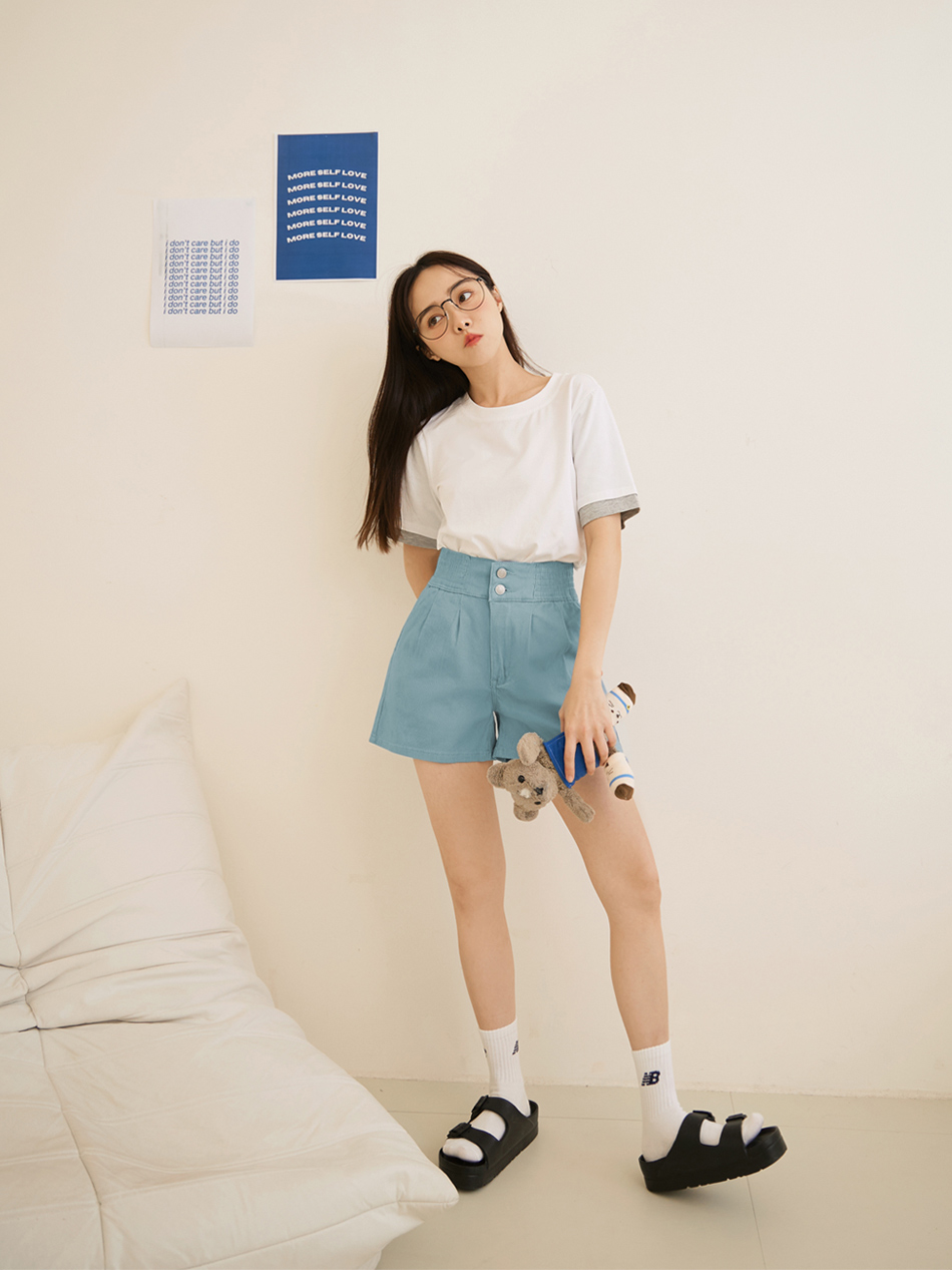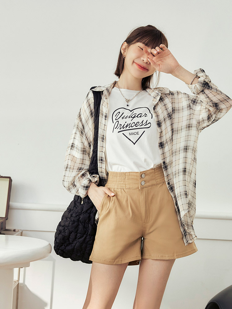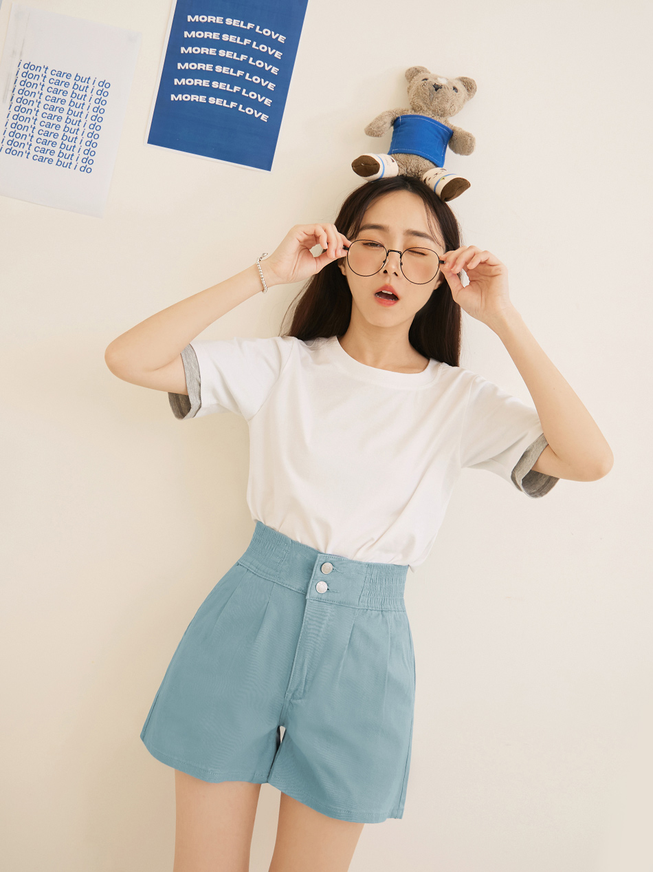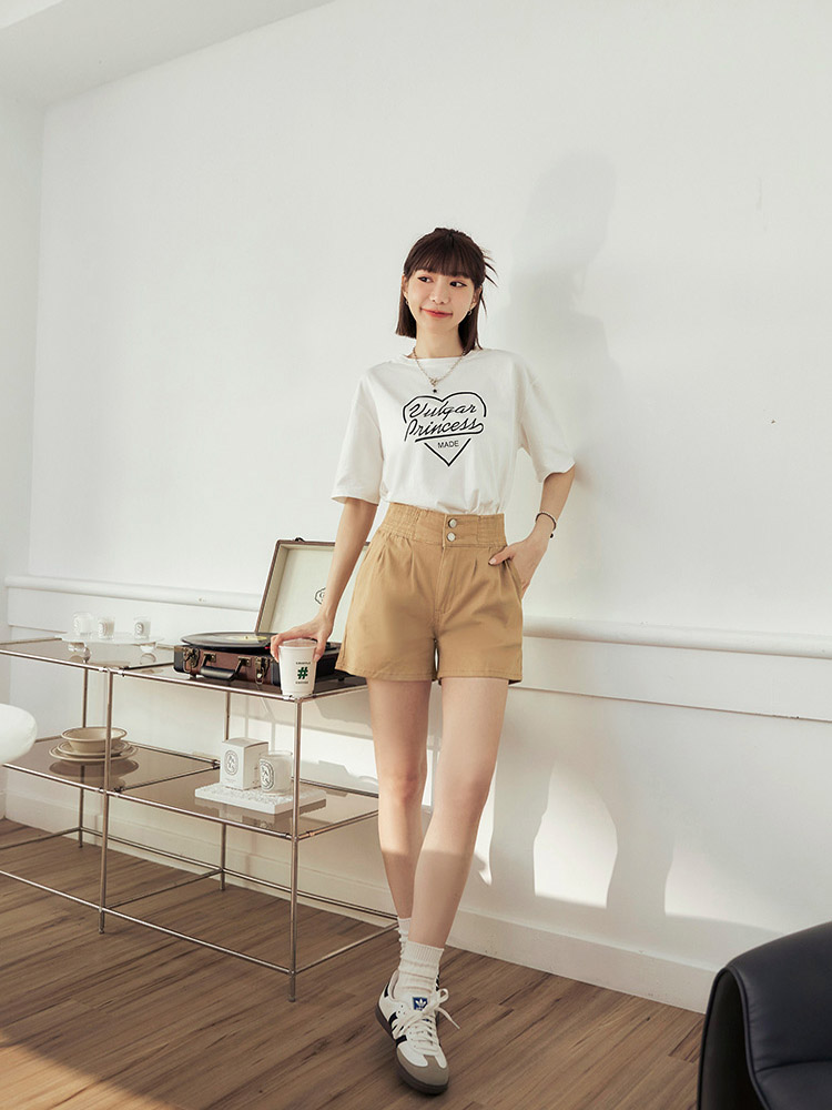 -5KG Plain Cotton Pleated Shorts with Elastic Waist (2XL~3XL)
