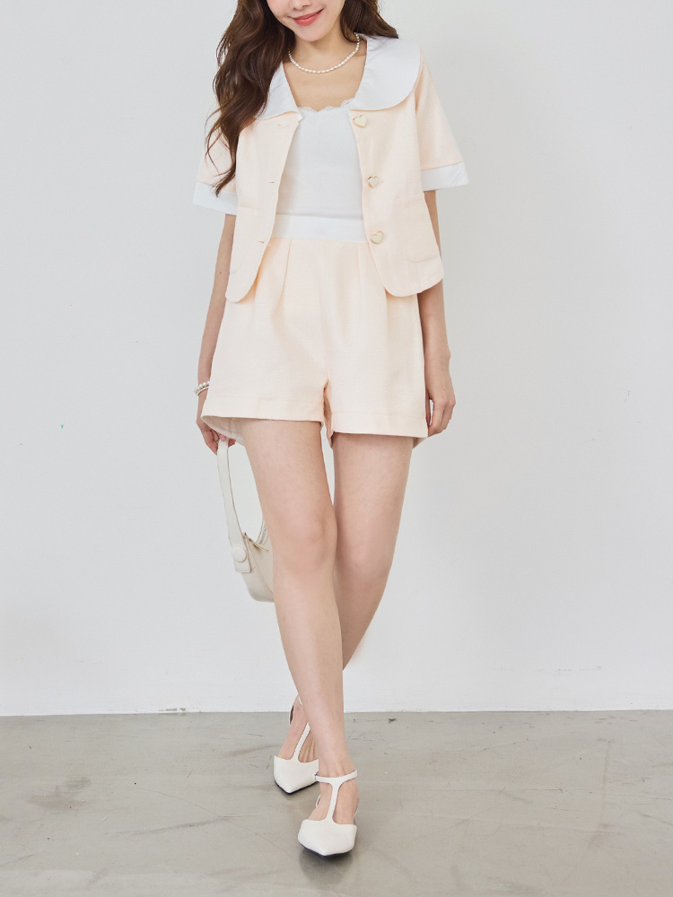Tweed-Style Colour-Block Pleated Shorts (XL~3XL)