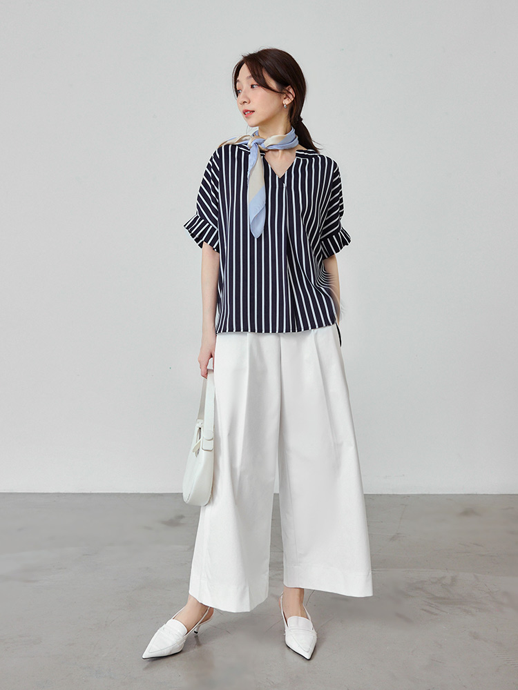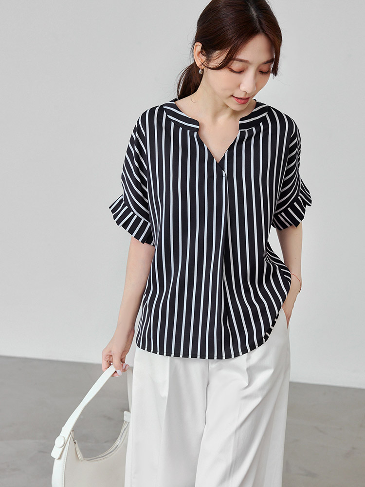 Product Feature: โ Crafted from delicate, lightweight chiffon fabric. โ Features a timeless striped design. โ Designed with a flattering, pleated back panel.