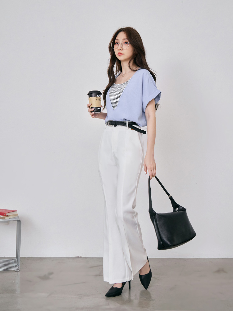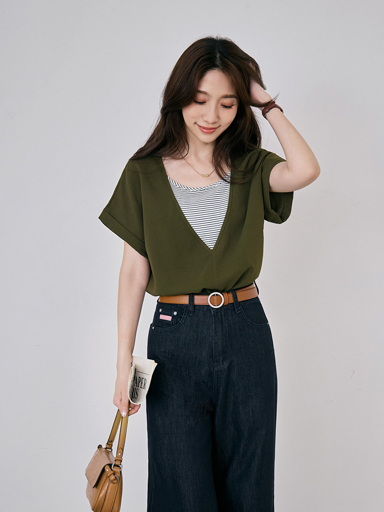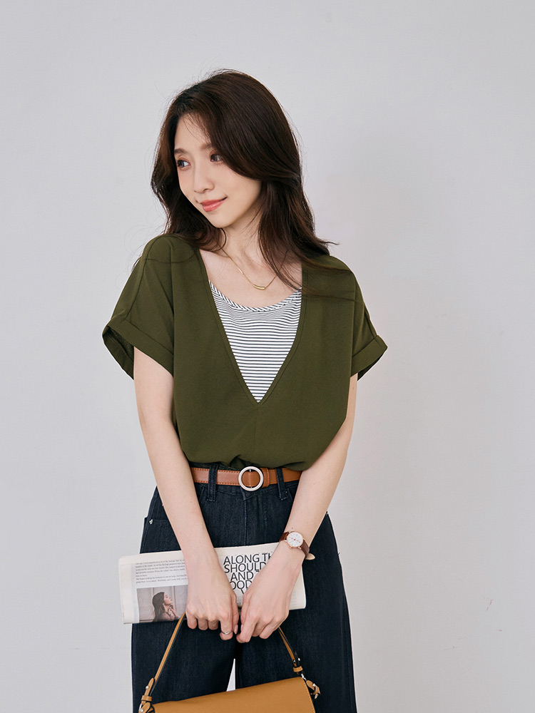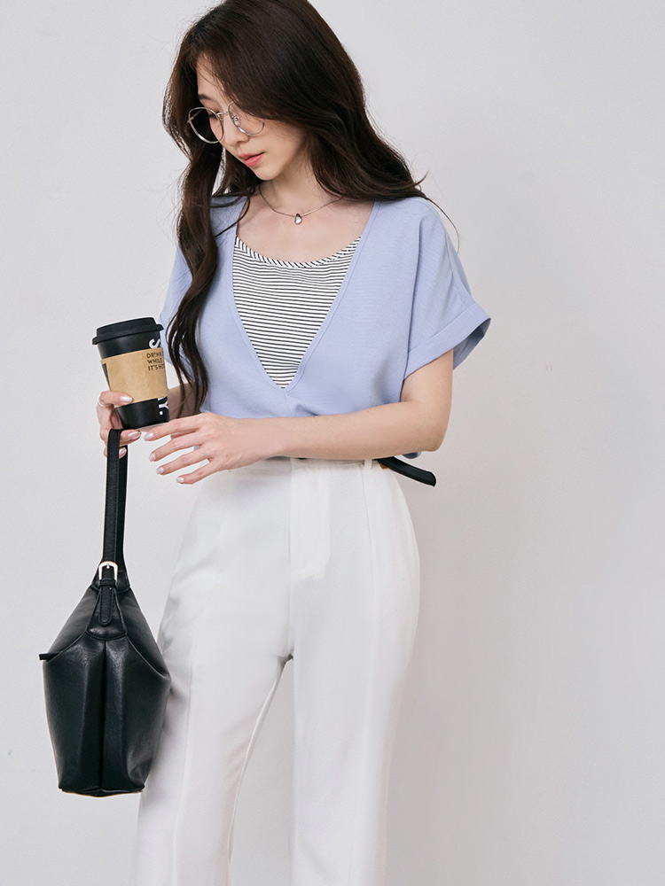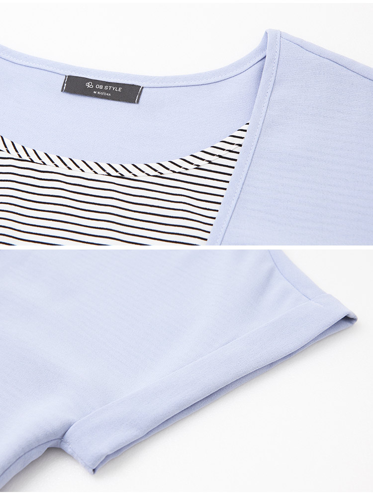 Faux Two-Piece Delicate Spliced Stripe Top (2XL~3XL)