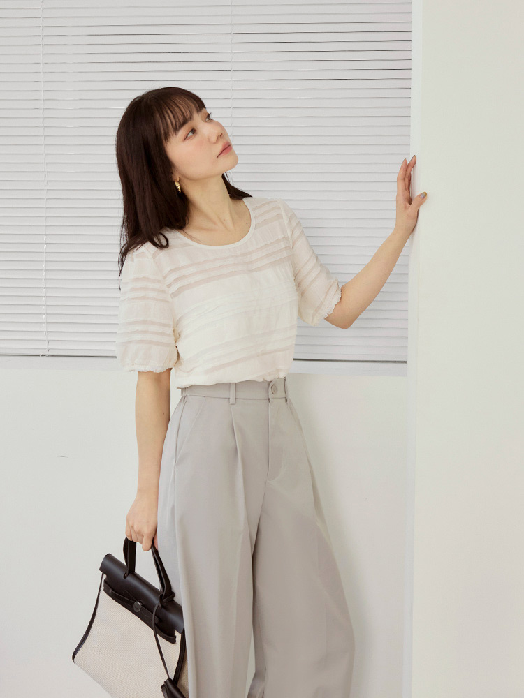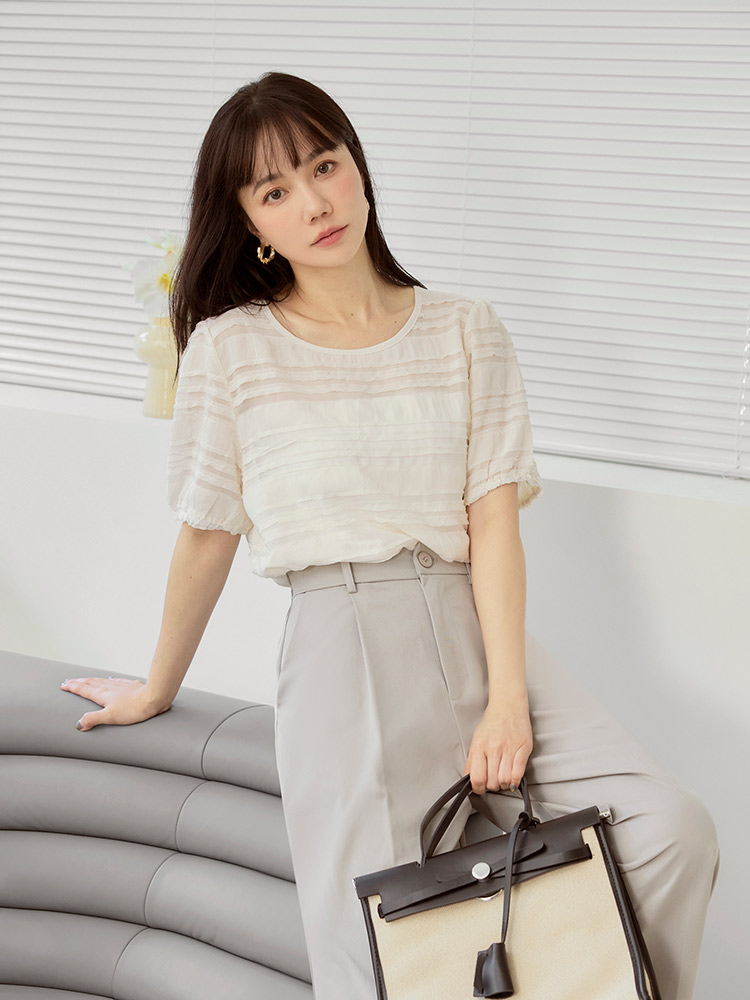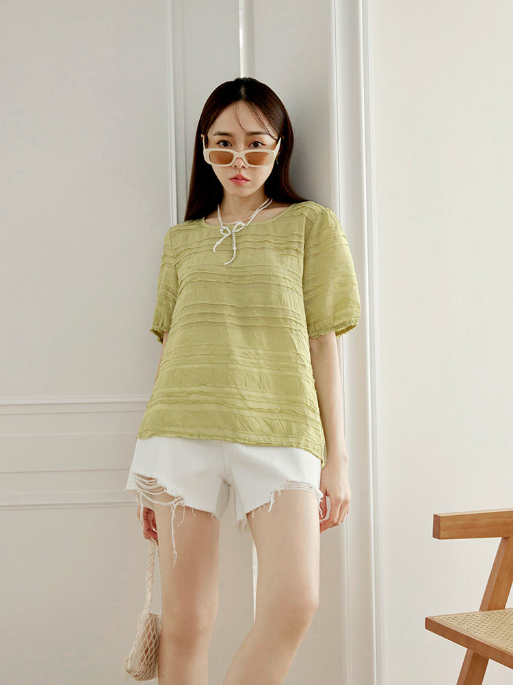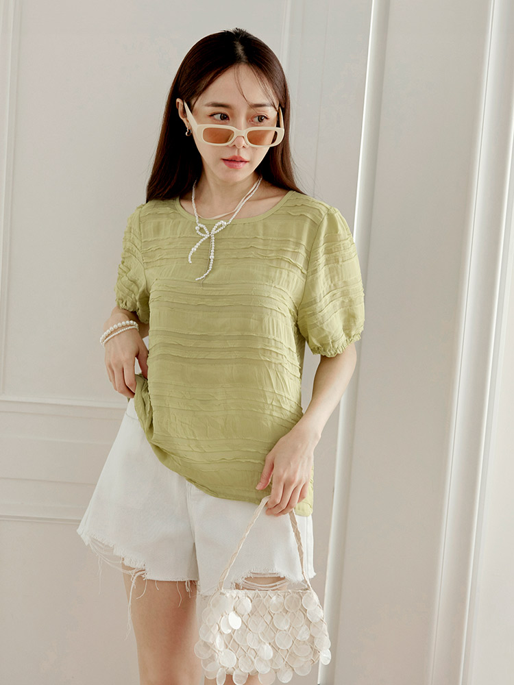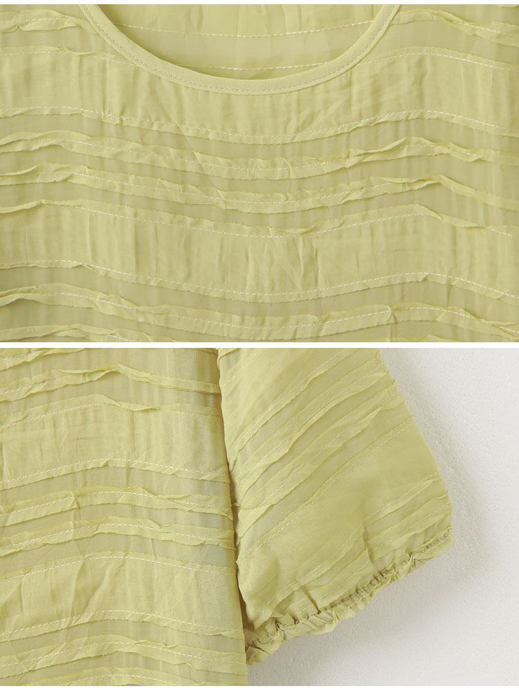Sheer Wavy Textured Puff Sleeve Top