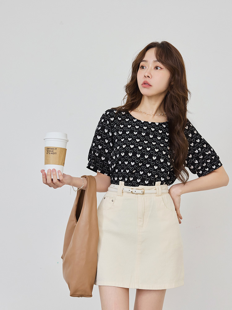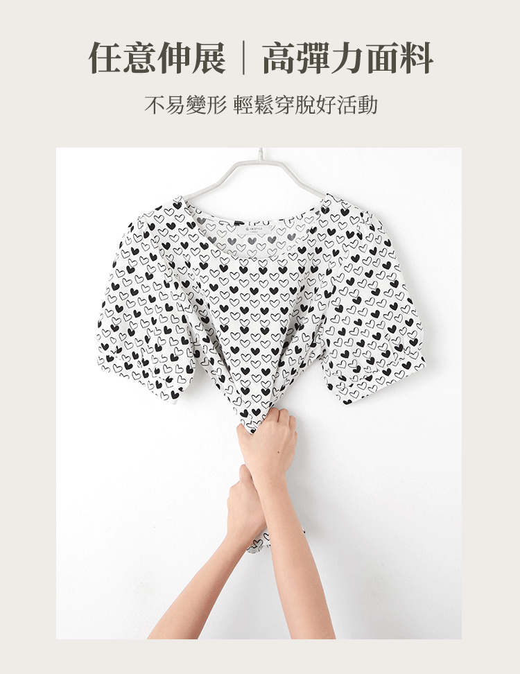 Product Feature: โ Crafted from wrinkle-resistant fabric, ideal for travel and business trips โ Features a charming heart print for a sweet, romantic allure โ Designed with flattering puff sleeves to enhance your silhouette