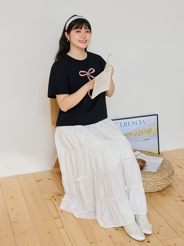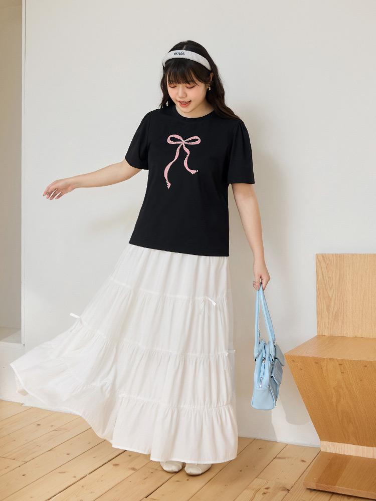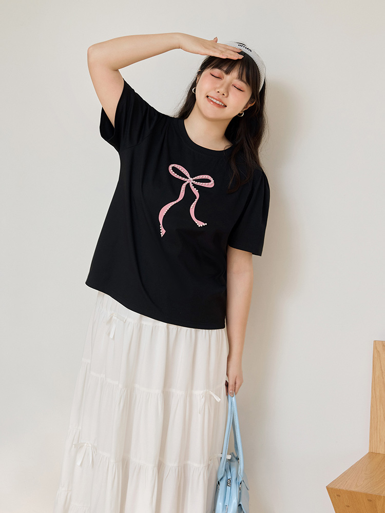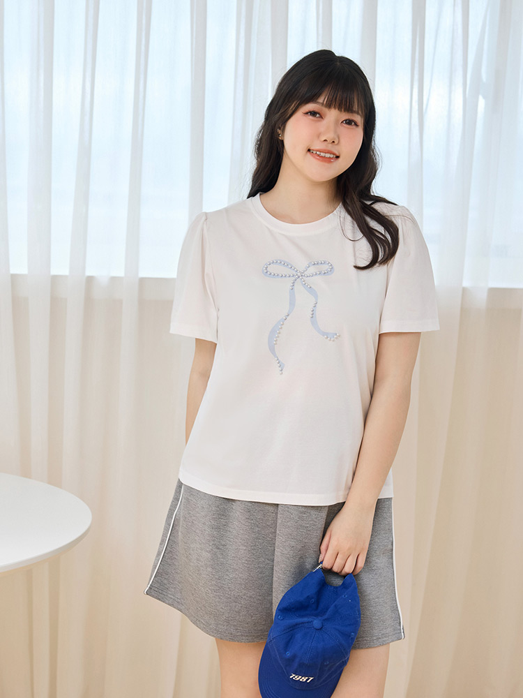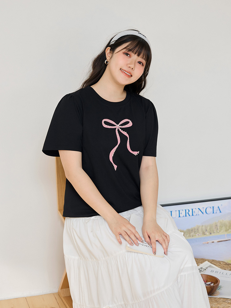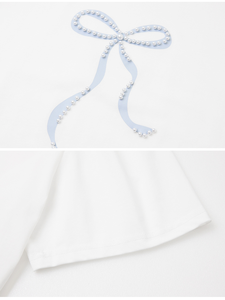 Product Feature: โ Crafted from soft, stretchy cotton fabric for comfort. โ Features an exquisite three-dimensional beaded bow design. โ Designed with loose, voluminous sleeves for a flattering fit.