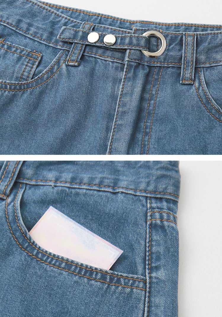 Product Feature: โ Features a functional button-fastening waistband. โ Equipped with practical, genuine pockets. โ Crafted from structured, premium denim for a flattering fit. โ Stylish stud button detail on the waistband enhances the design. โ Wide-leg cut creates a streamlined and elongated silhouette.