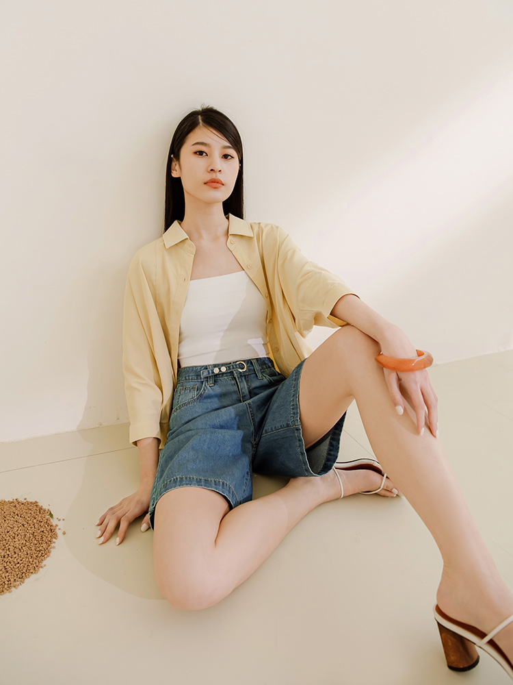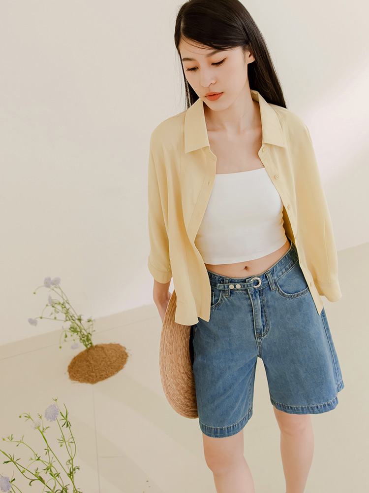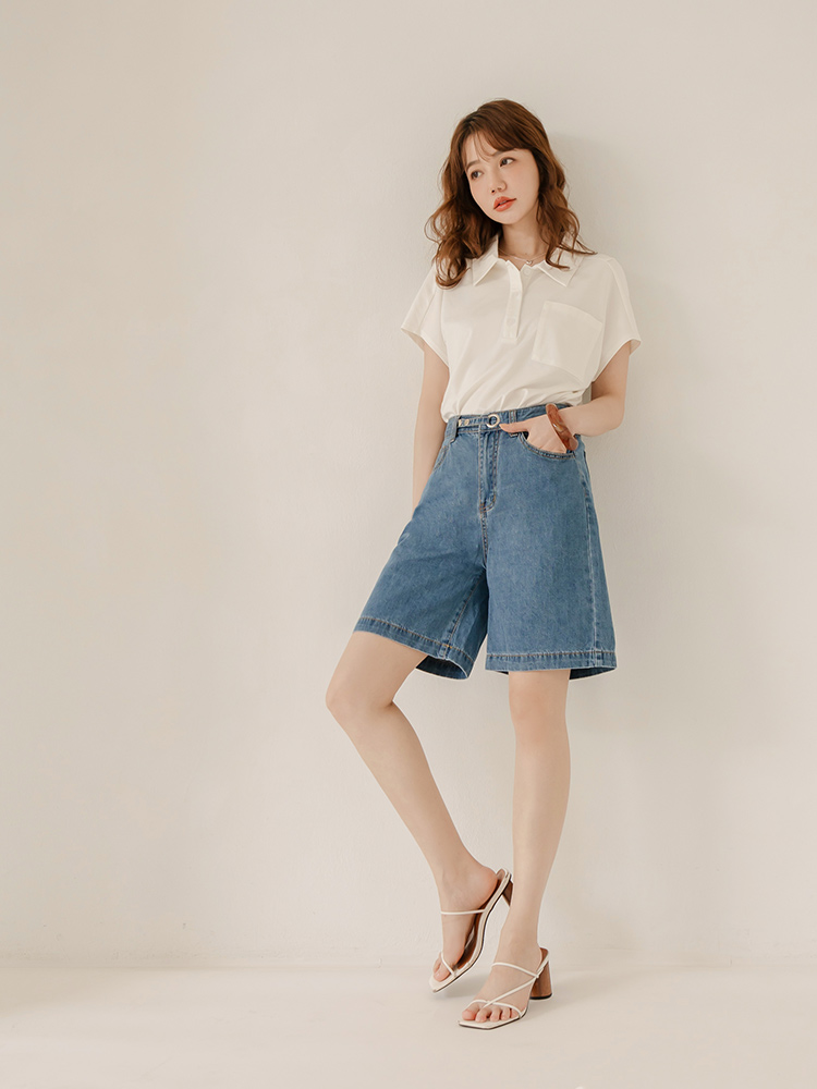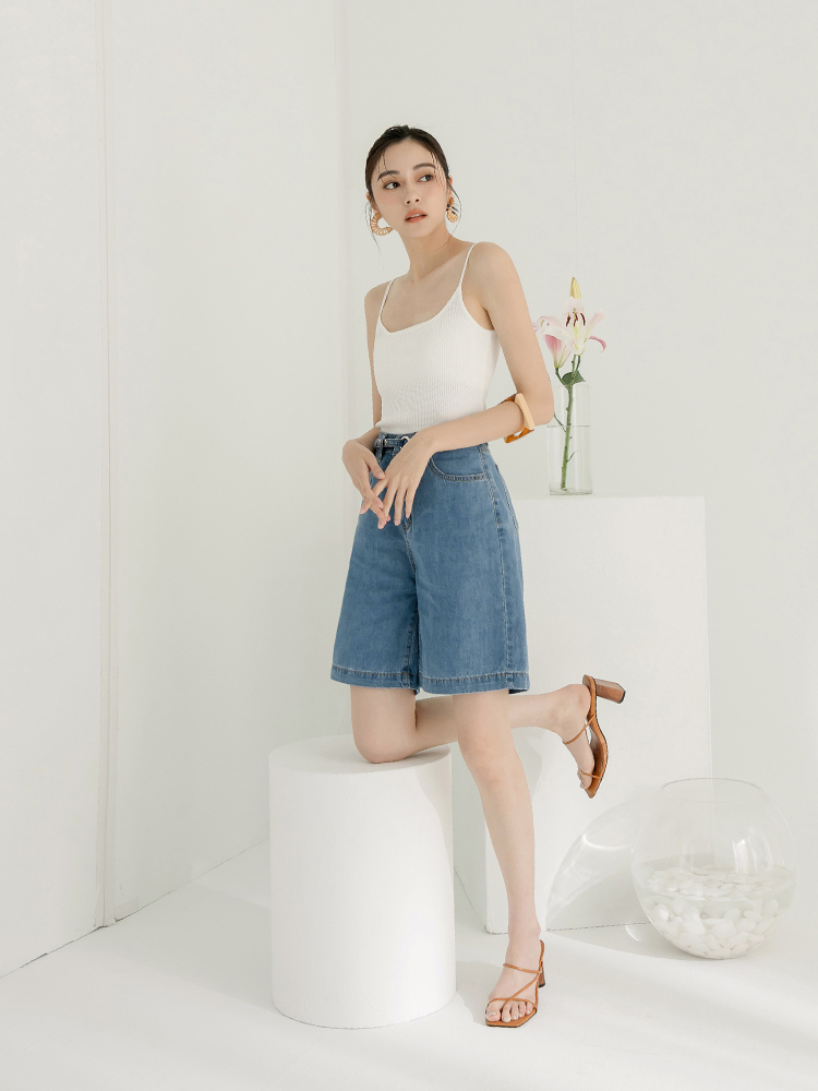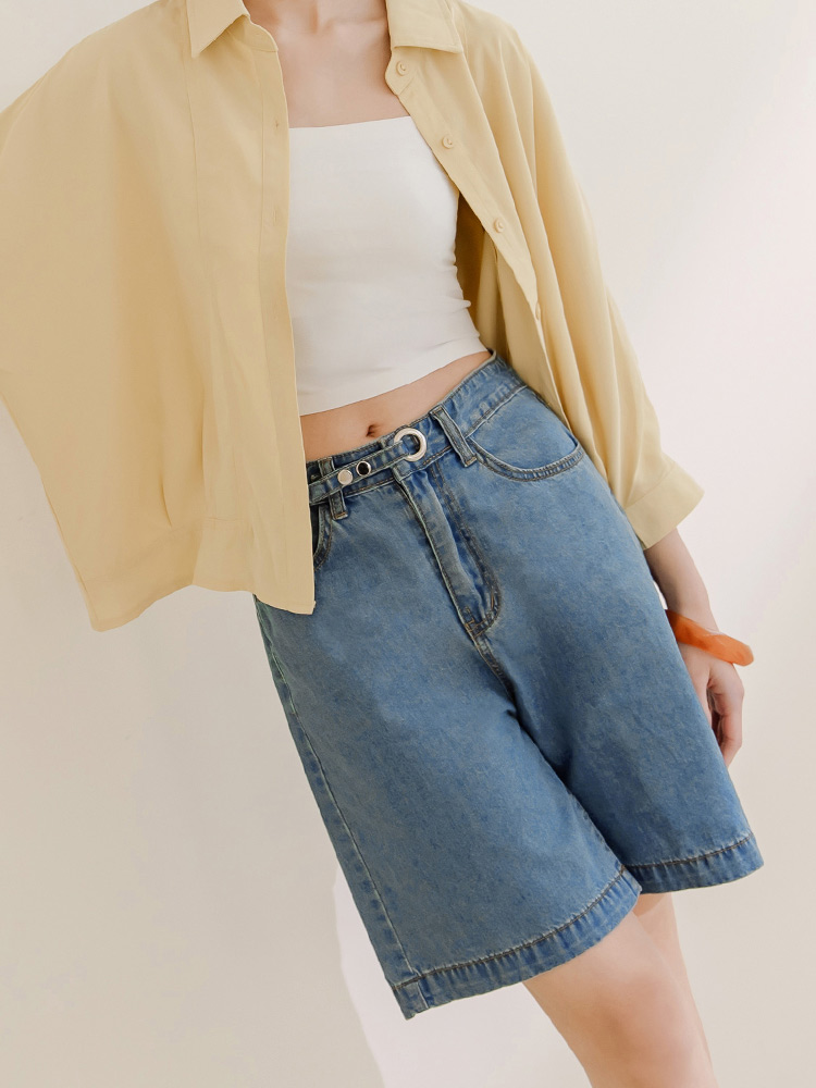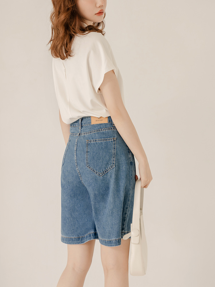 Minimalist Wide-Leg Denim Shorts with Button Waist