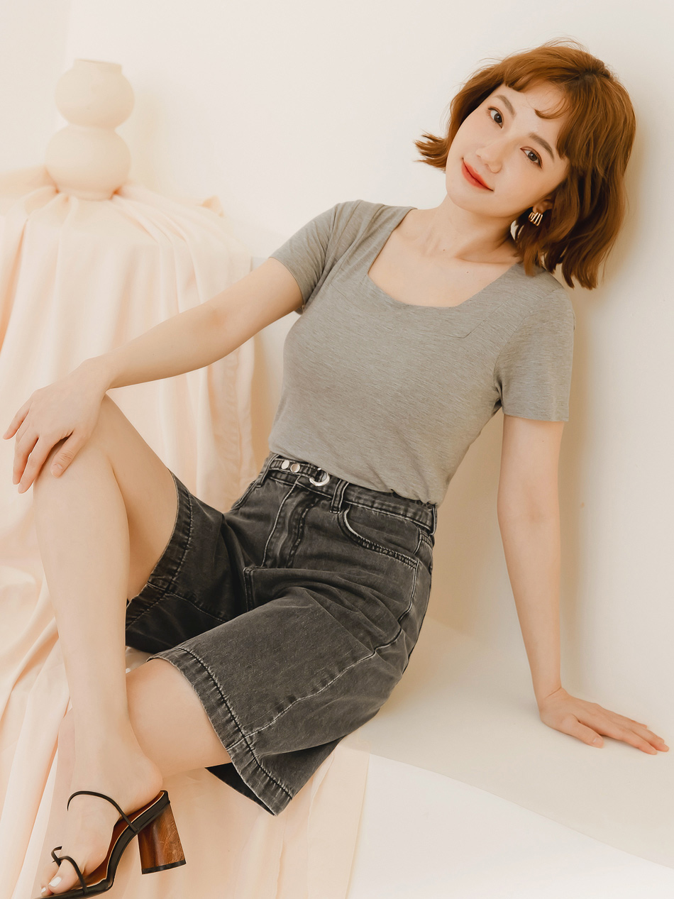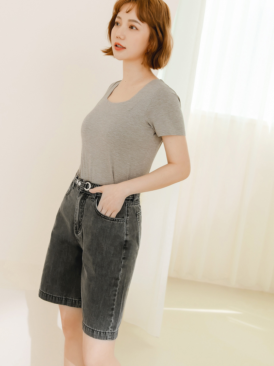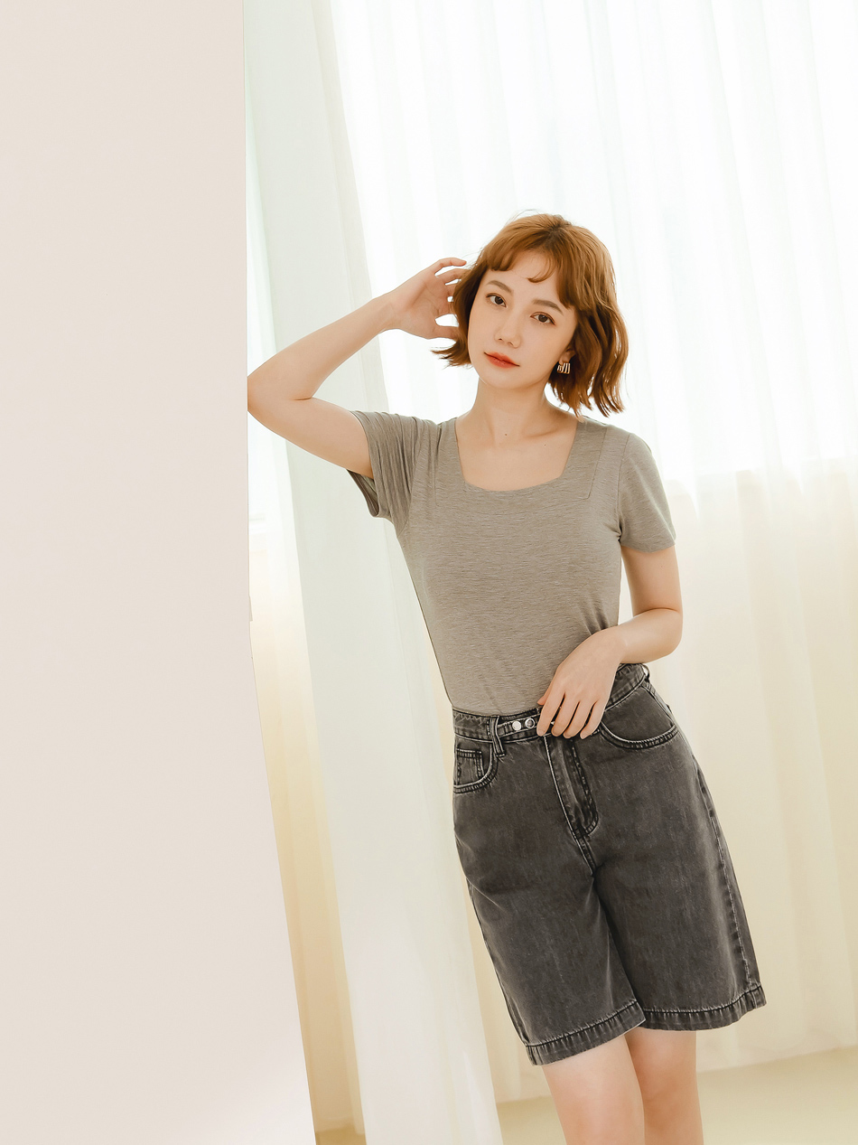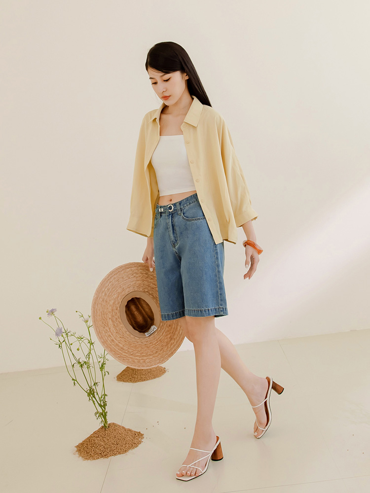 Minimalist Wide-Leg Denim Shorts with Button Waist