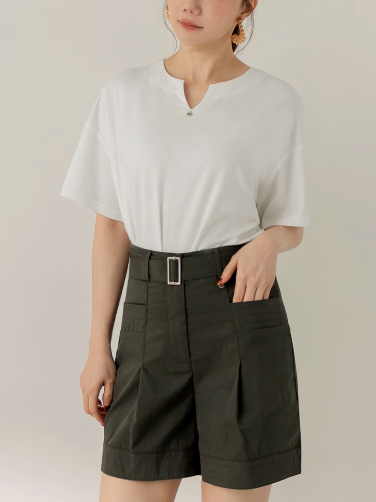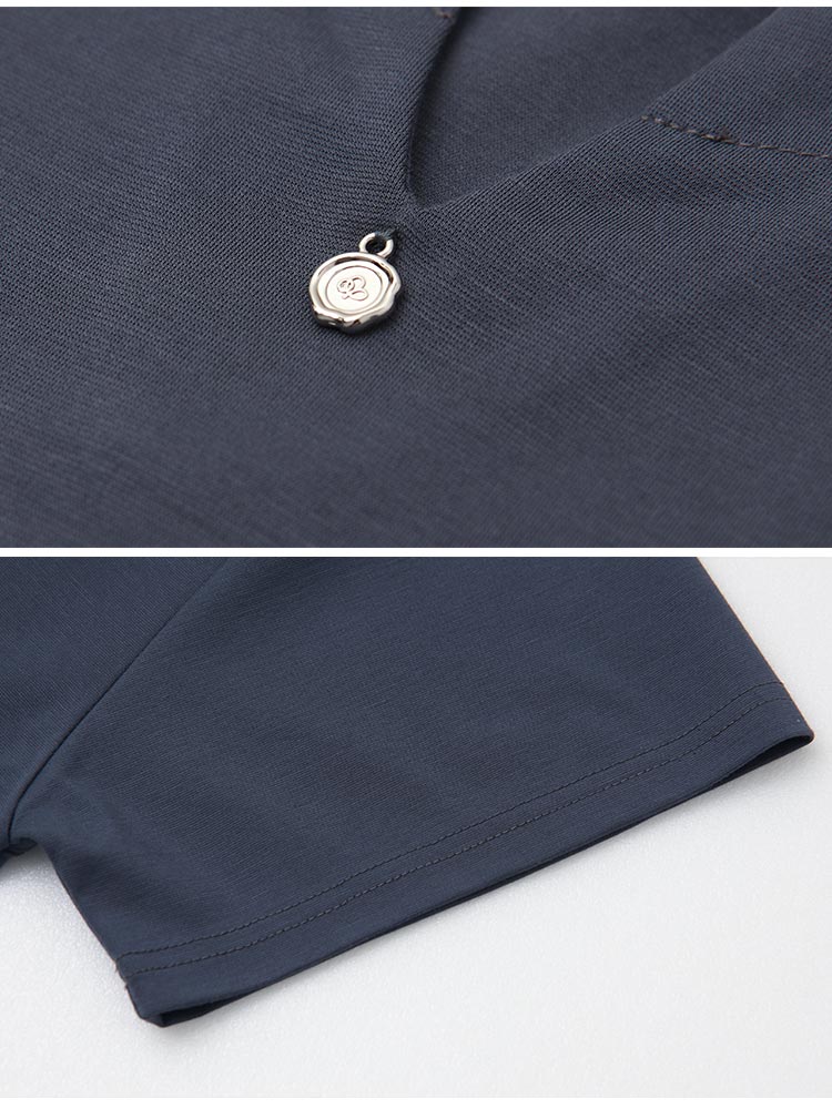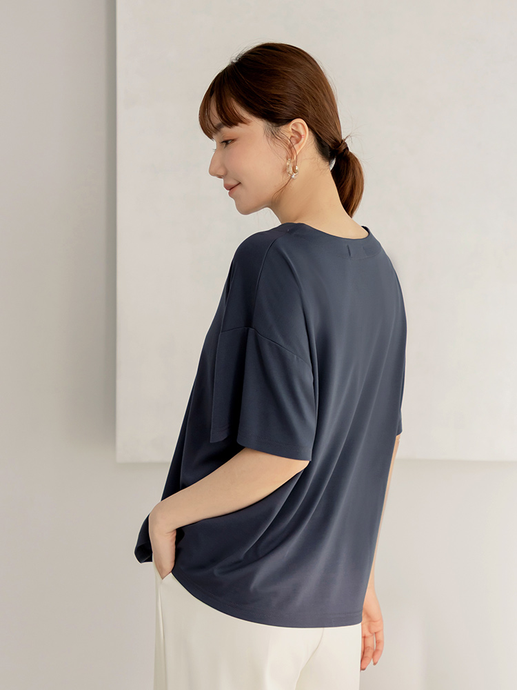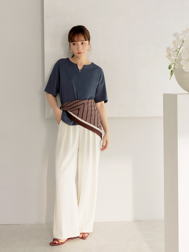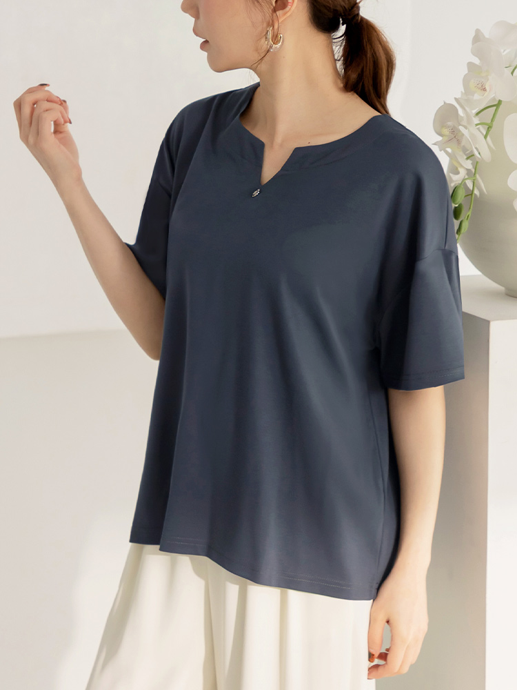 Product Feature: โ Crafted from luxurious ice-silk Roman fabric, offering a delightfully cool and skin-friendly feel. โ Features a flattering V-neckline, expertly cut to enhance and elongate the neck. โ Designed with a relaxed silhouette for ultimate comfort and unrestricted movement.